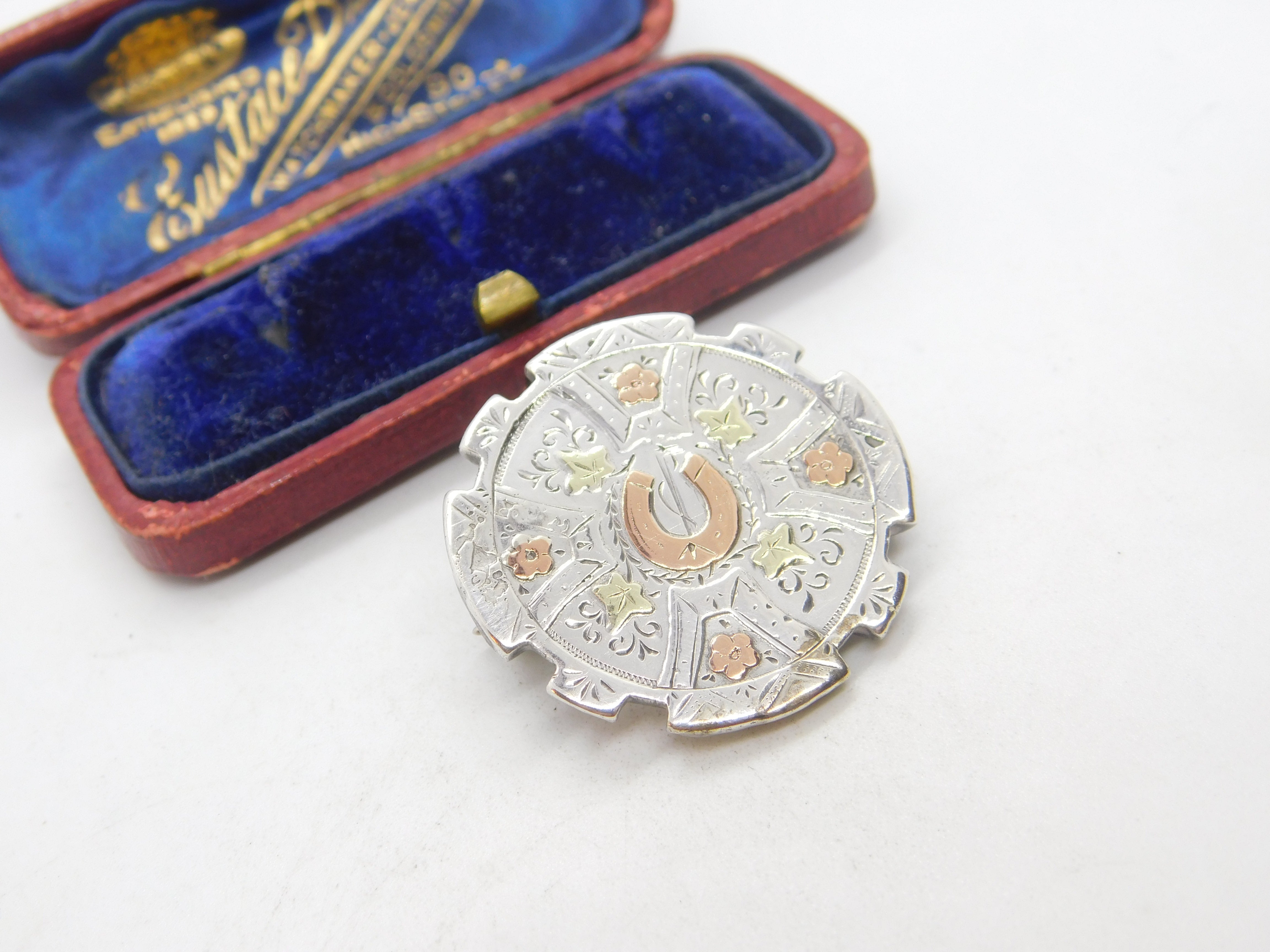 9ct Gold on Sterling Silver Horseshoe Sweetheart Brooch 1889 Birmingham
