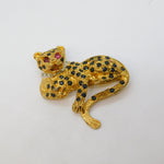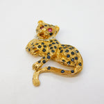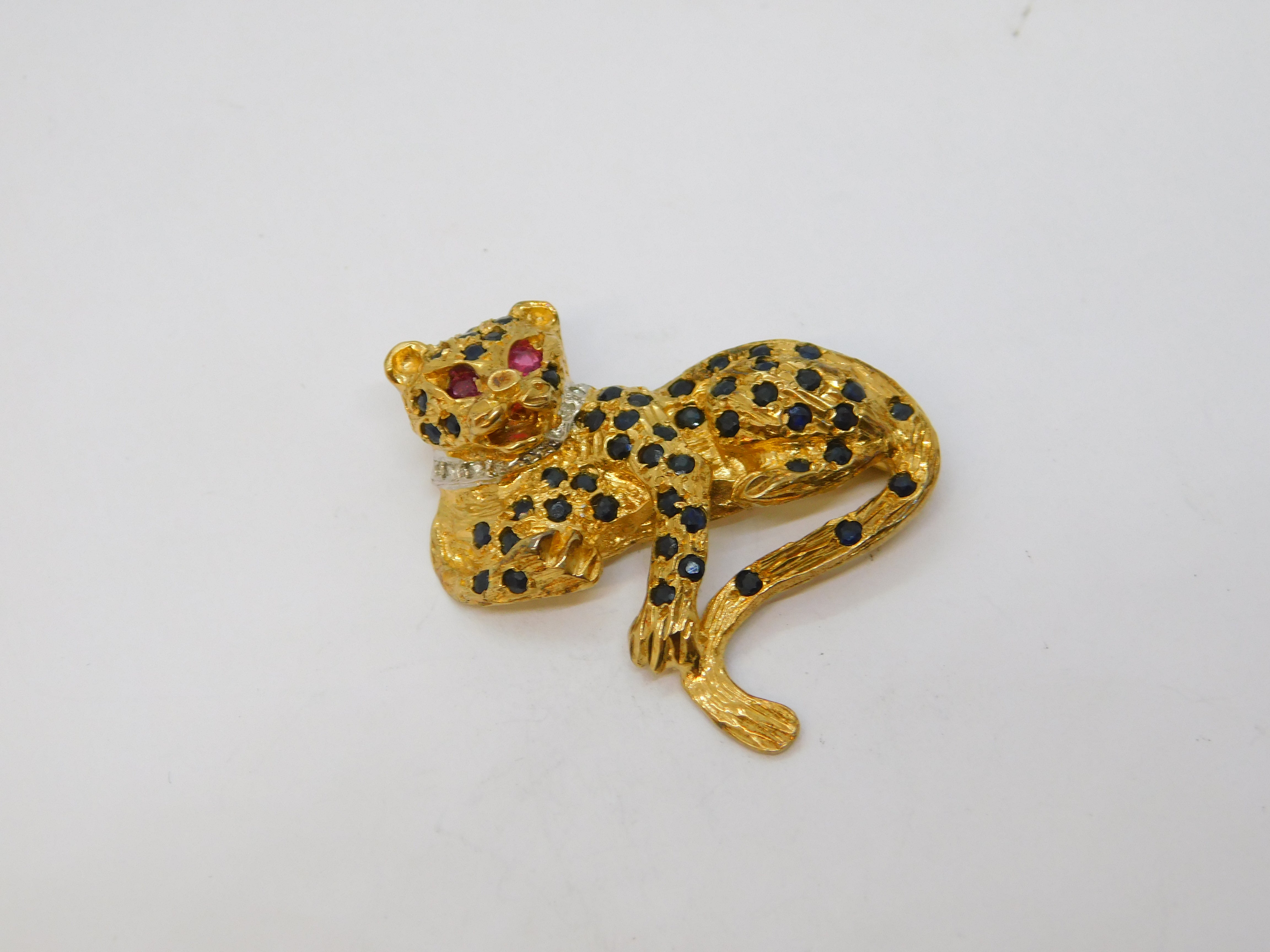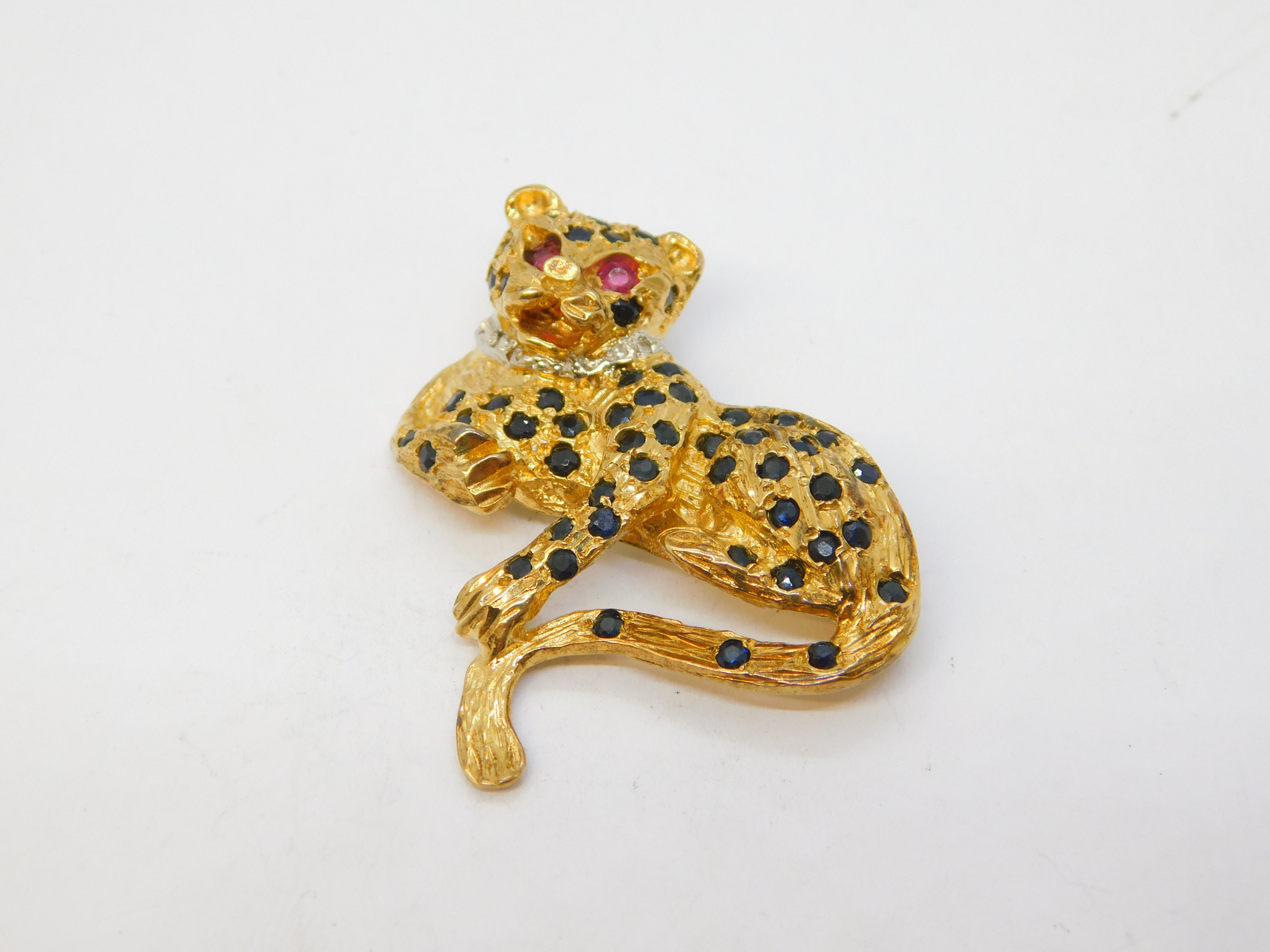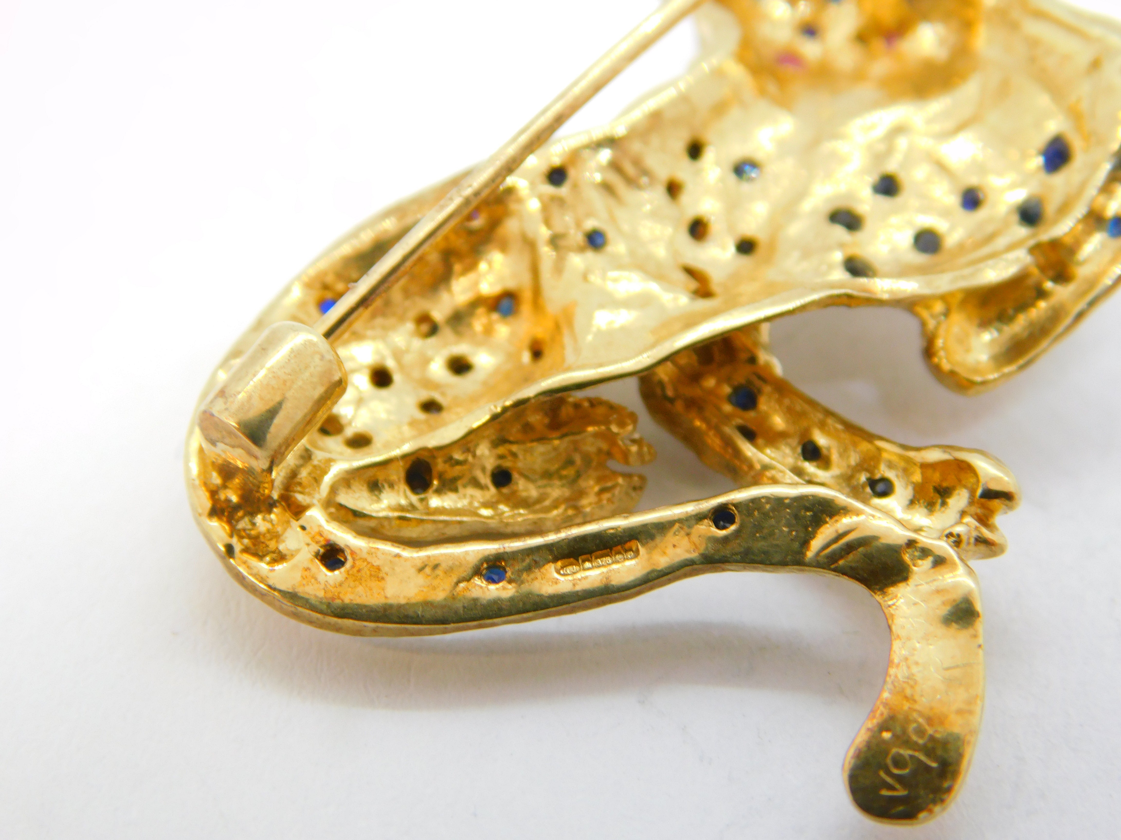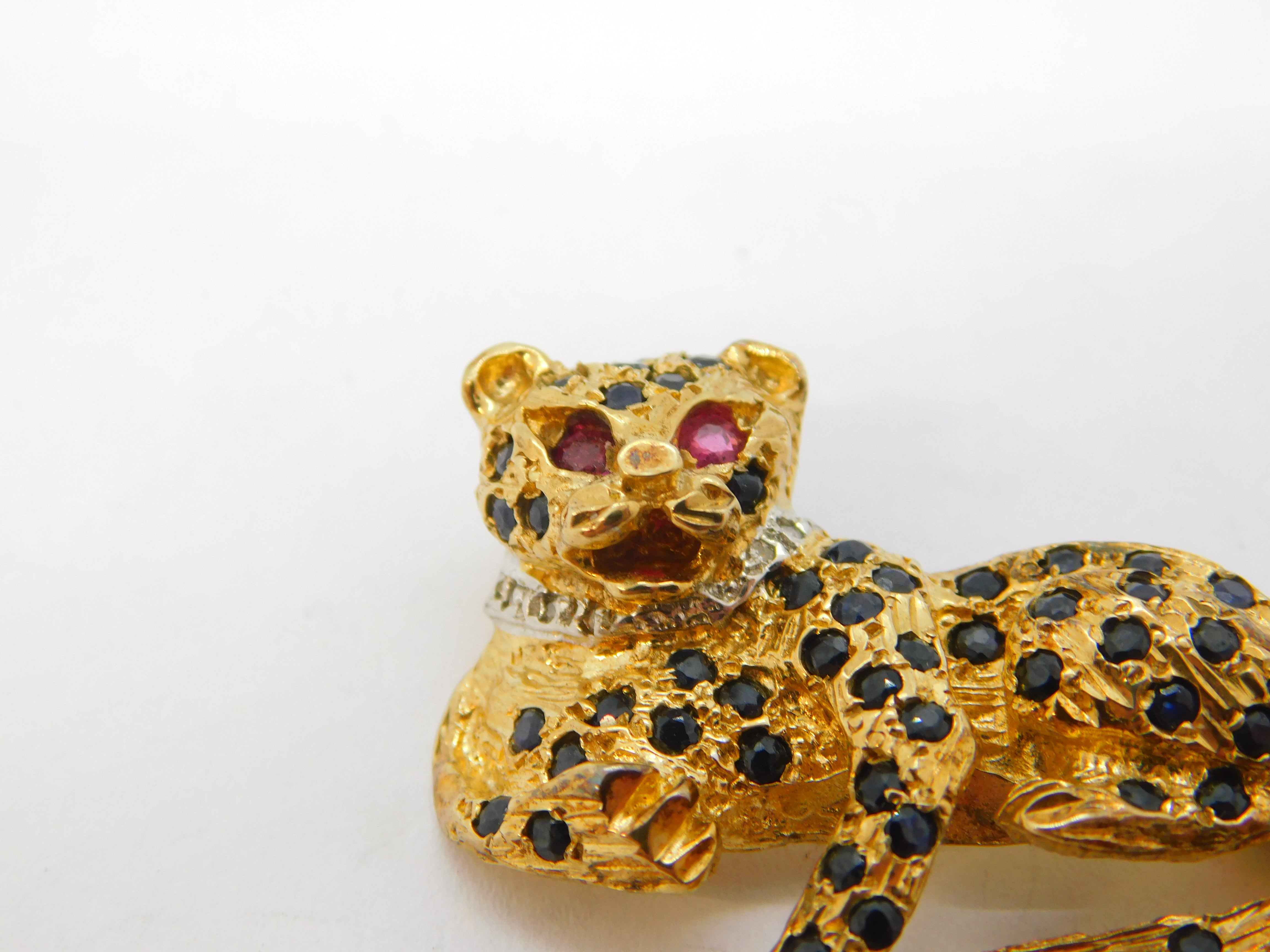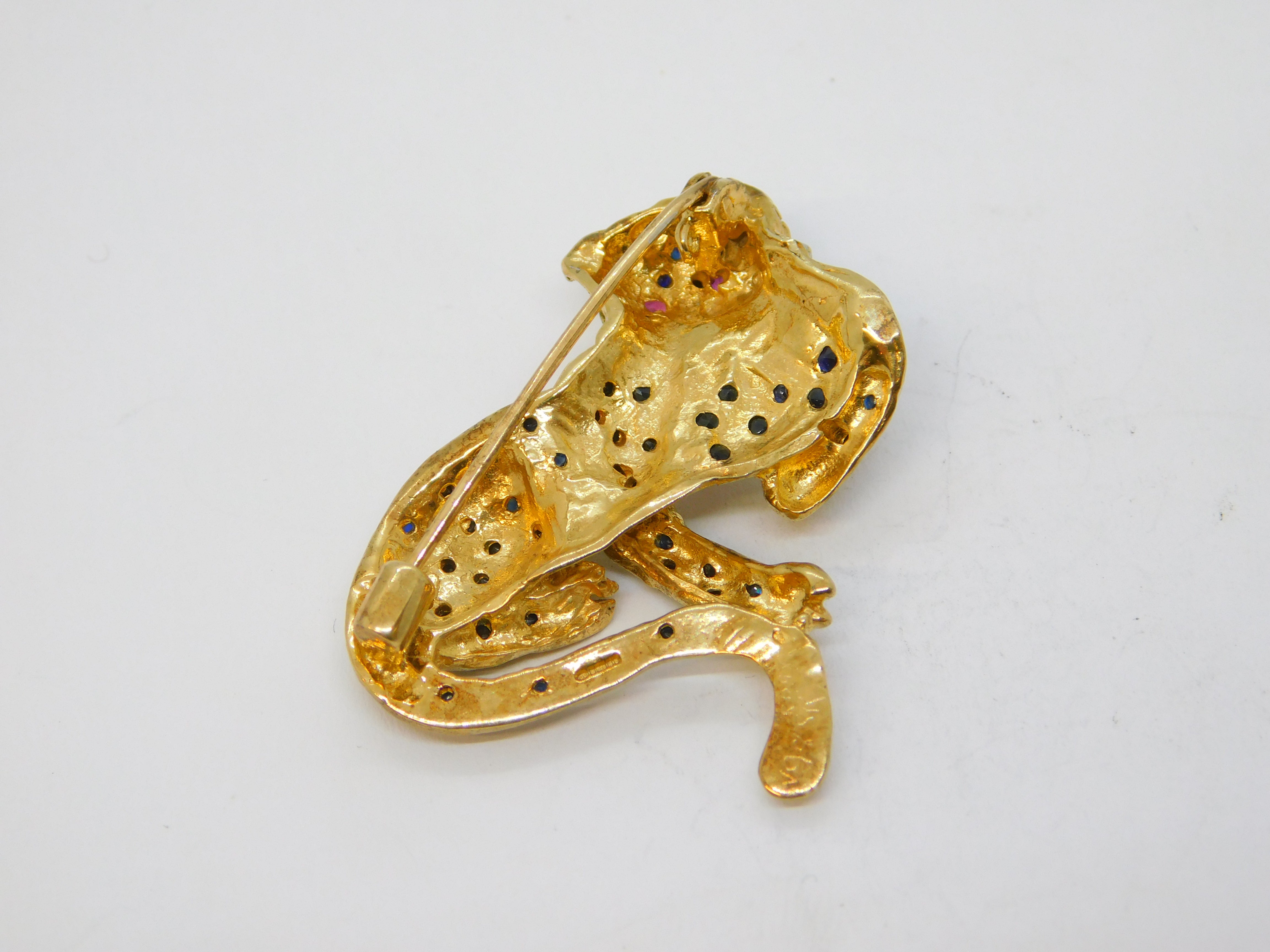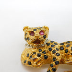 9ct Yellow Gold, Sapphire, Ruby, Diamond Panther Brooch Vintage 1988 Birmingham