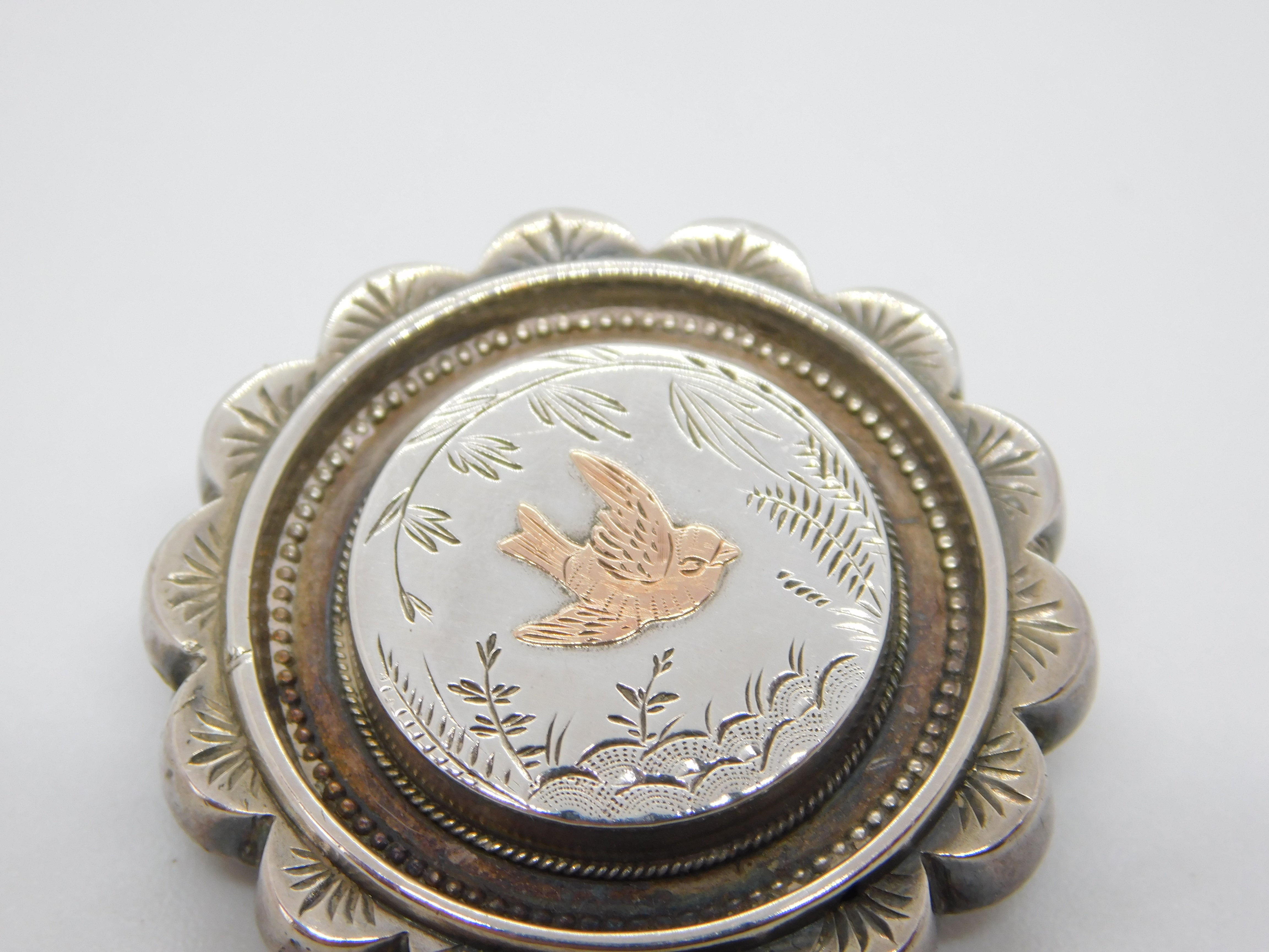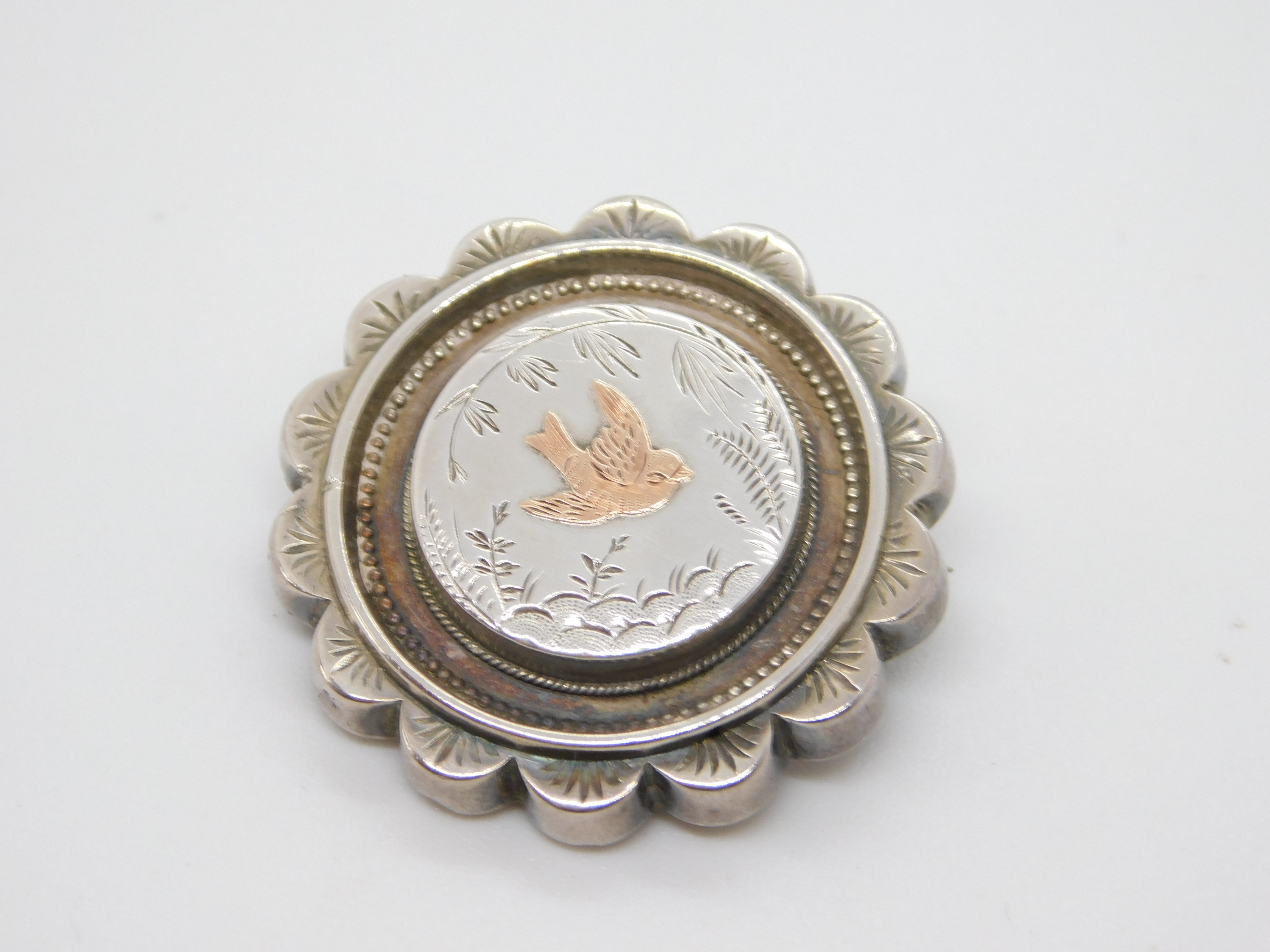 Aesthetic Movement 9ct Gold Sterling Silver Swallow Brooch Antique c1880