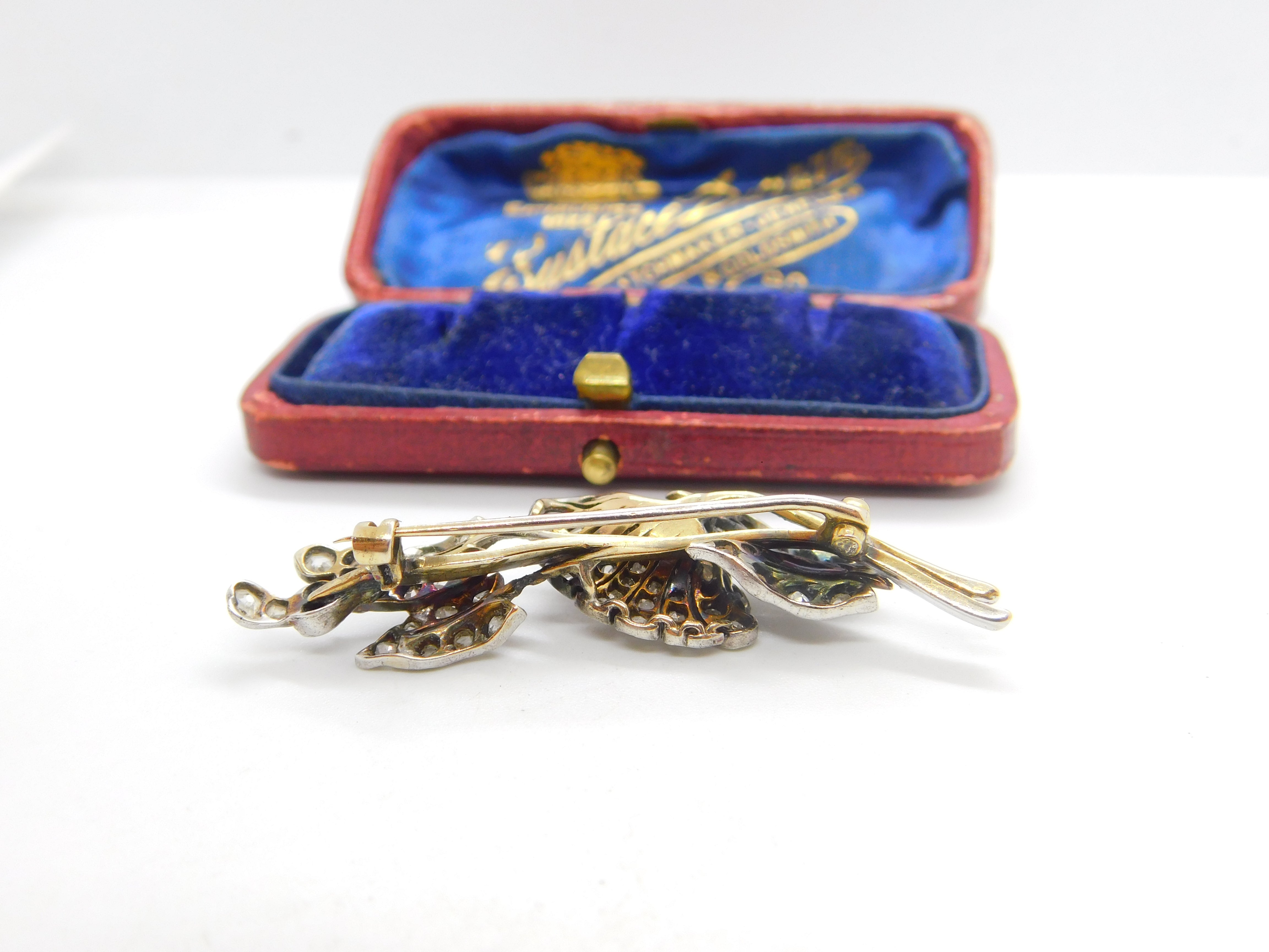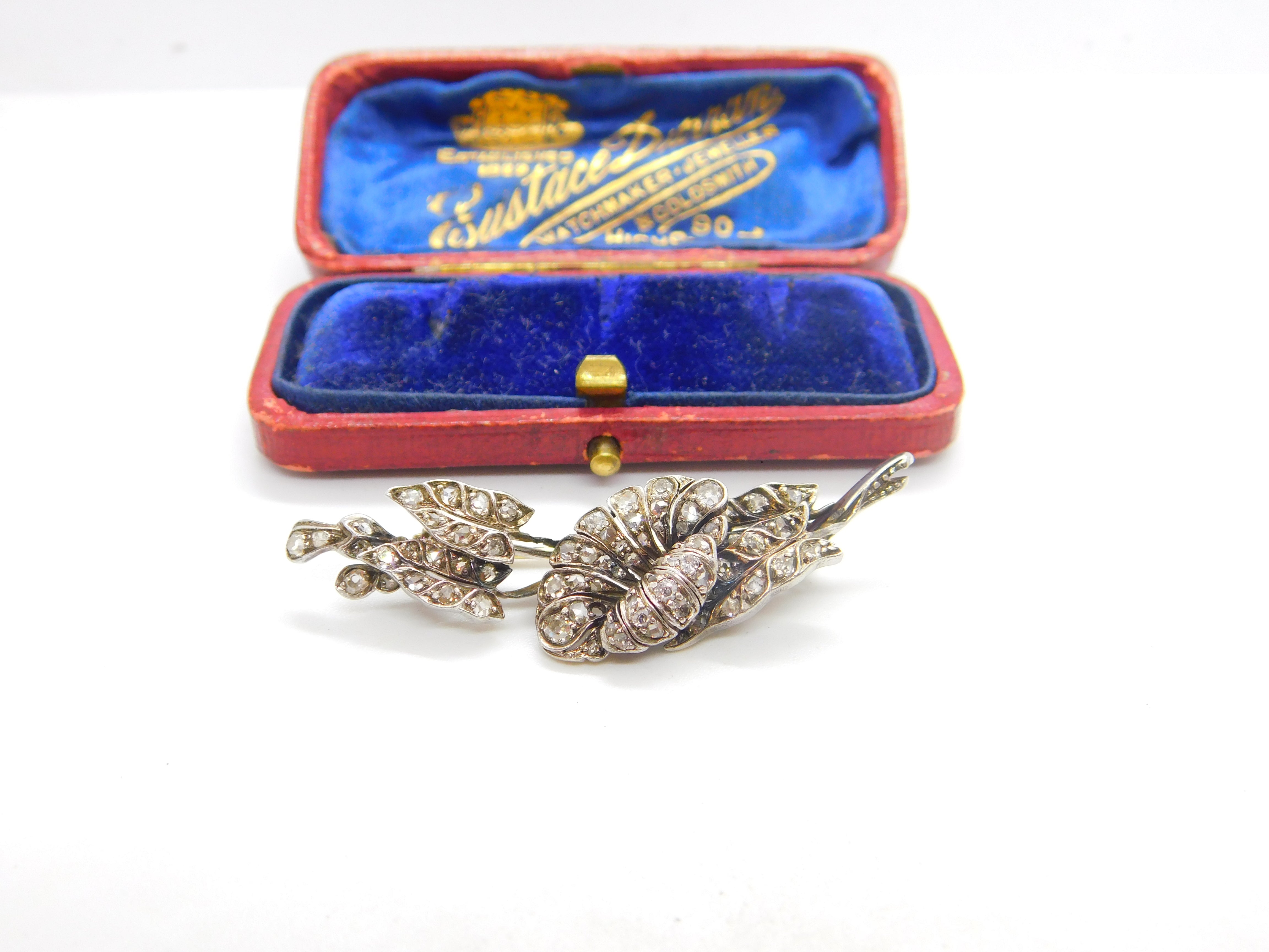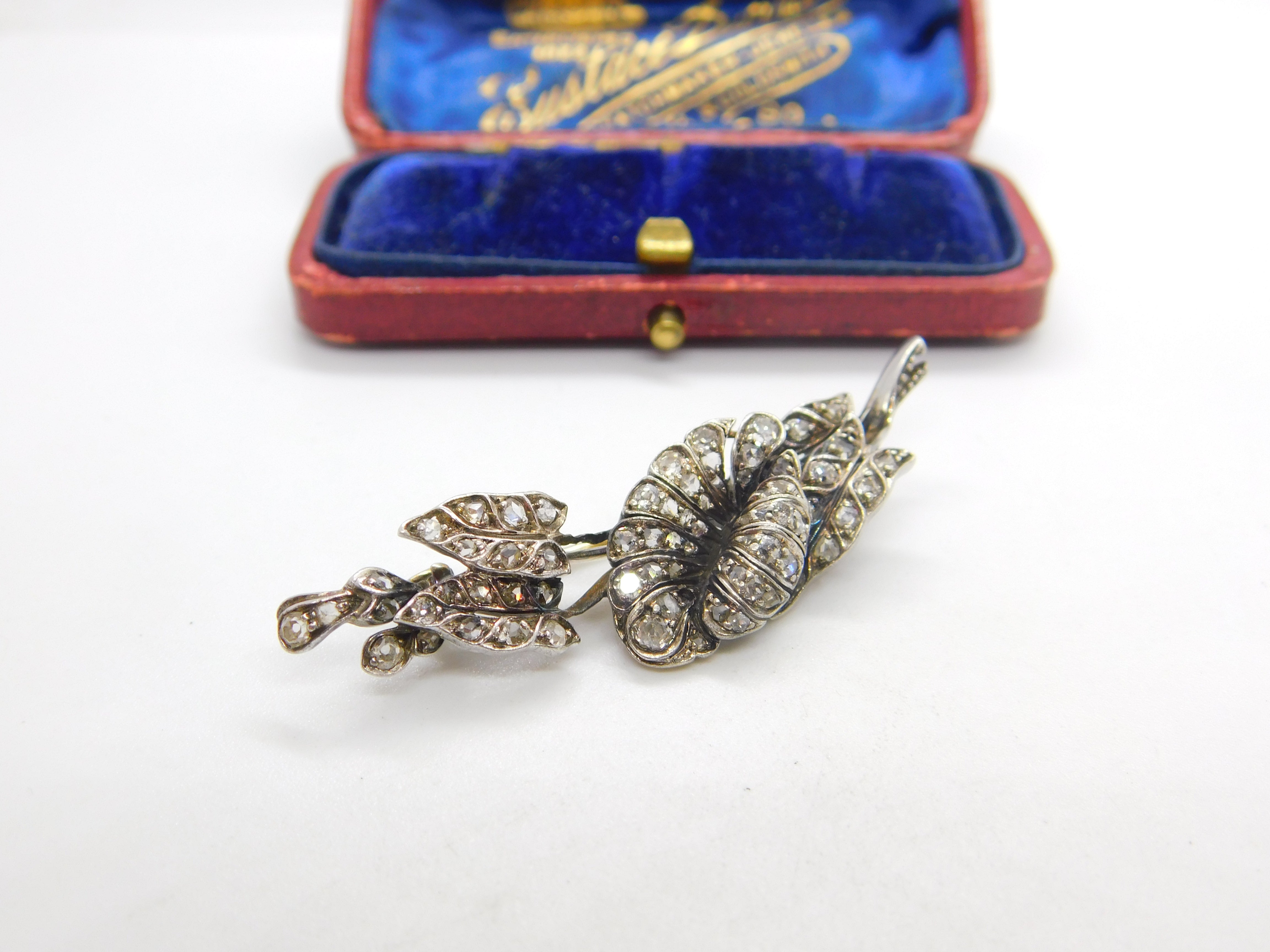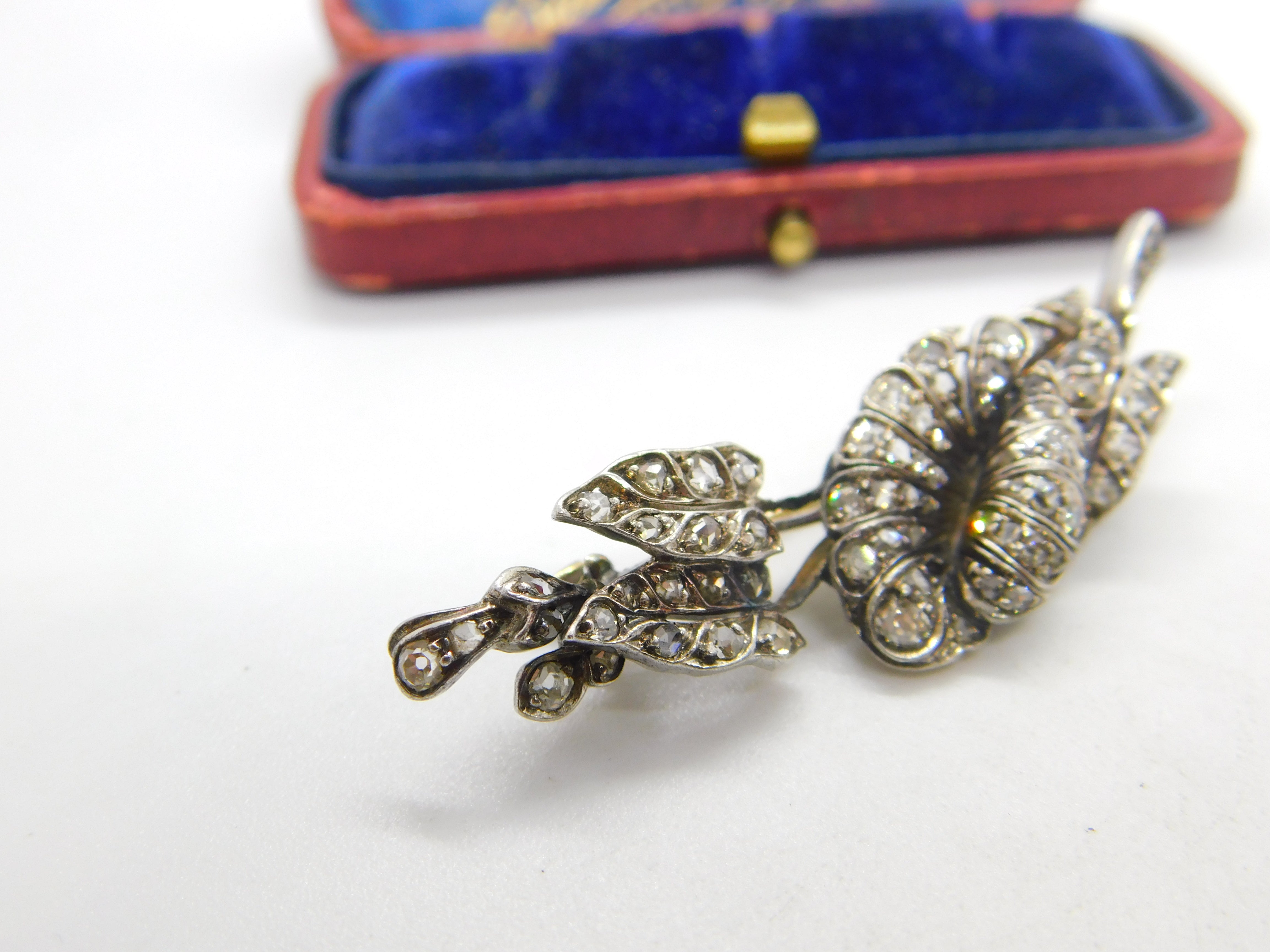 Art Nouveau 14ct Yellow Gold & Pave Set 1.1ct Diamond Floral Brooch c1880 Antique