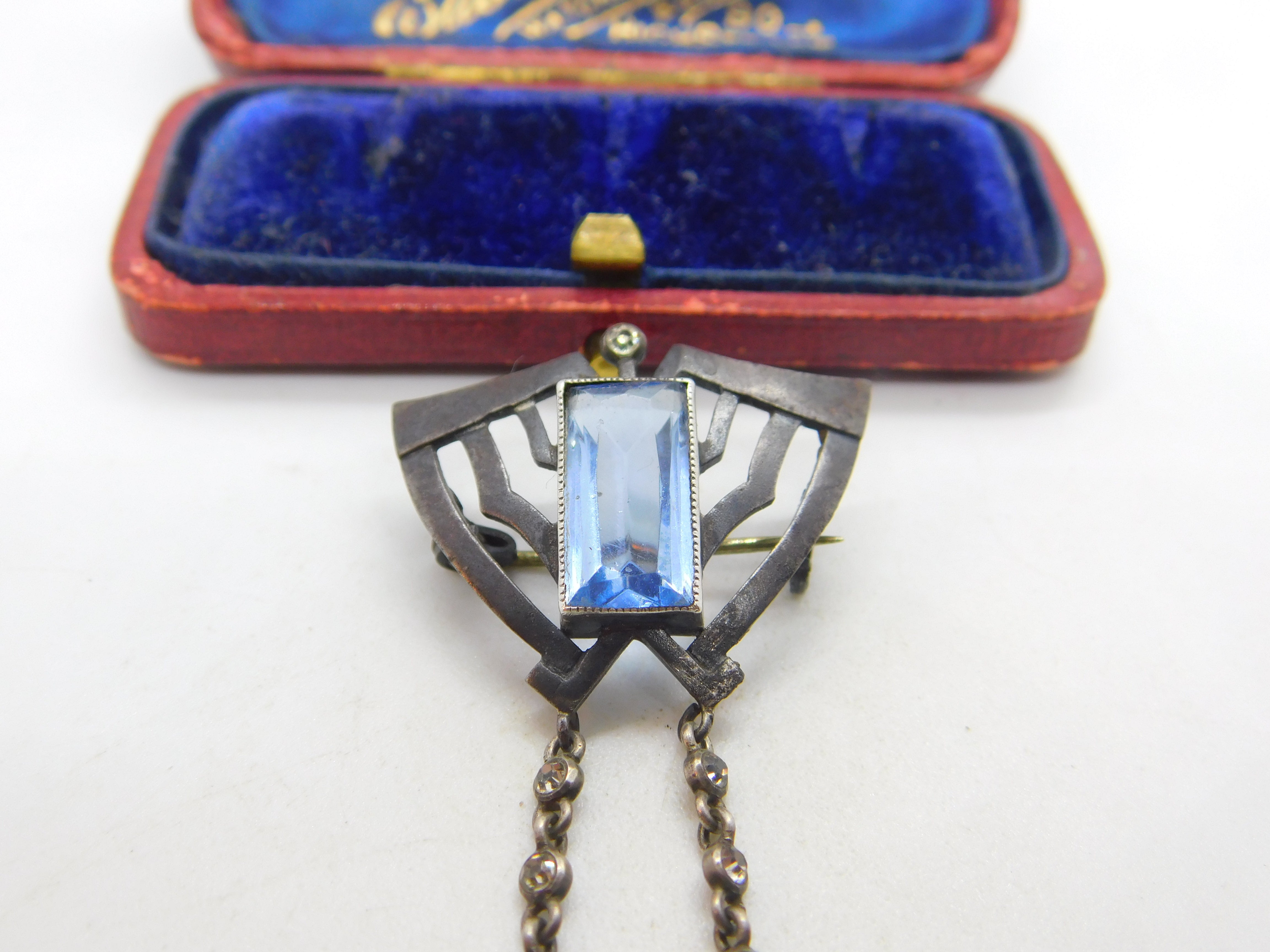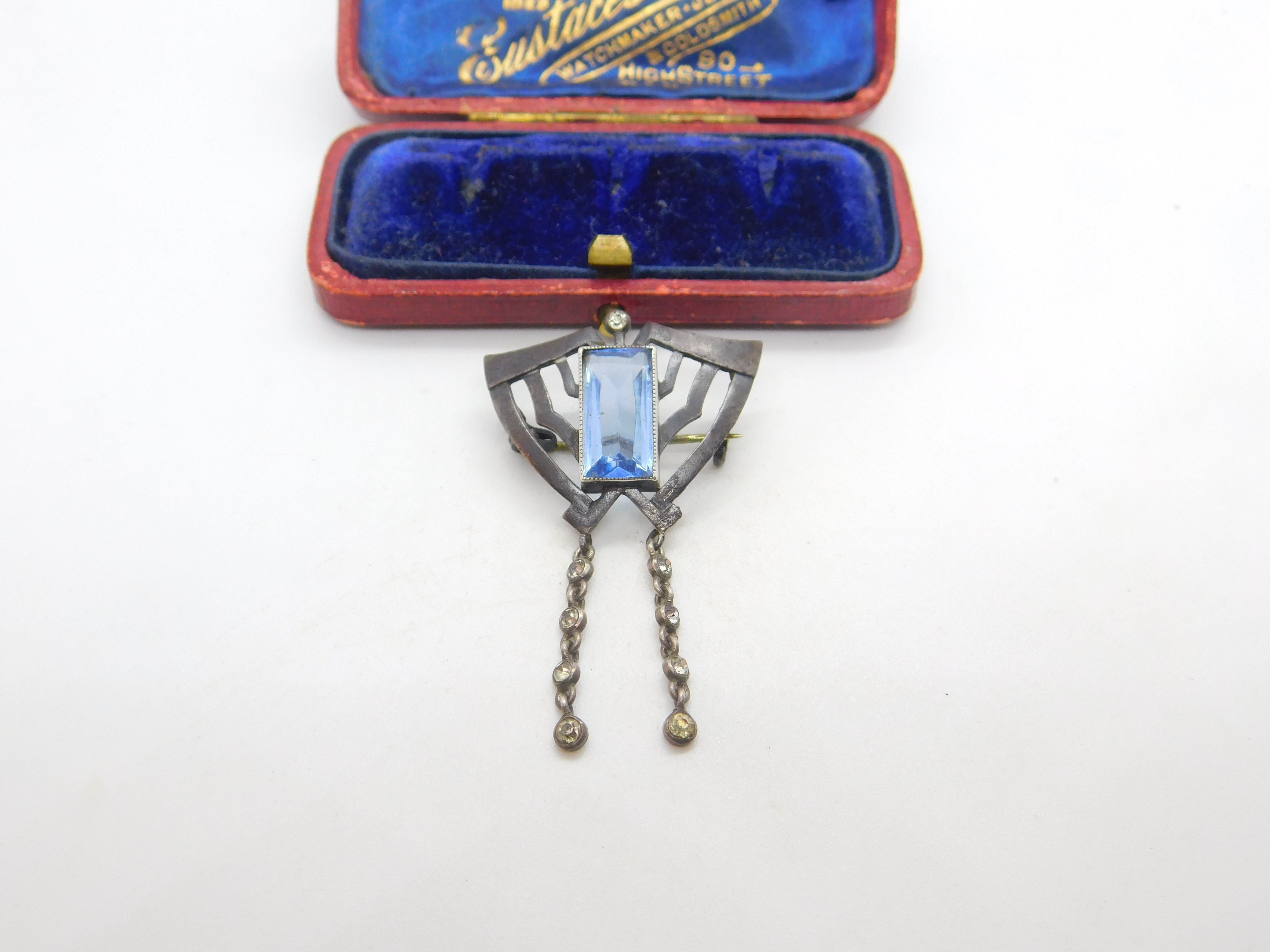Details: A fantastic and wonderfully designed antique Victorian art nouveau cut steel, blue topaz and sterling silver set diamond paste drop brooch with lovely shape c1890. This is a wonderful item that would make a perfect gift or addition to any collection. The BOX pictured is for PRESENTATION ONLY and is NOT included in the listings but used to frame the pictures unless specifically stated otherwise.