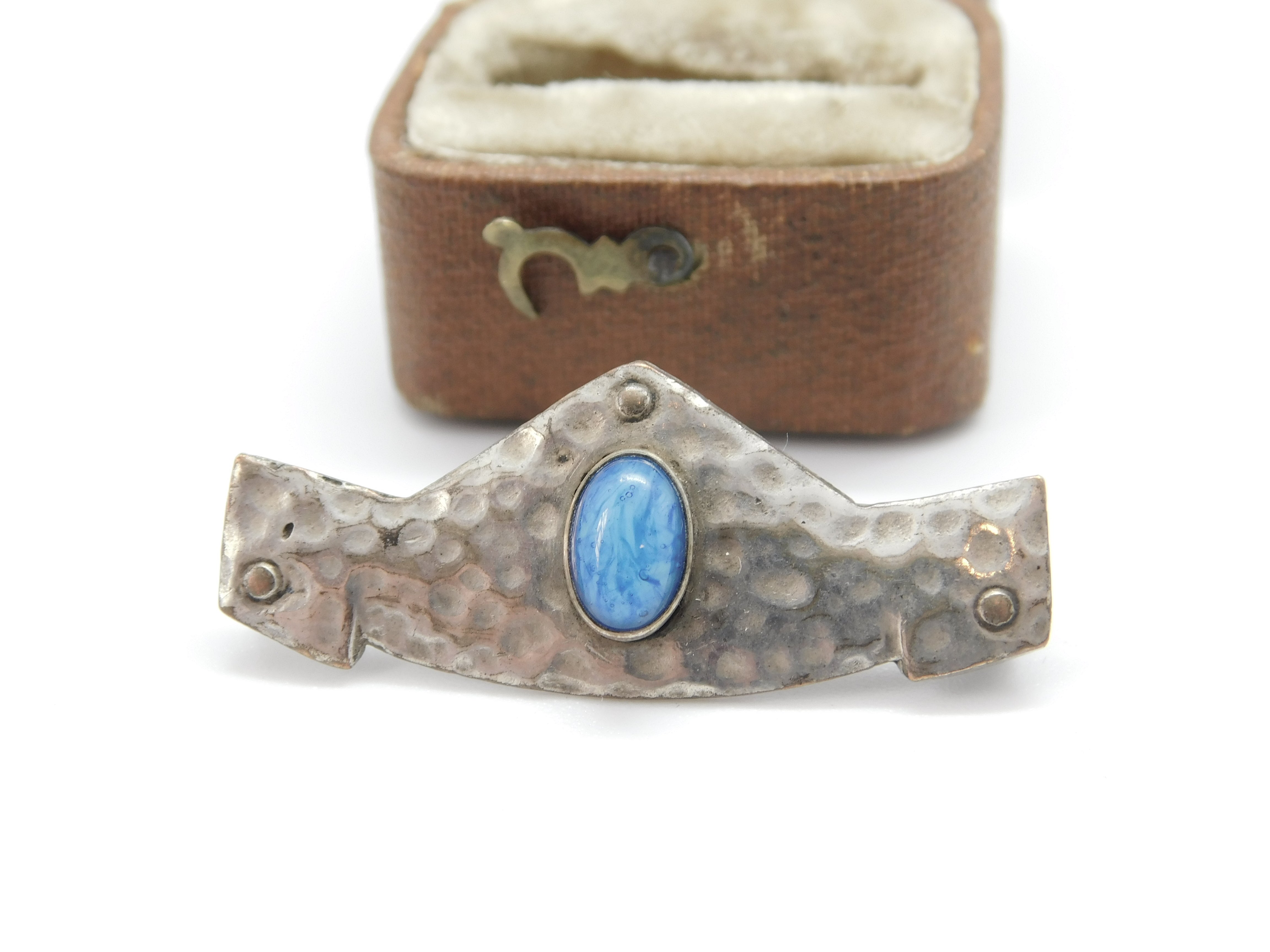 Arts & Crafts Planished Pewter Ruskin Cabochon Brooch c1910 Antique