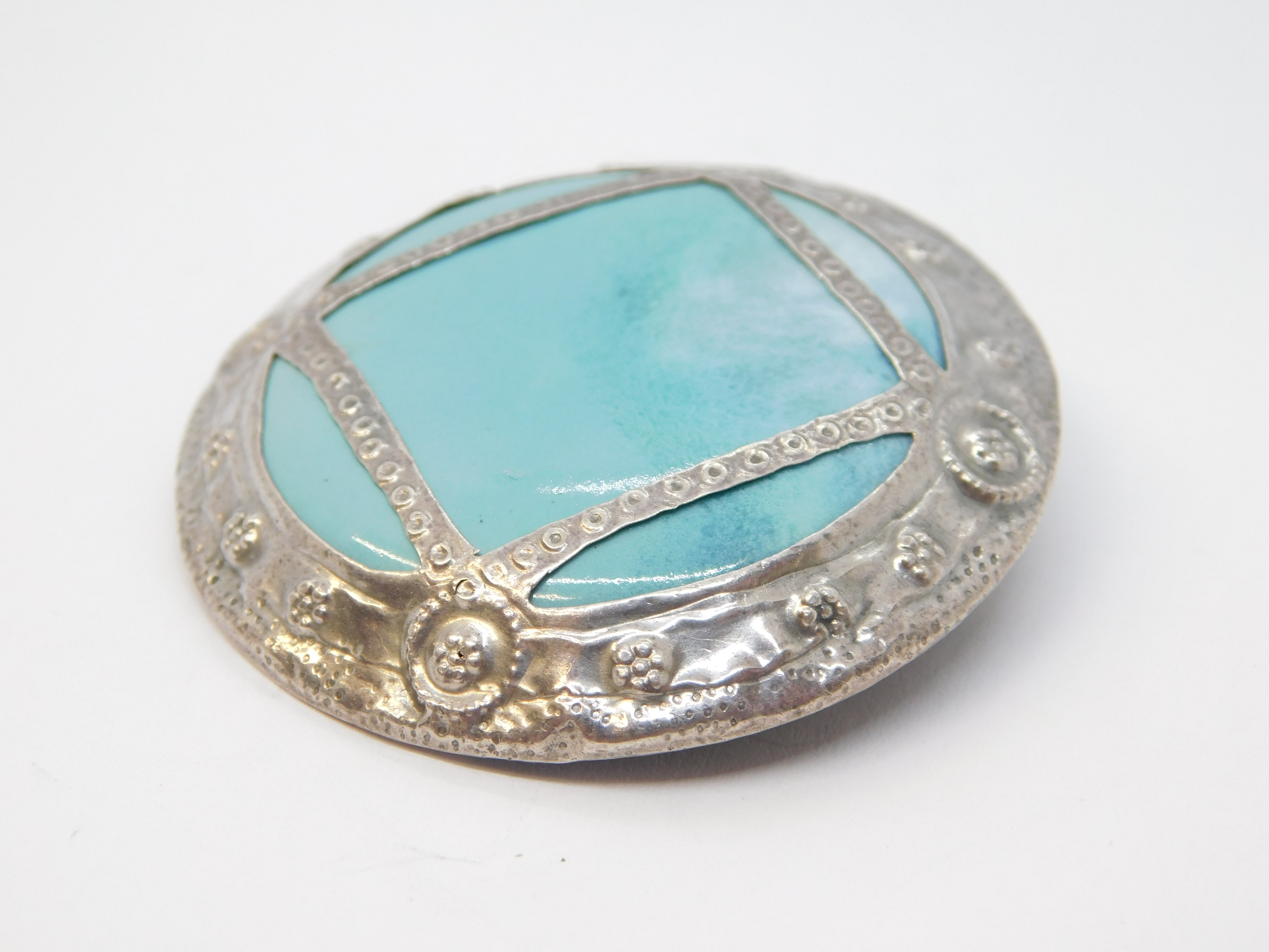 Details: A fantastic and wonderfully designed antique arts & crafts sterling silver fronted blue enamel brooch pin with brass back c1910, the silver has been XRF tested, liberty style. This is a wonderful item that would make a perfect gift or addition to any collection. We are more than happy to provide XRF reports for items upon request.