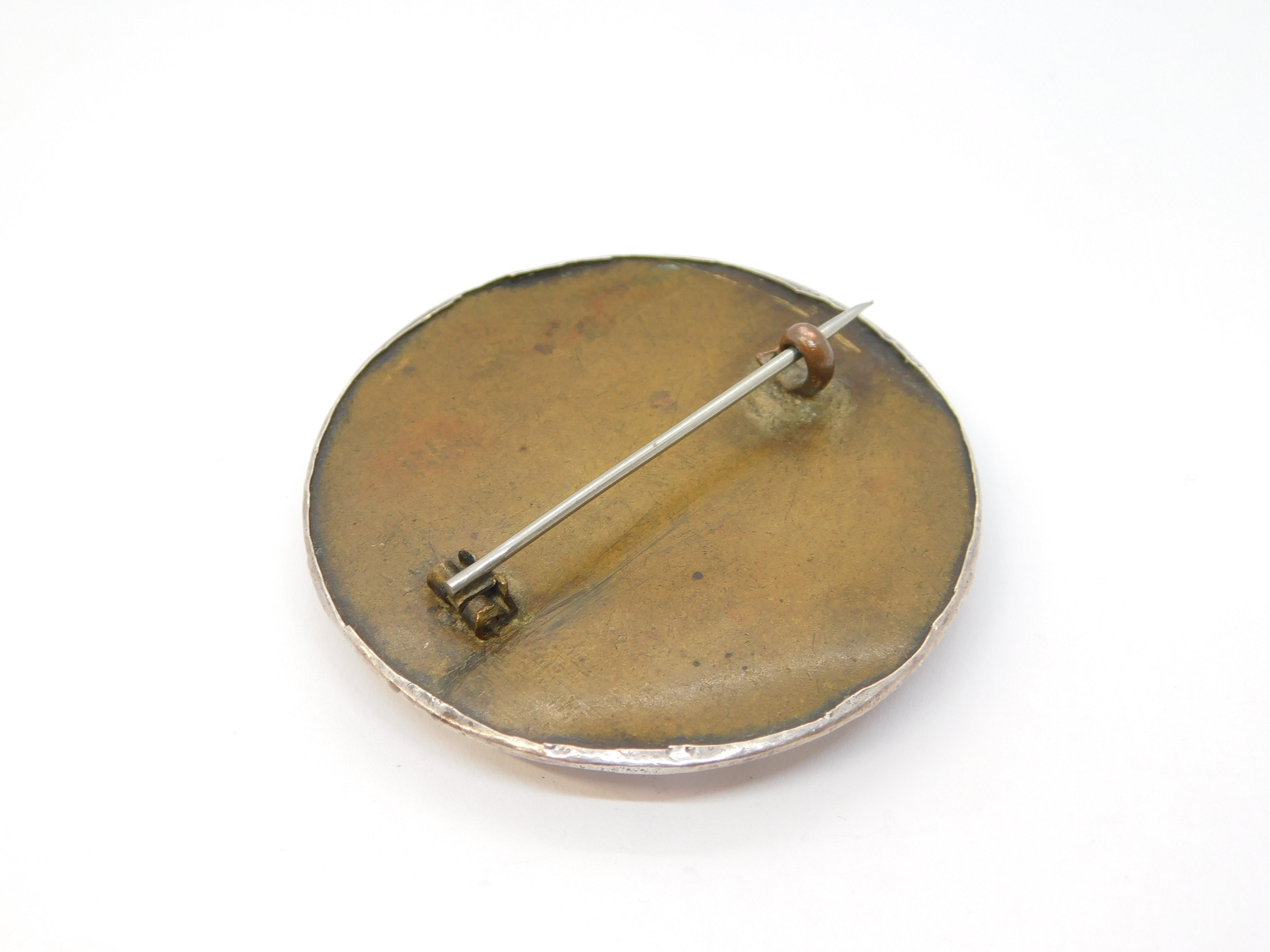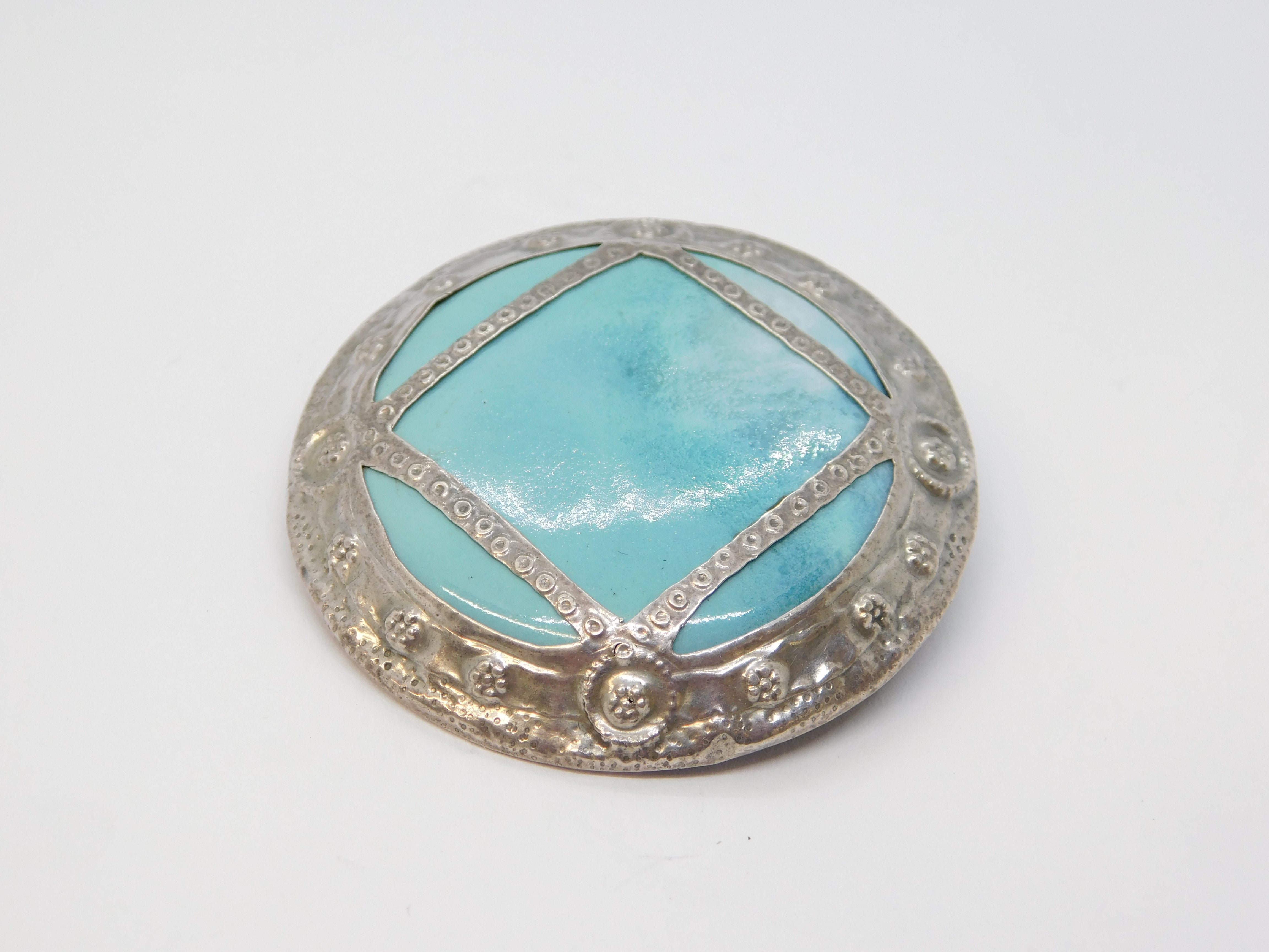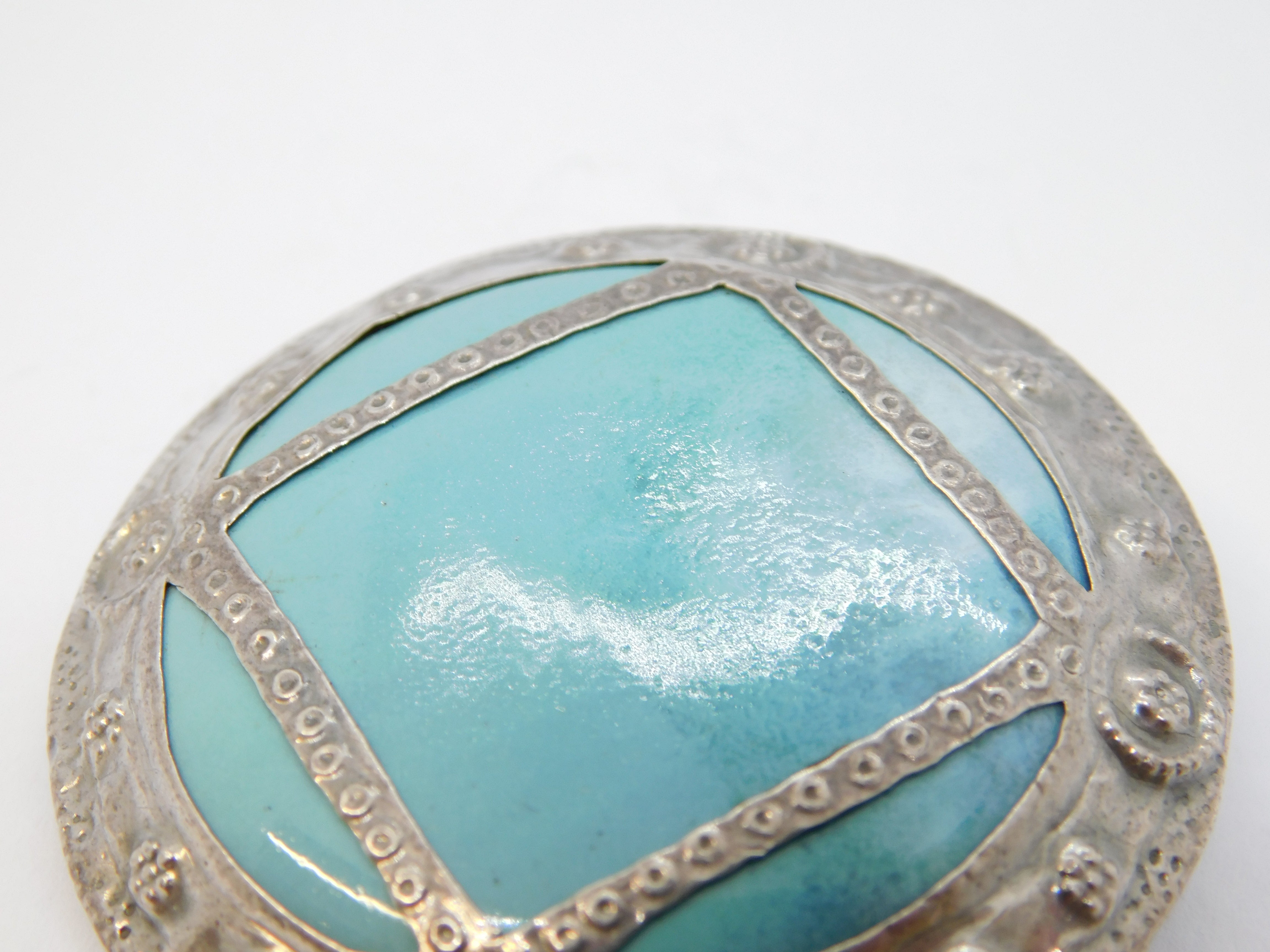 Arts & Crafts Sterling Silver Fronted Blue Enamel Brooch Pin Antique c1910
