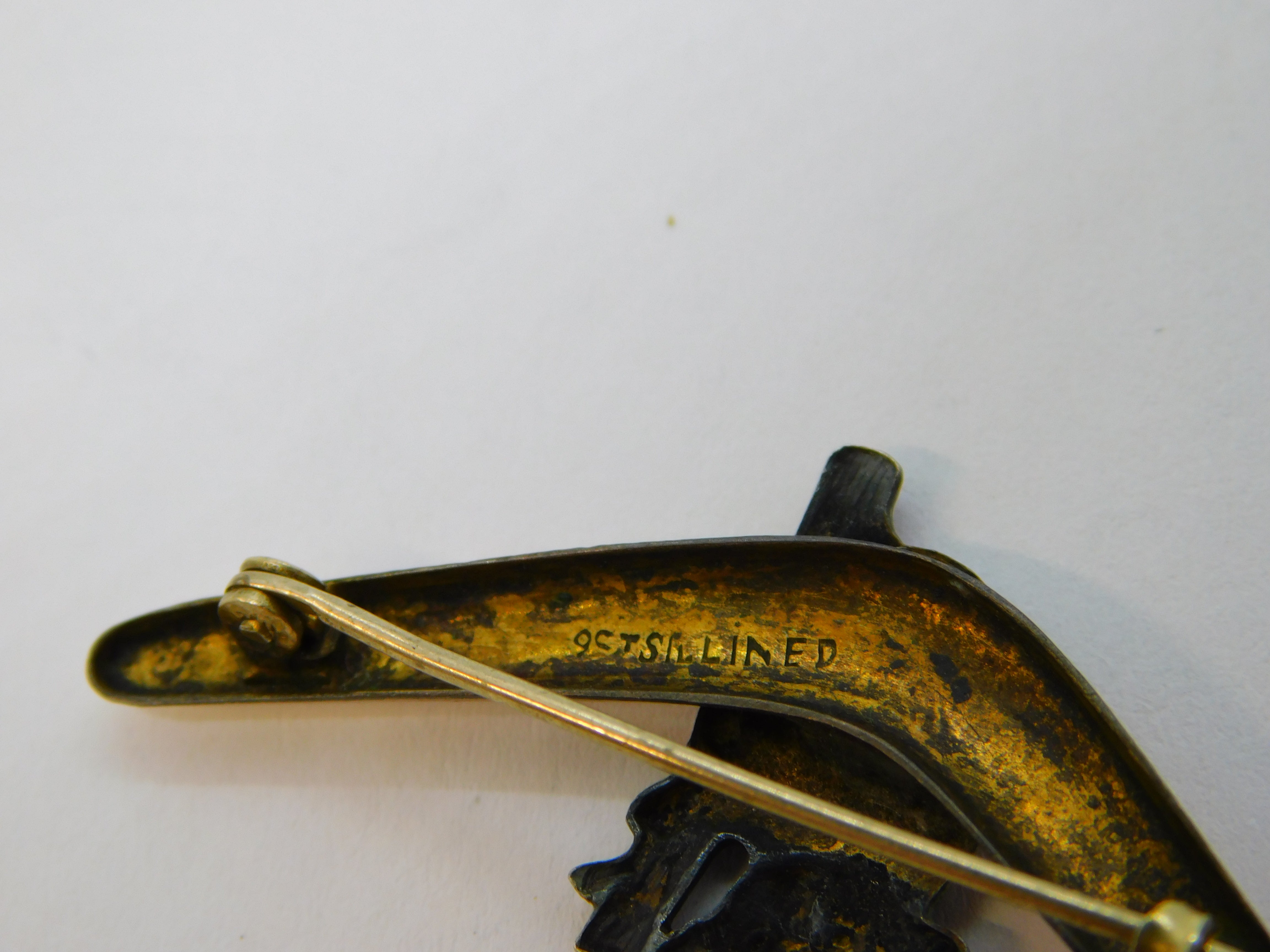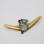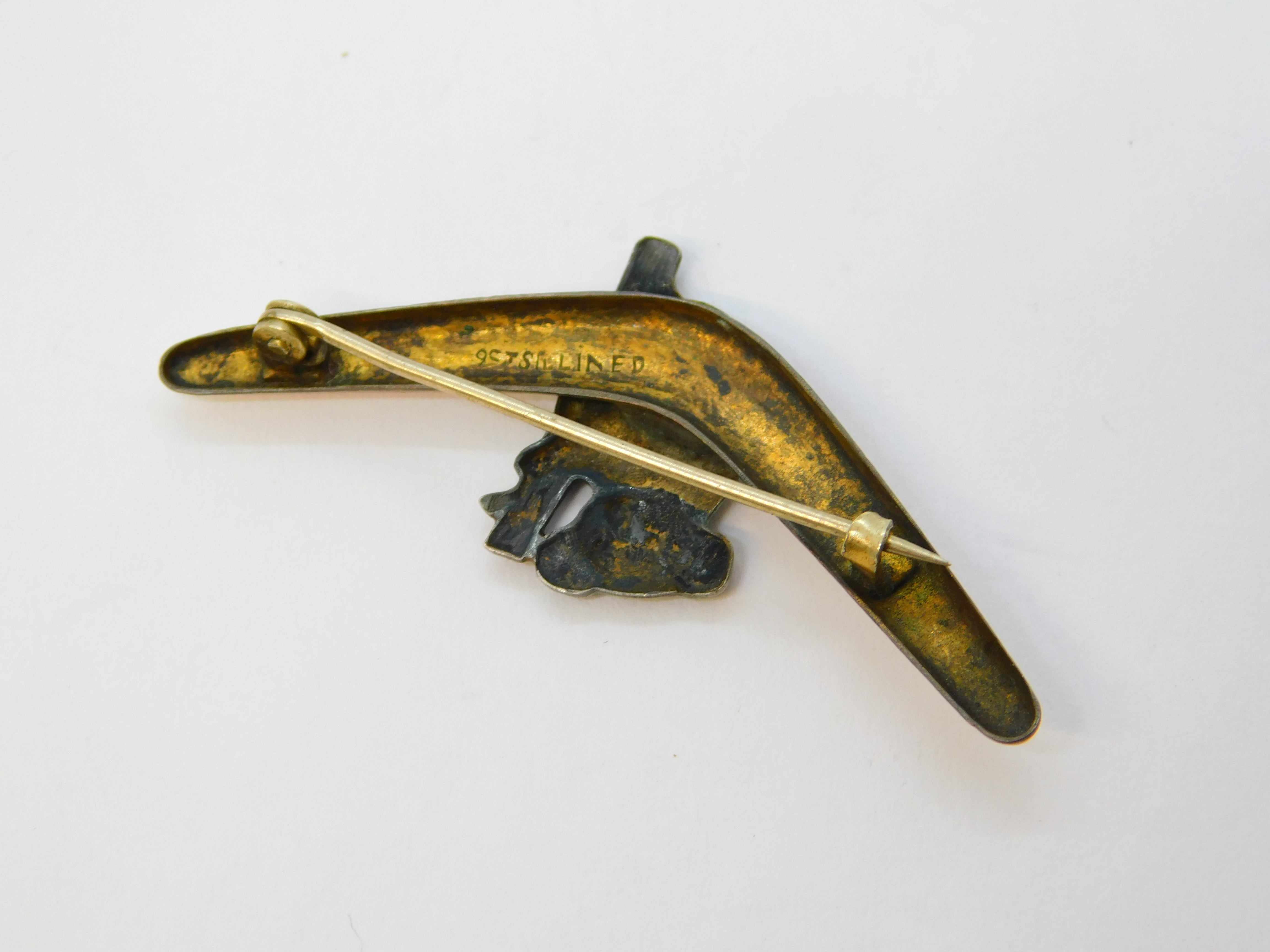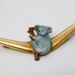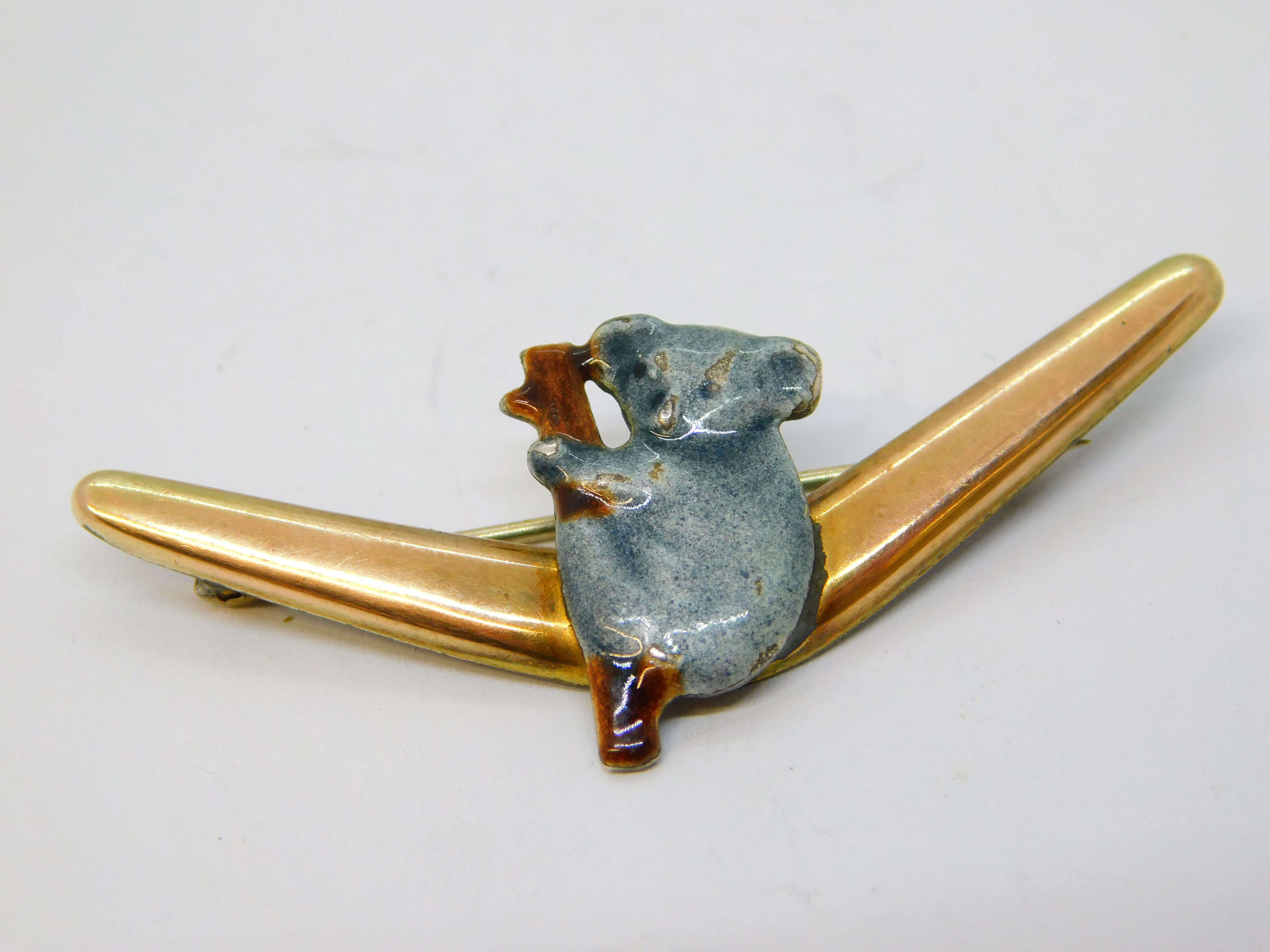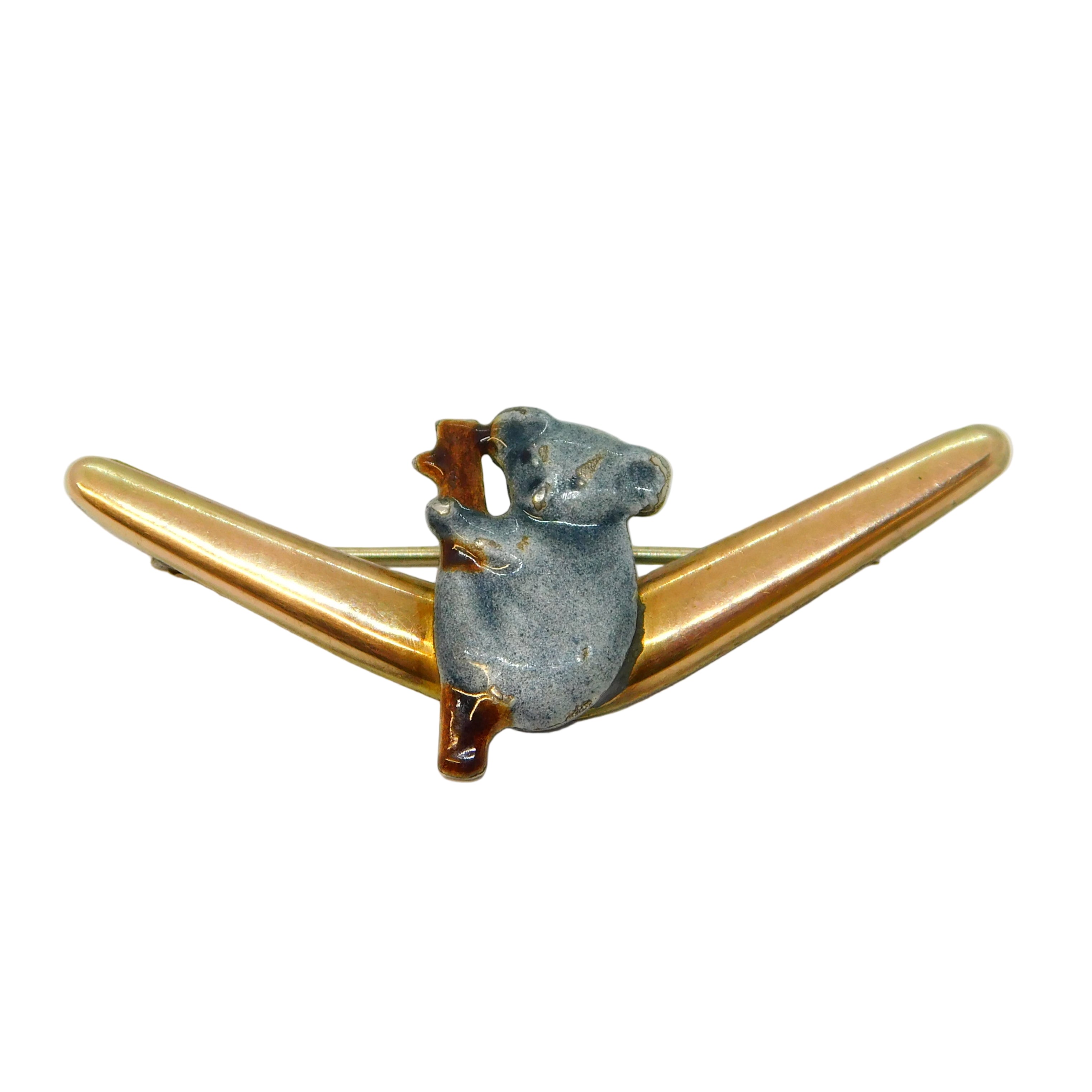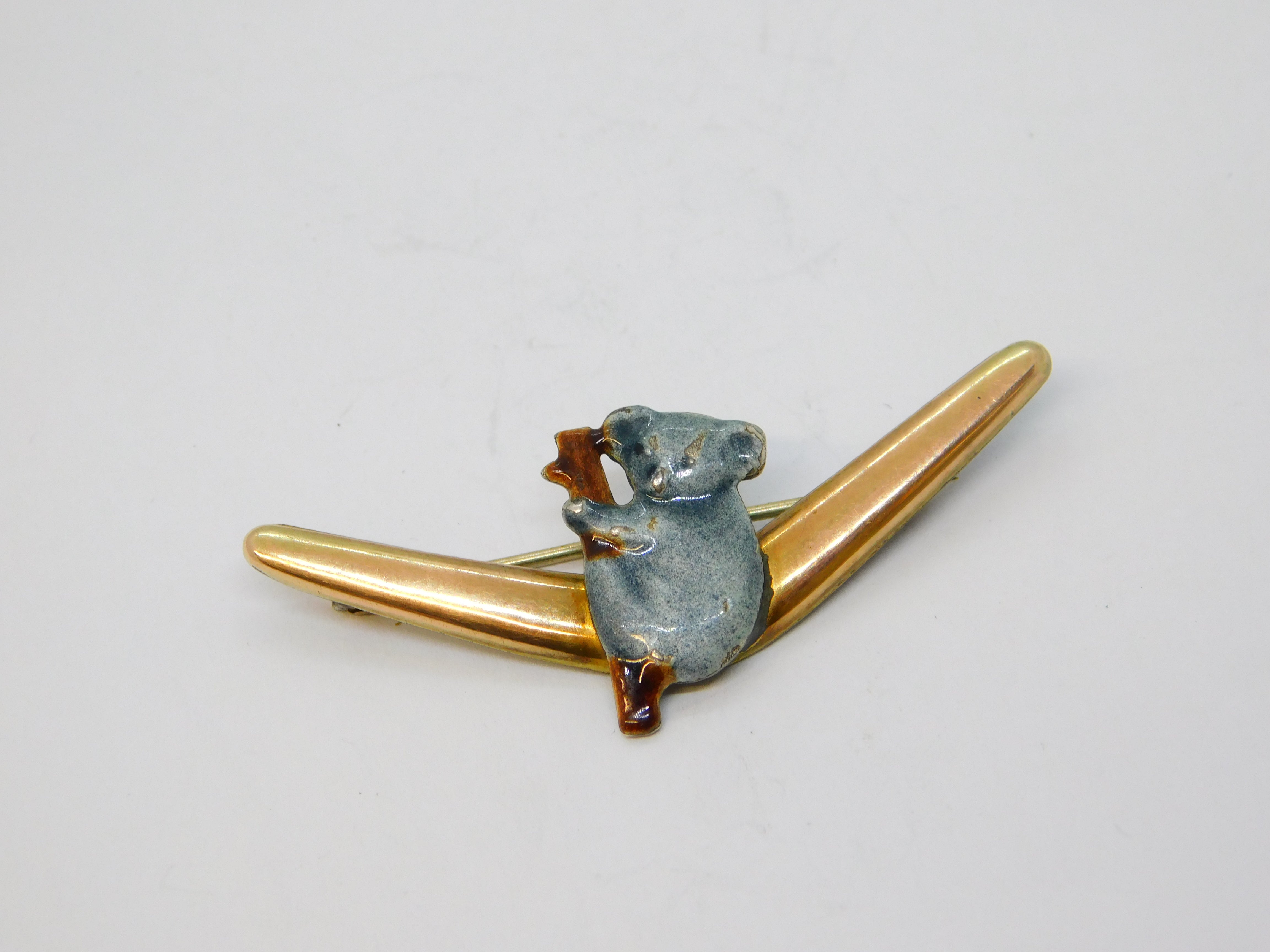 Australian 9ct Gold Silver Lined Enamel Koala Boomerang Brooch Antique c1930