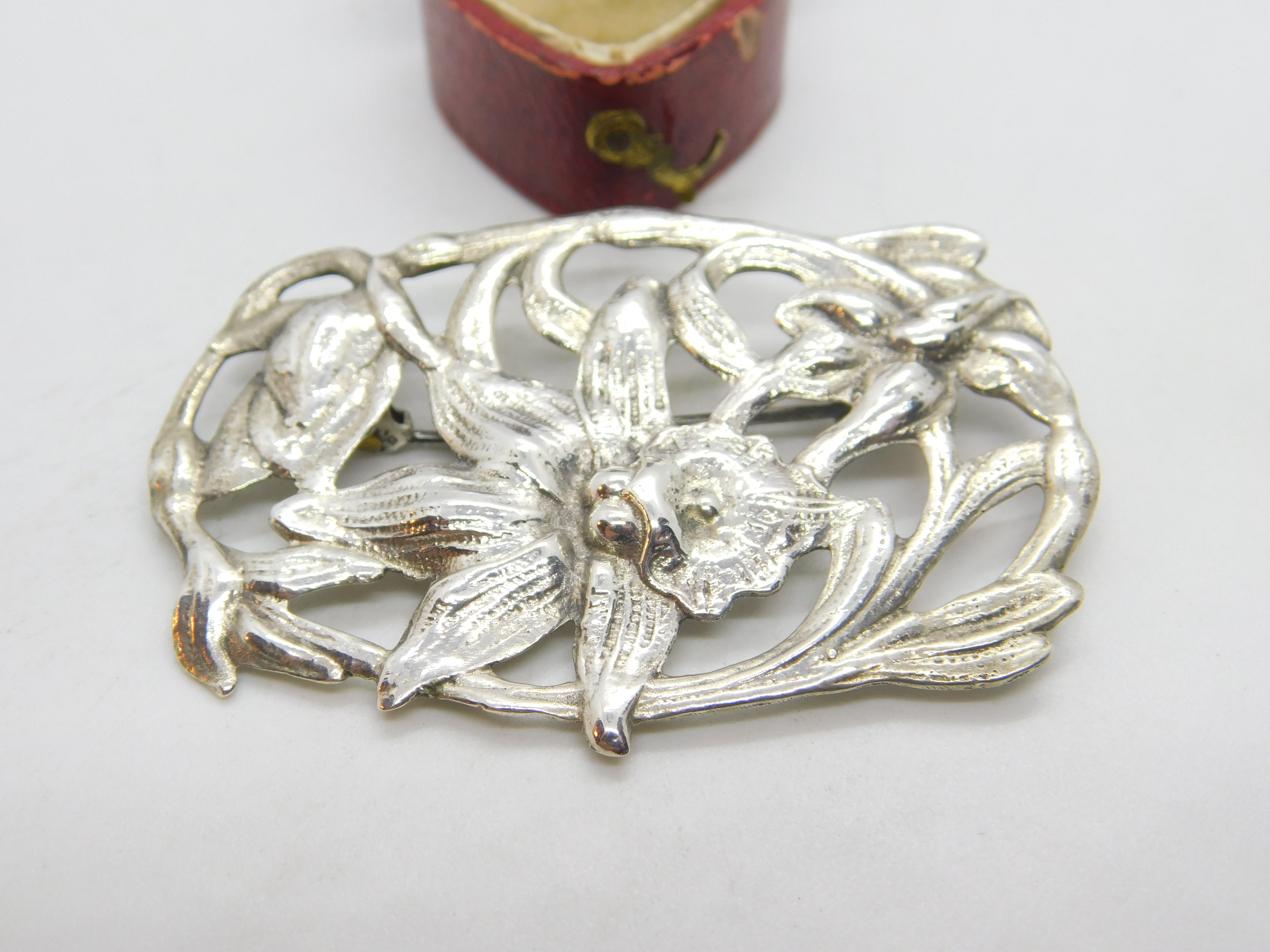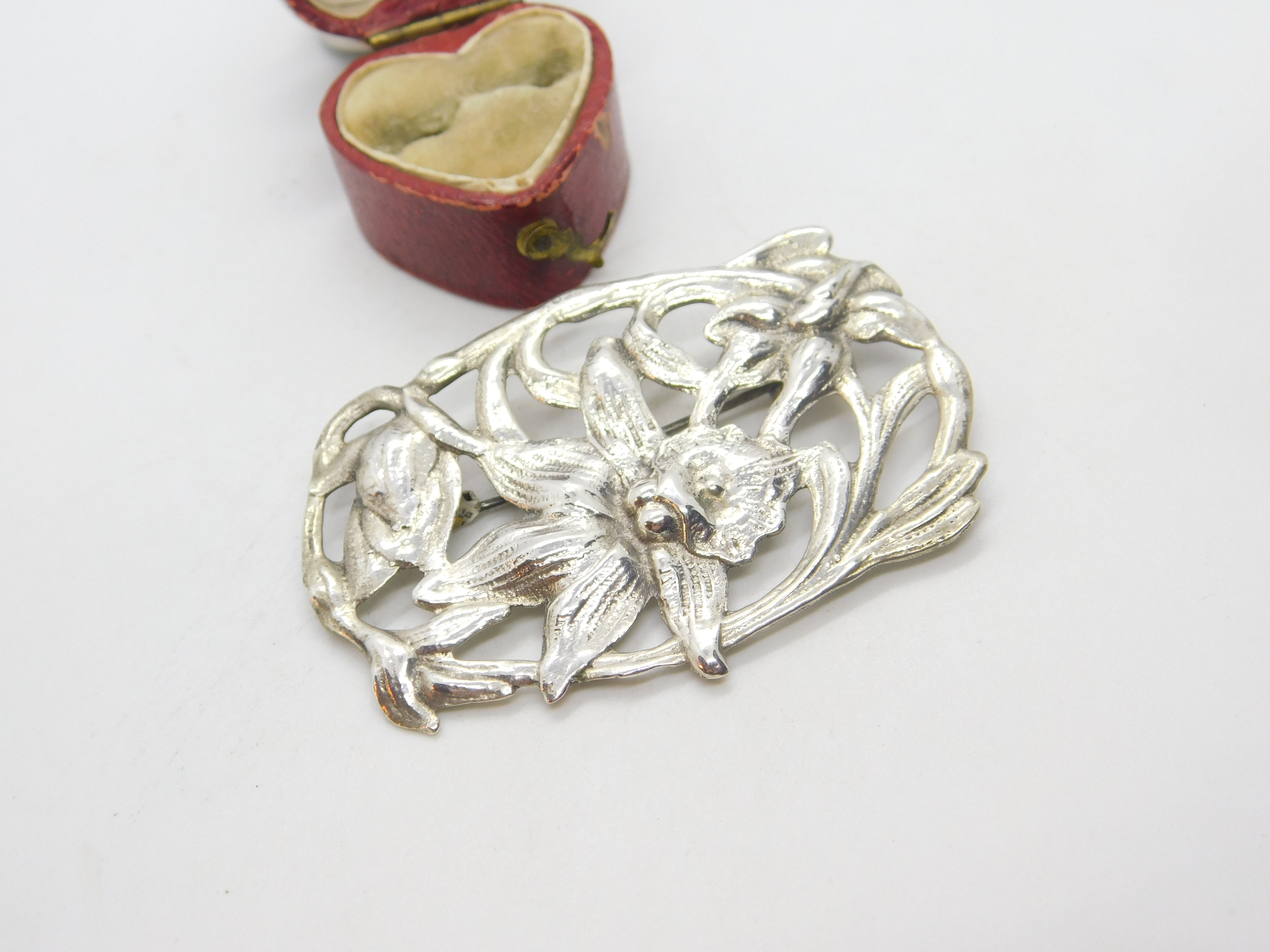 Australian Sterling Silver Daffodil Brooch Pin Antique c1920 Art Deco