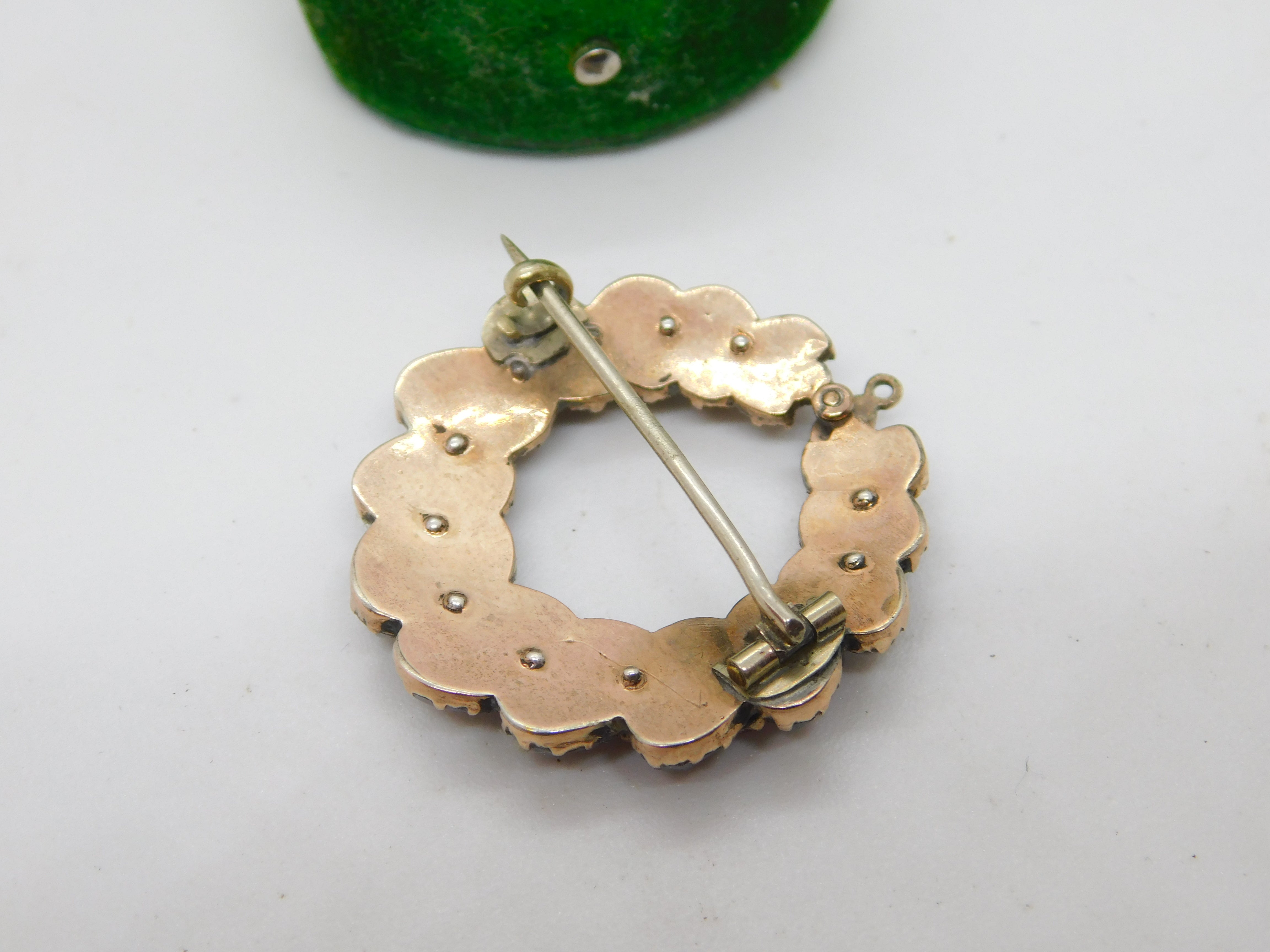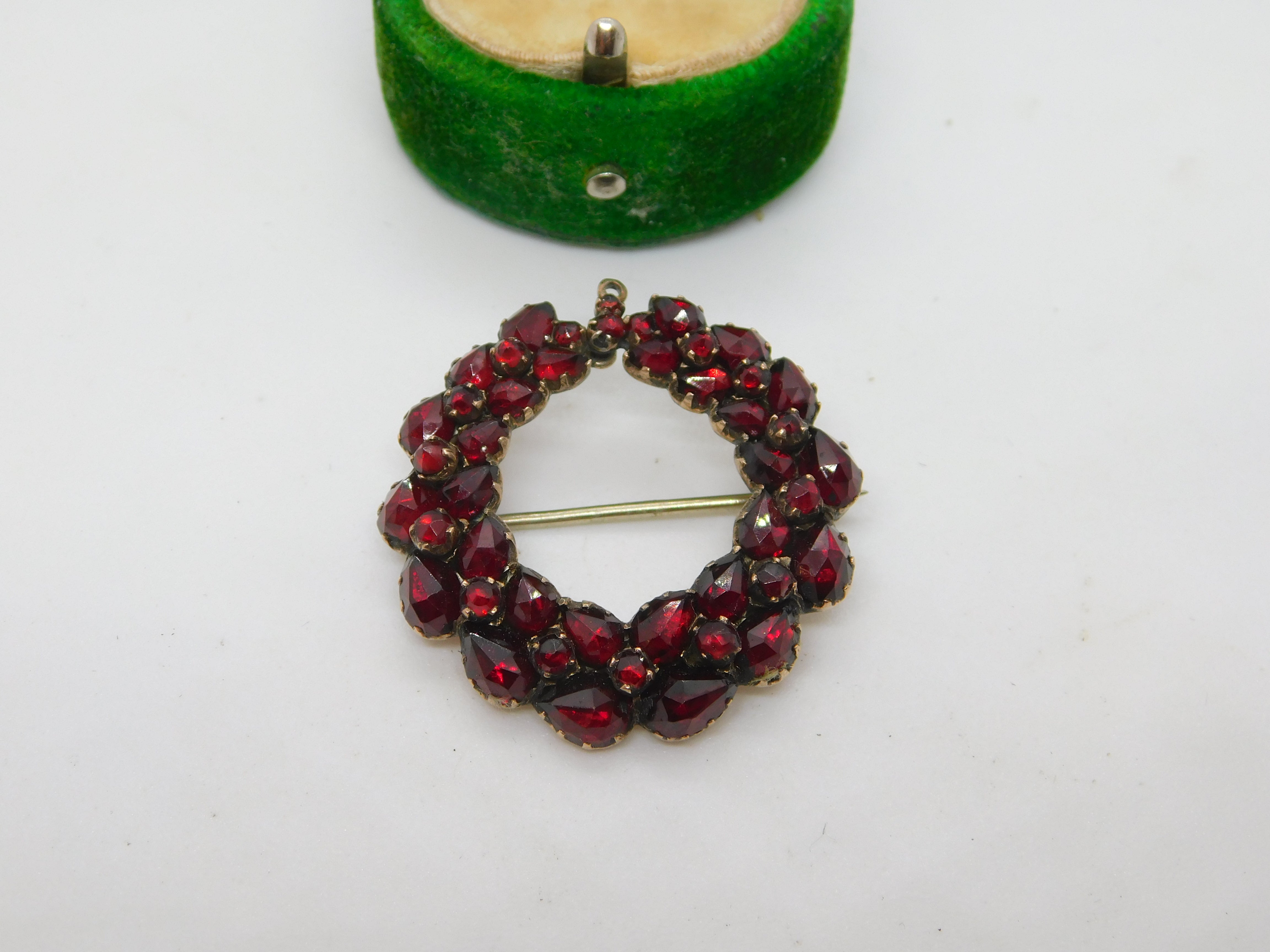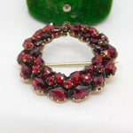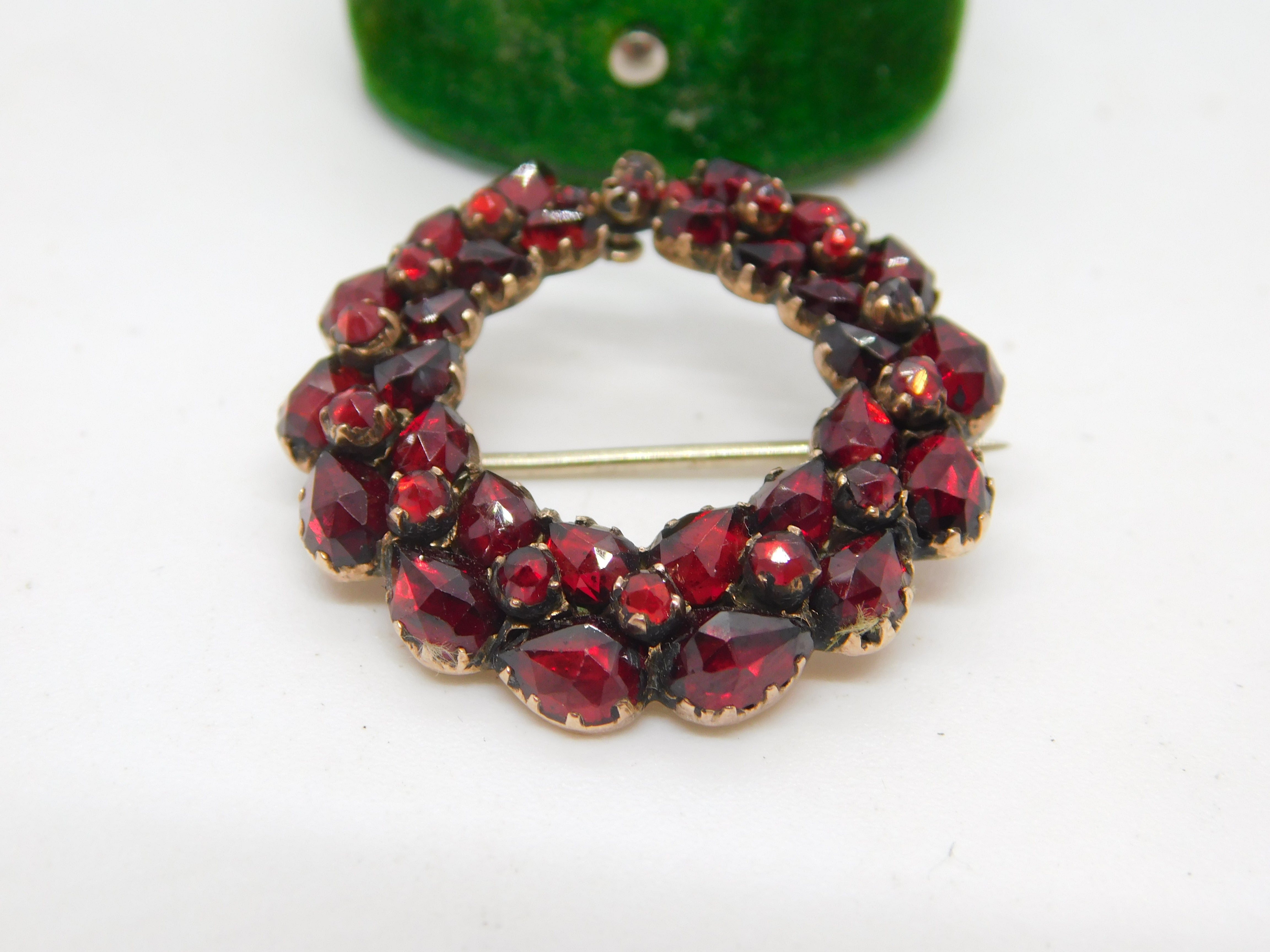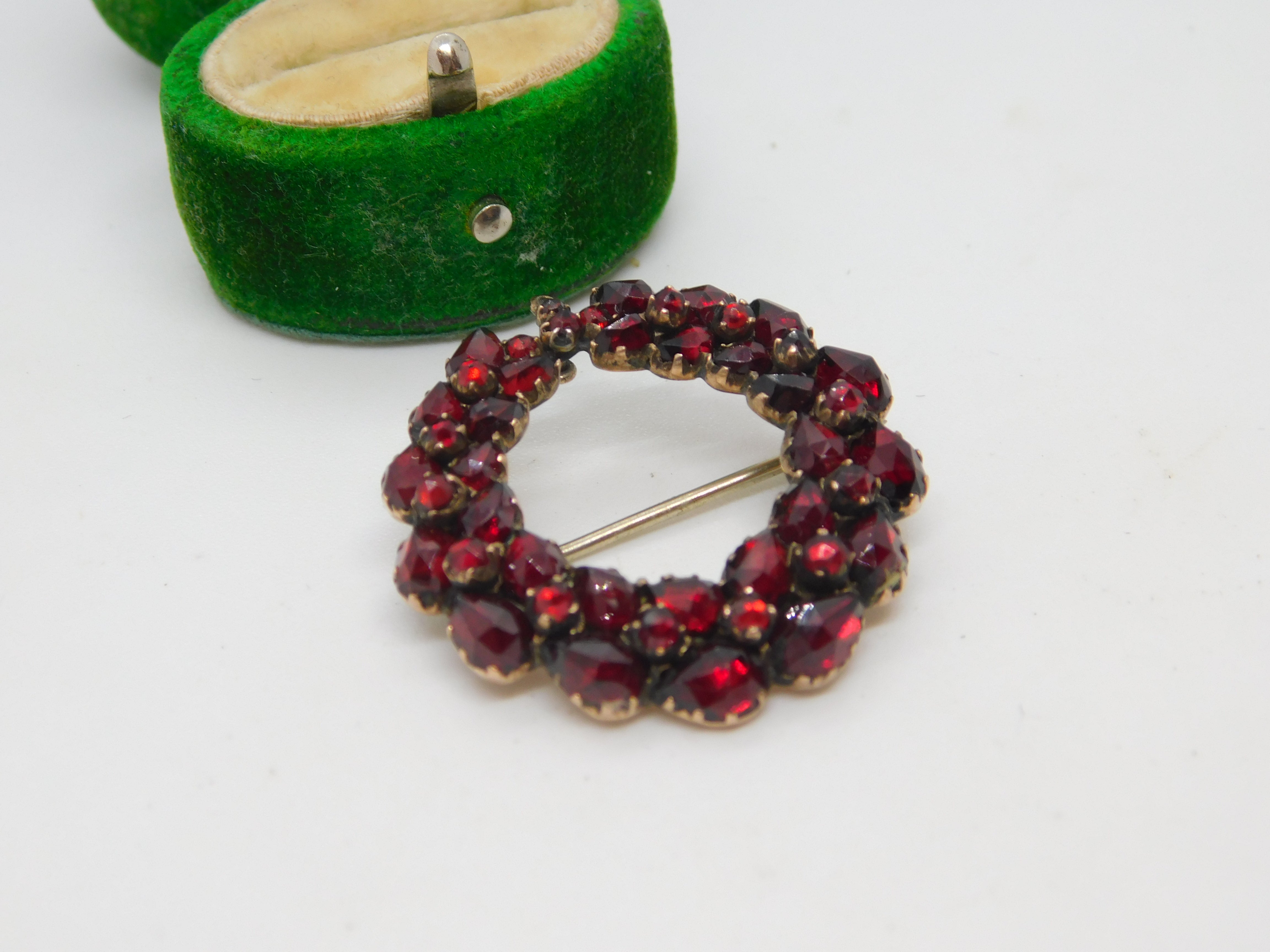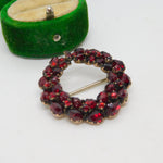 Austrian 8ct Gold Bohemian Garnet Set Floral Wreath Brooch Antique c1960
