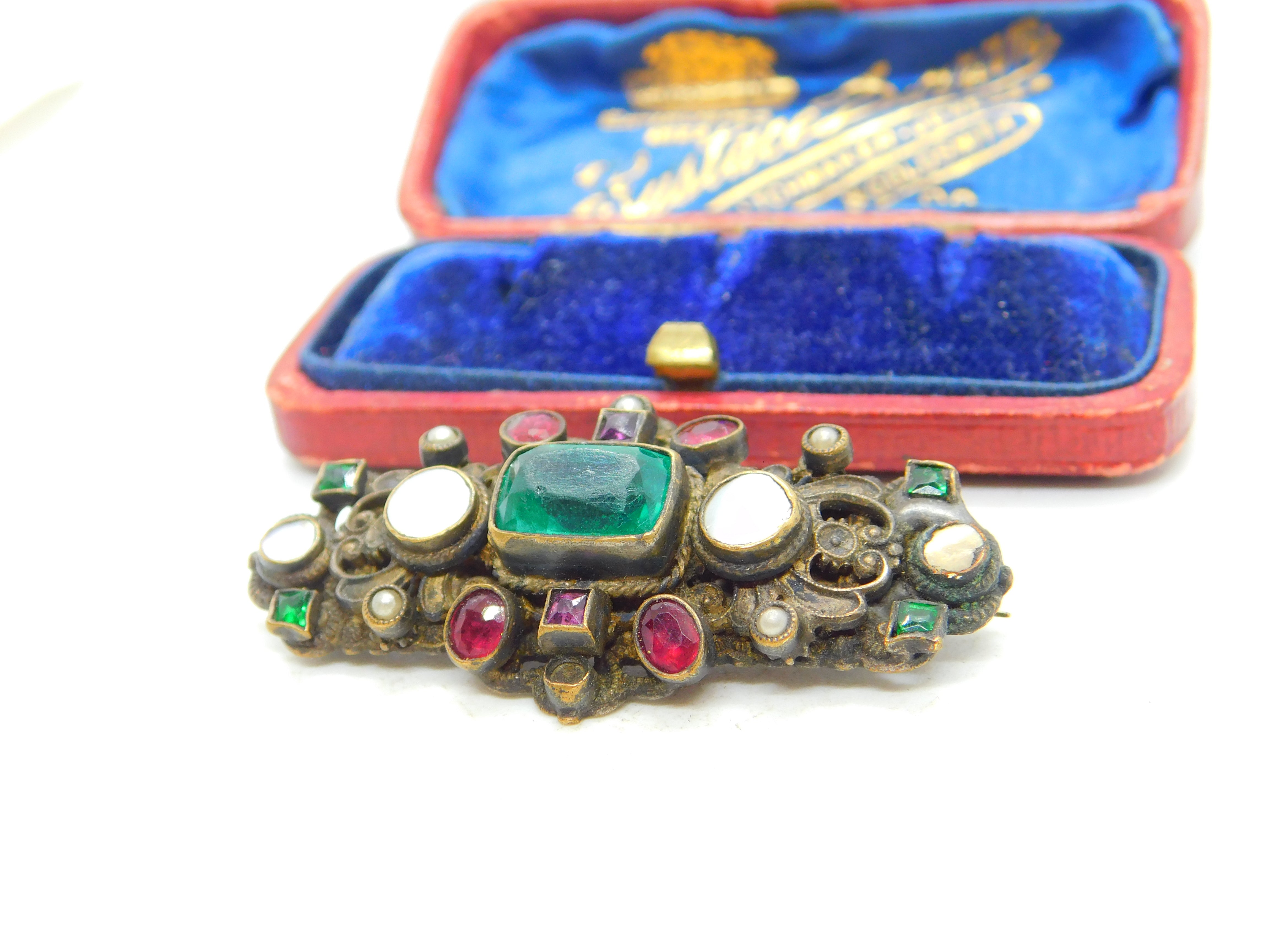 Austro Hungarian Sterling Silver Emerald Paste Brooch Antique Victorian c1860