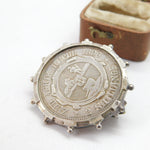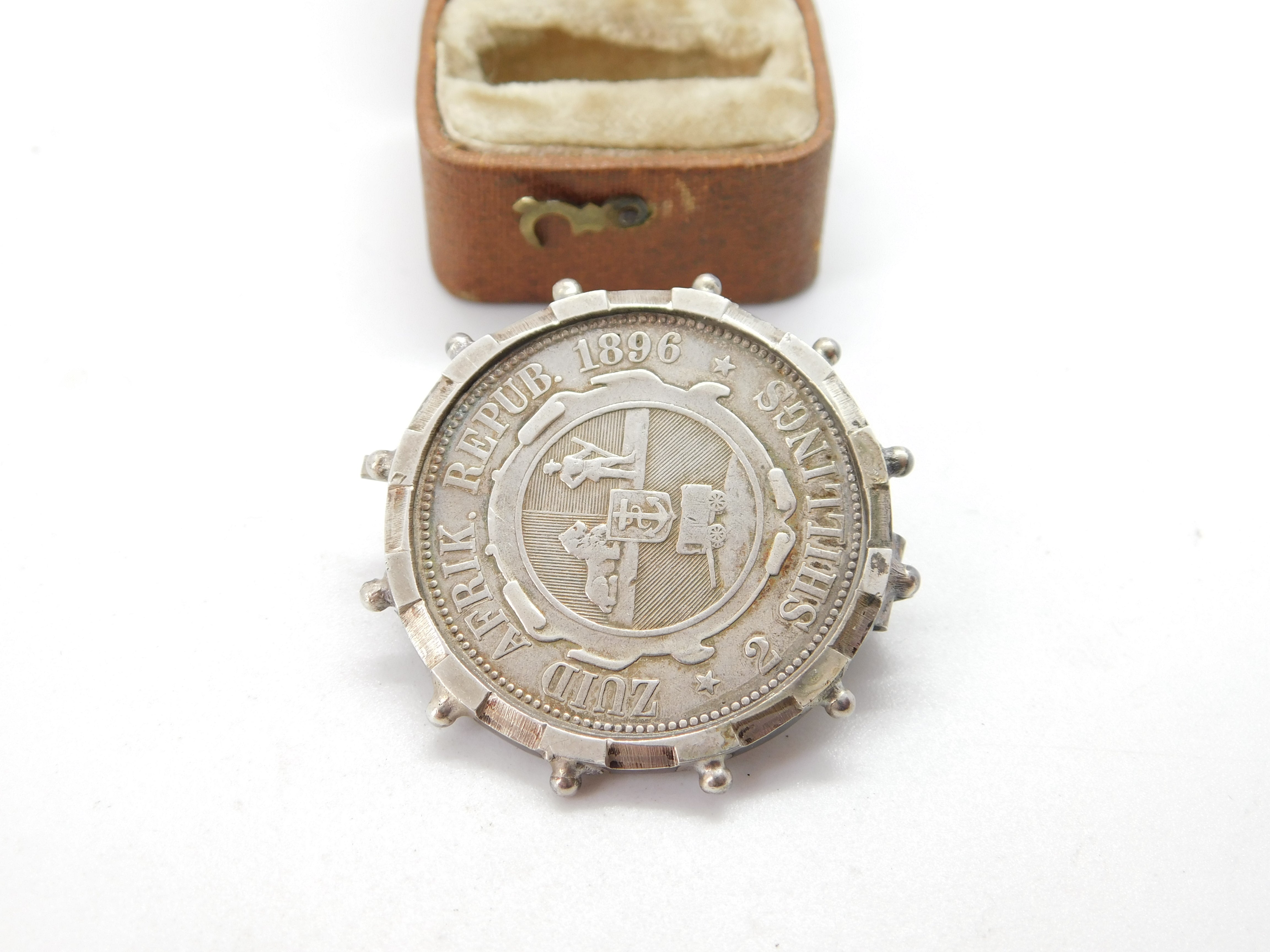 Details: A fantastic and wonderfully designed antique Victorian sterling silver Boer War novelty south african two shillings coin brooch dated 1896 with engraved pipe smoking design to the reverse. This is a wonderful item that would make a perfect gift or addition to any collection. The BOX pictured is for PRESENTATION ONLY and is NOT included in the listings but used to frame the pictures unless specifically stated otherwise.