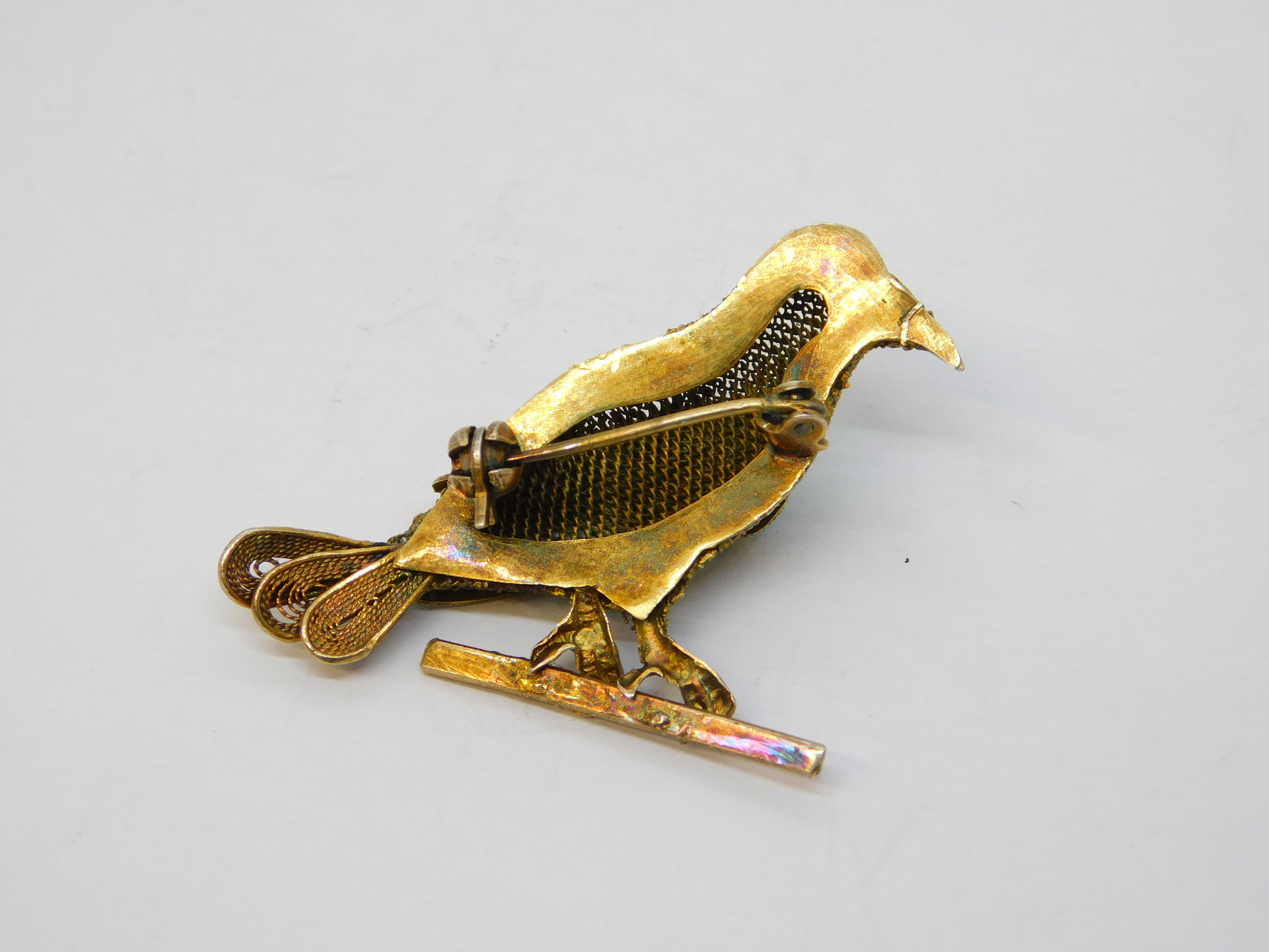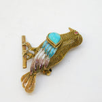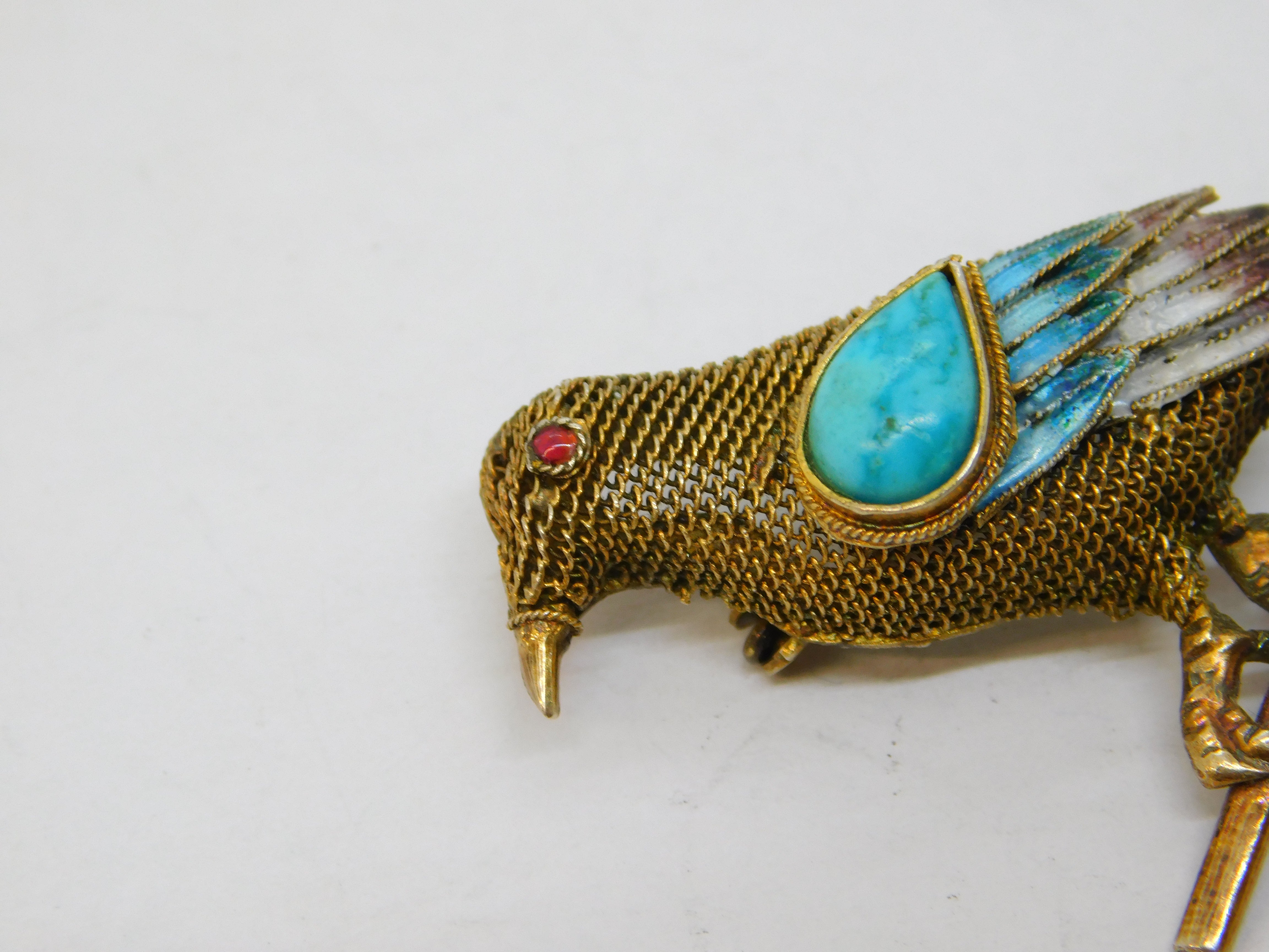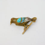 Chinese Sterling Silver Gilt, Enamel & Turquoise Bird Brooch Antique c1940