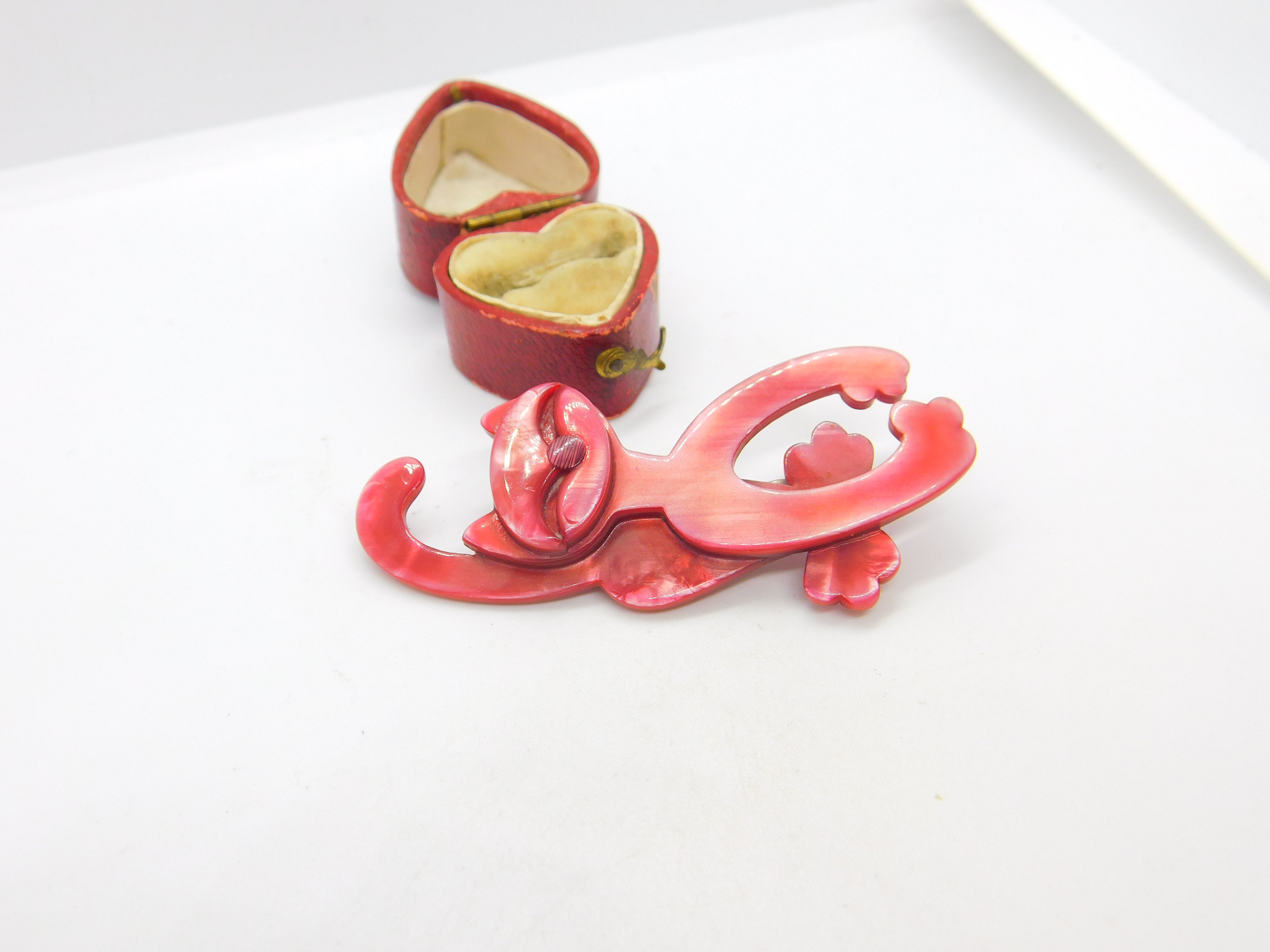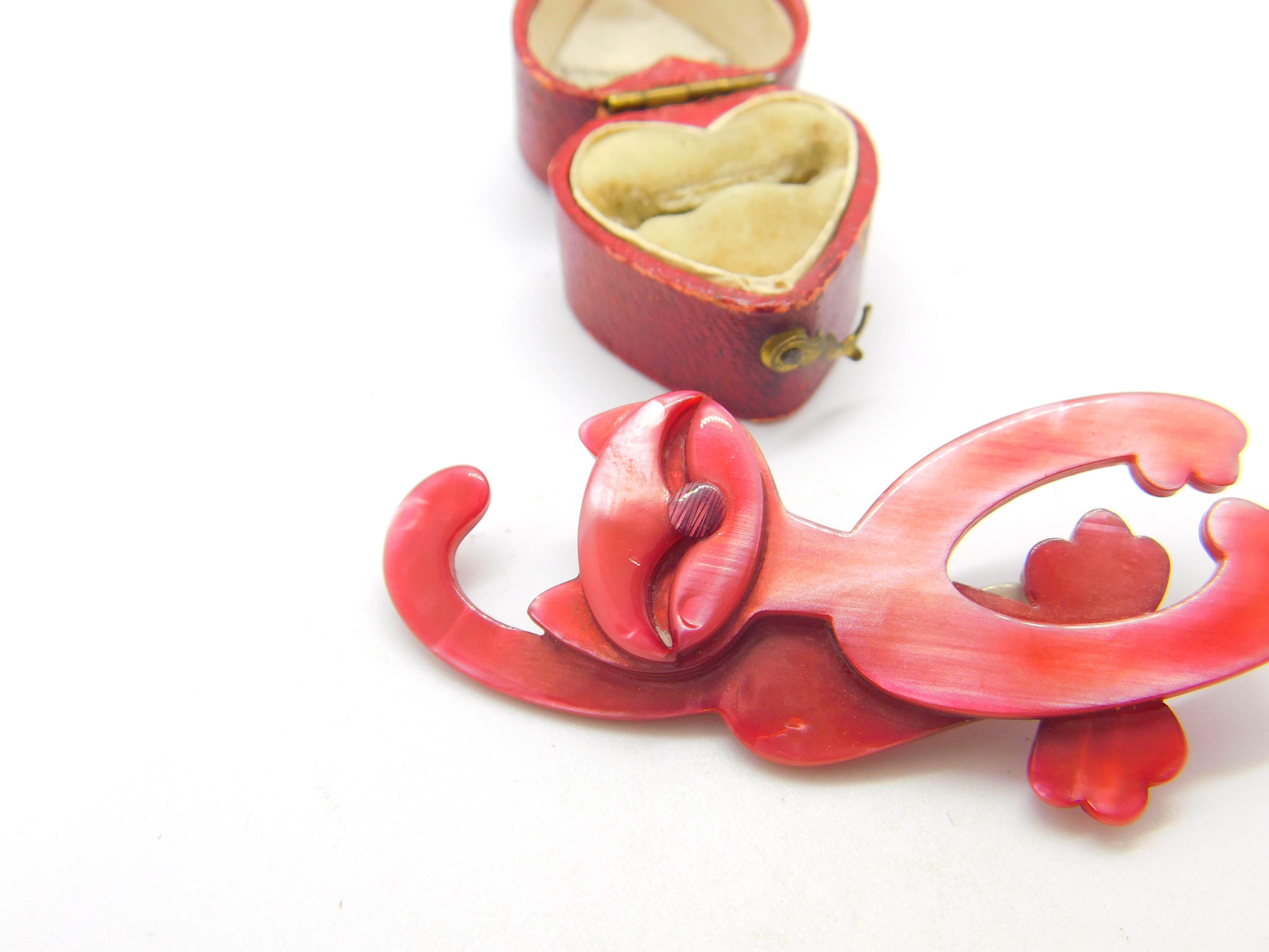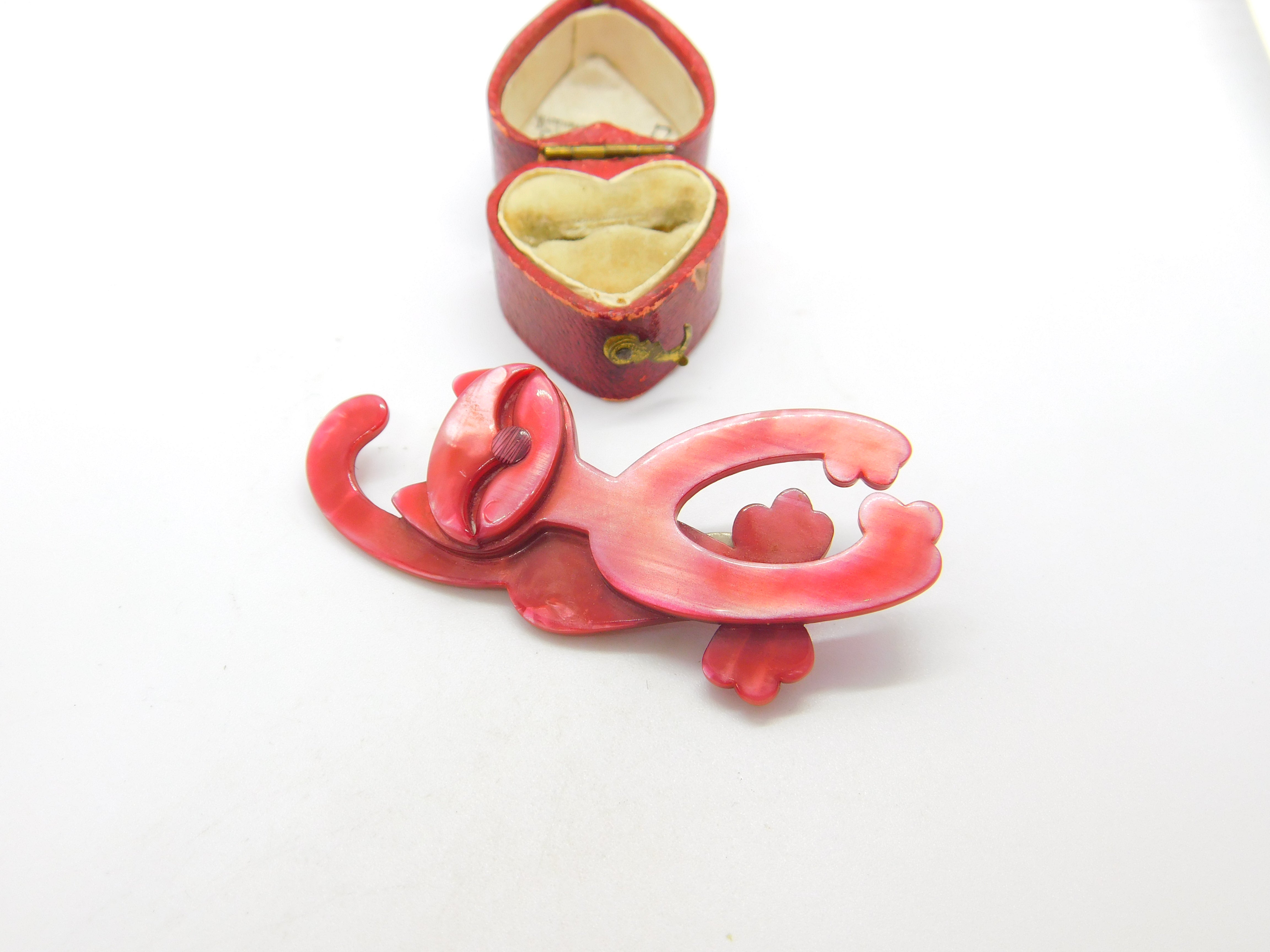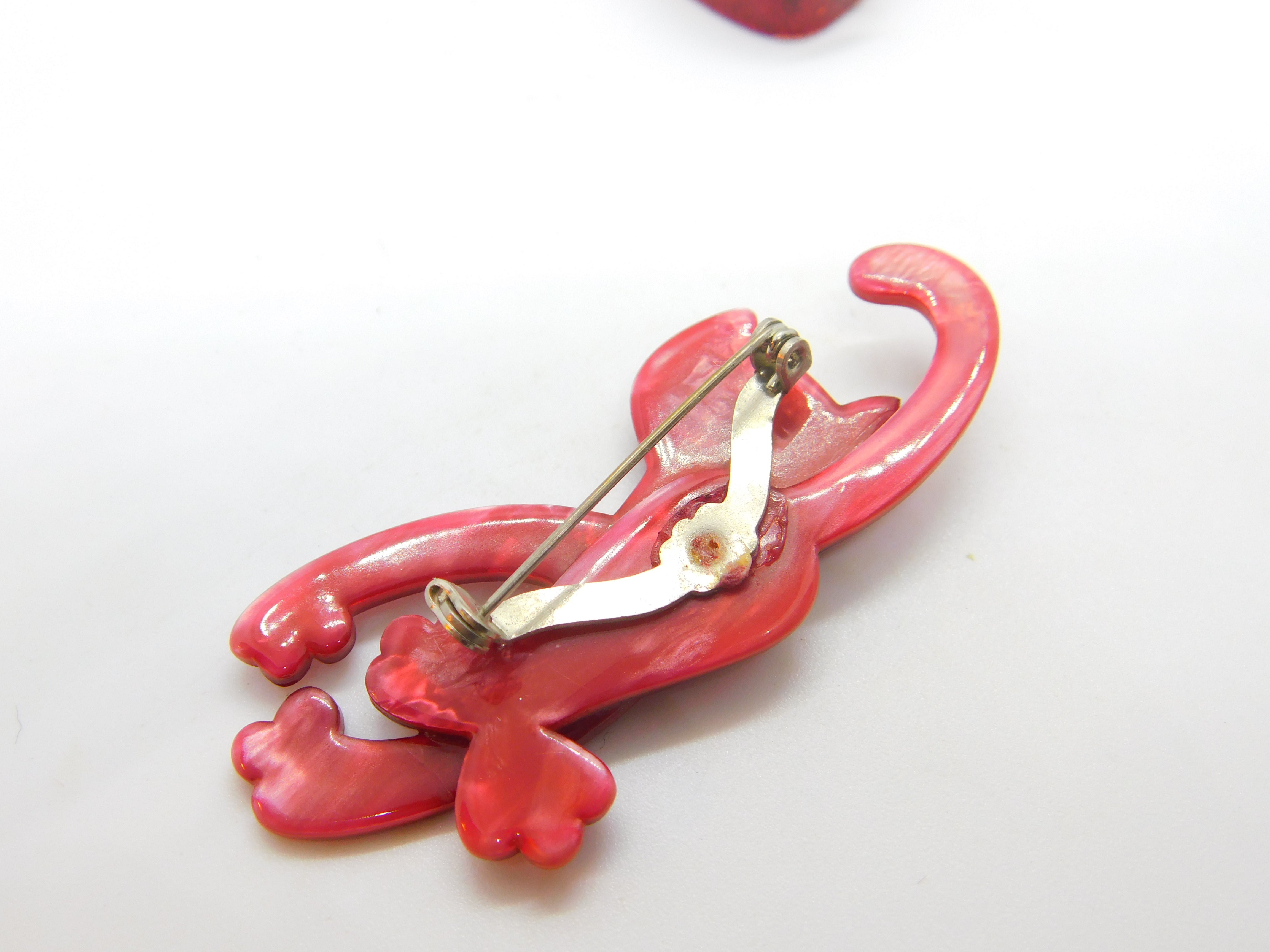 Crazy Pink Cat Lea Stein Paris Brooch Pin Vintage c1960