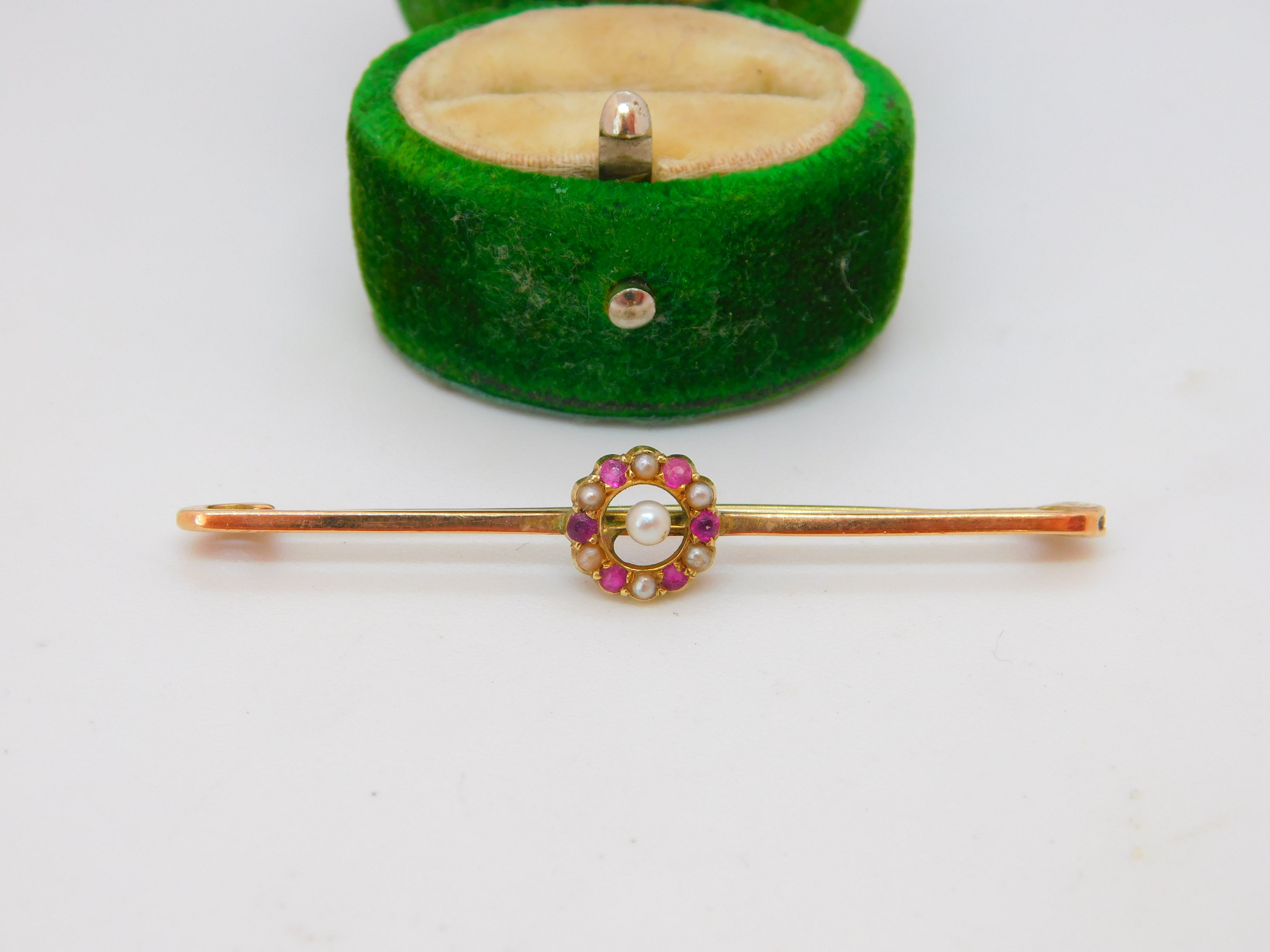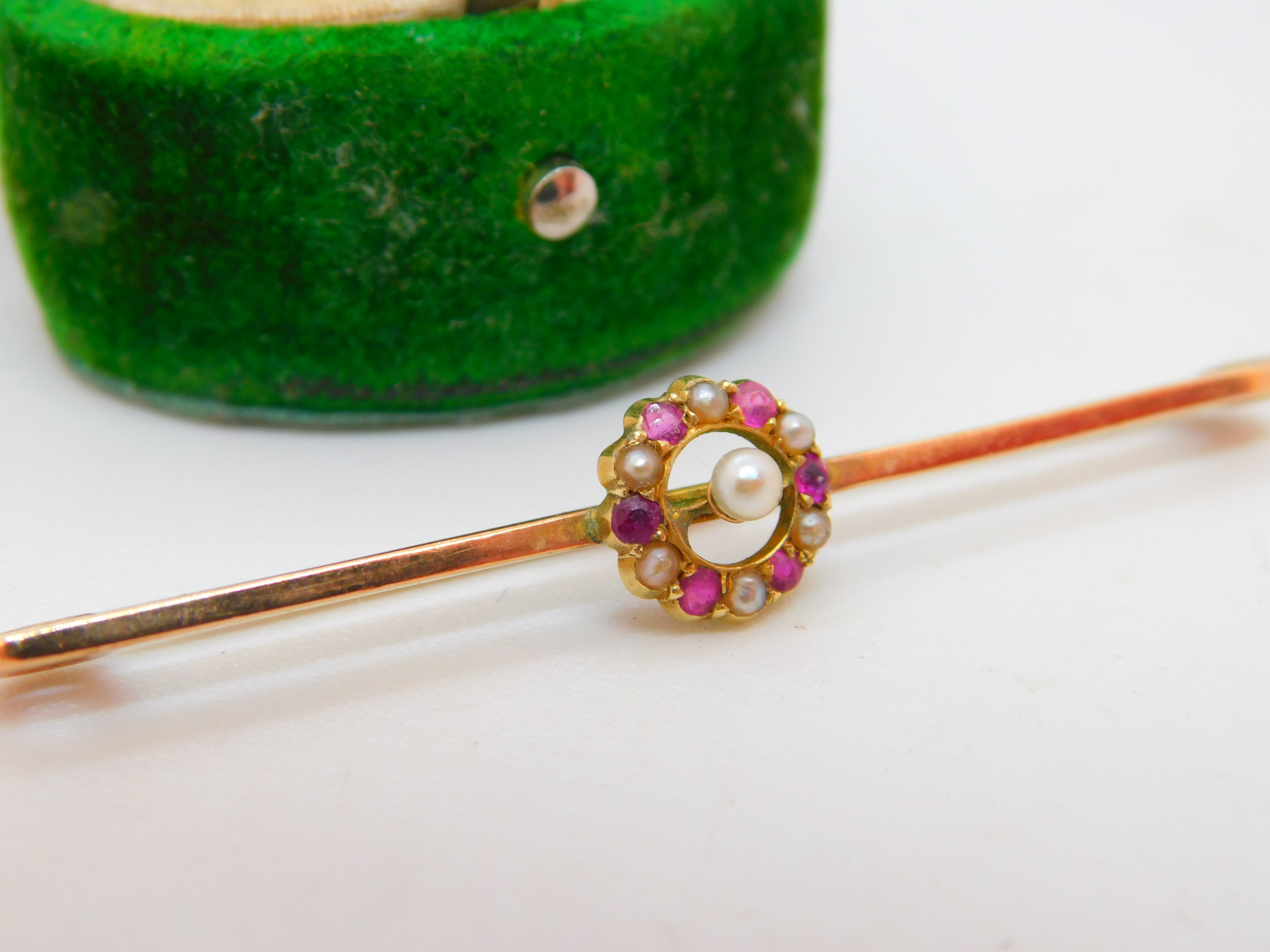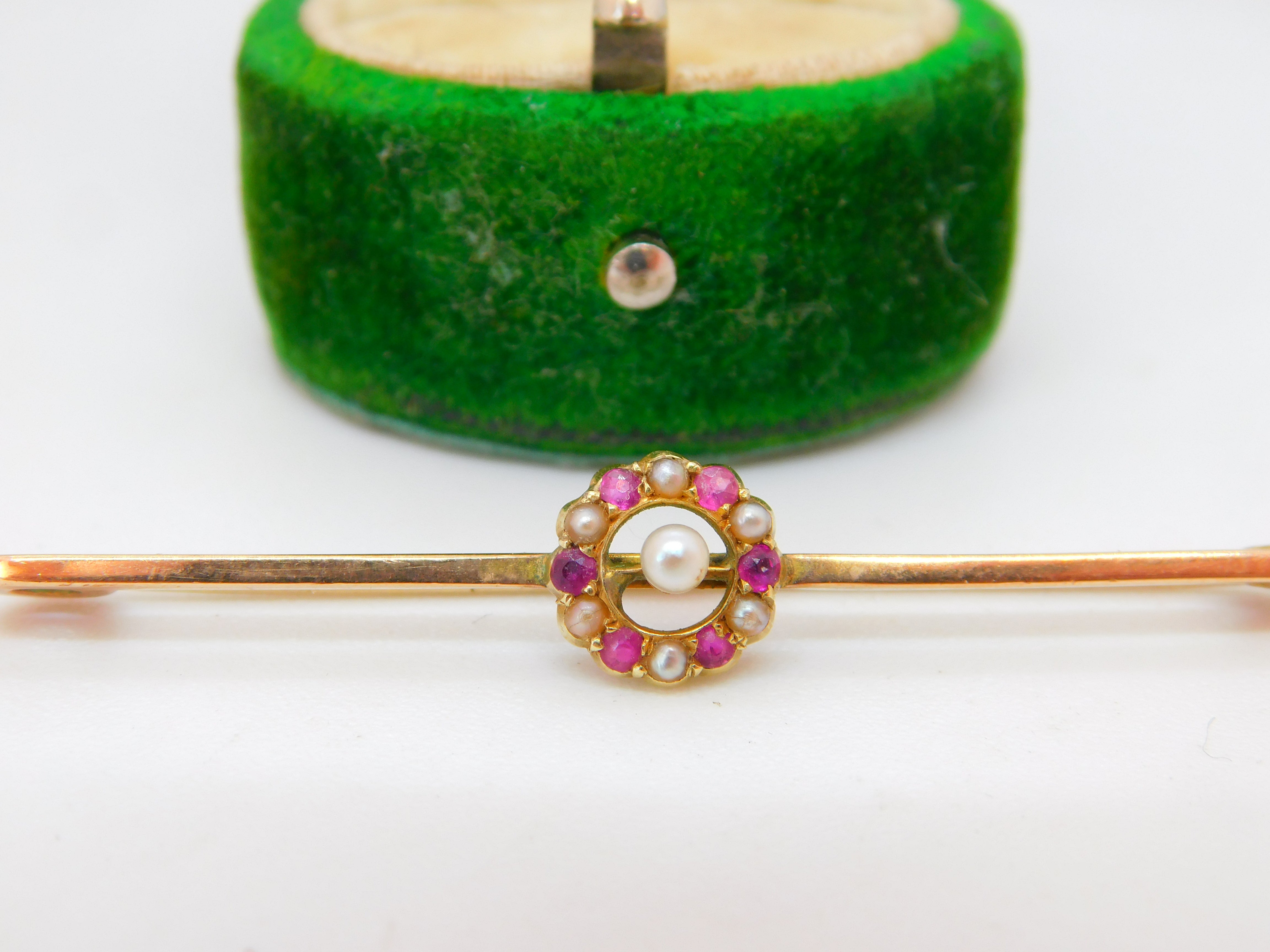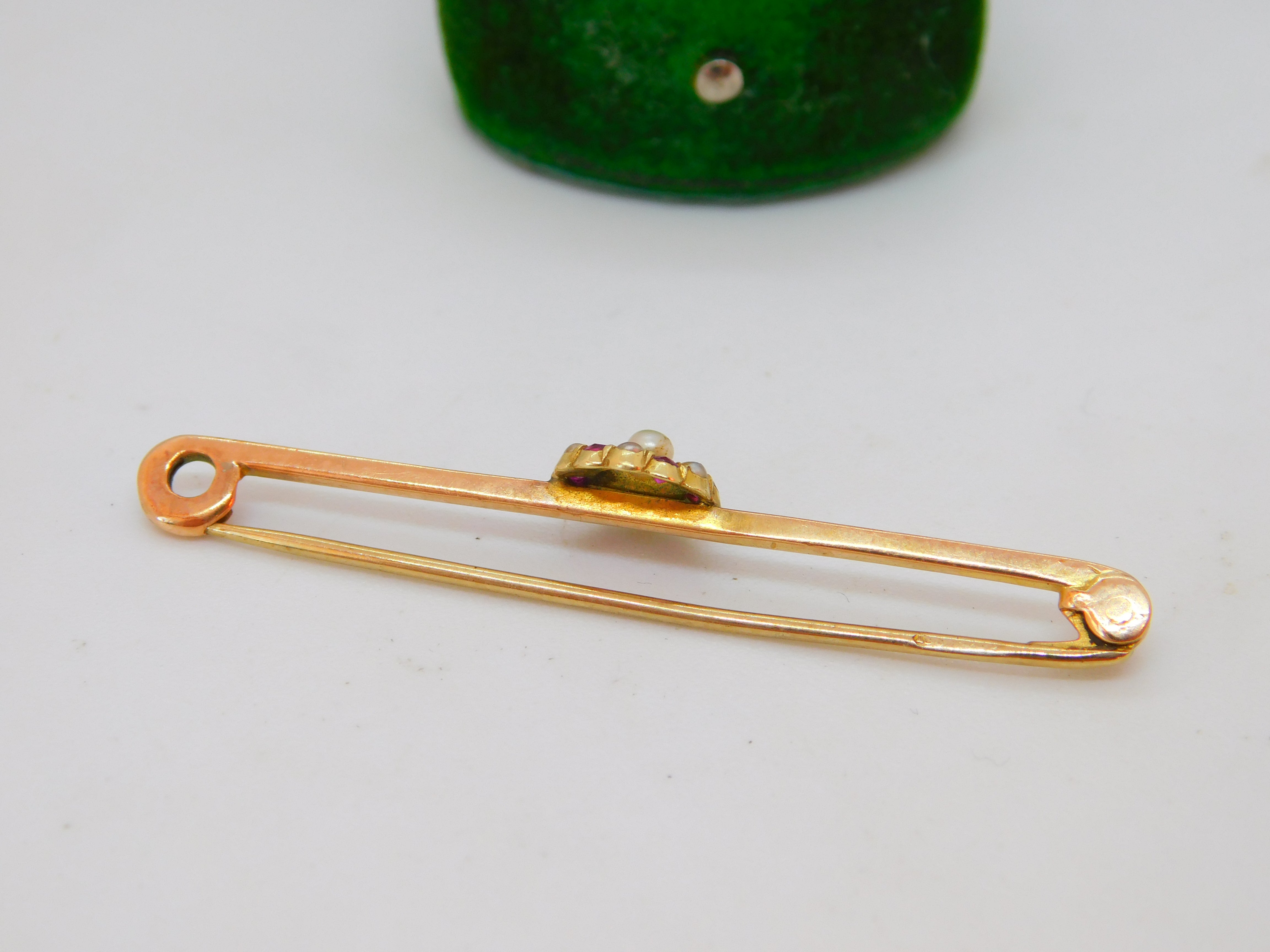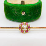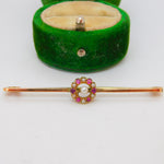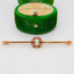 Edwardian 9ct Gold, Ruby & Seed Pearl Floral Dress Brooch Antique c1910