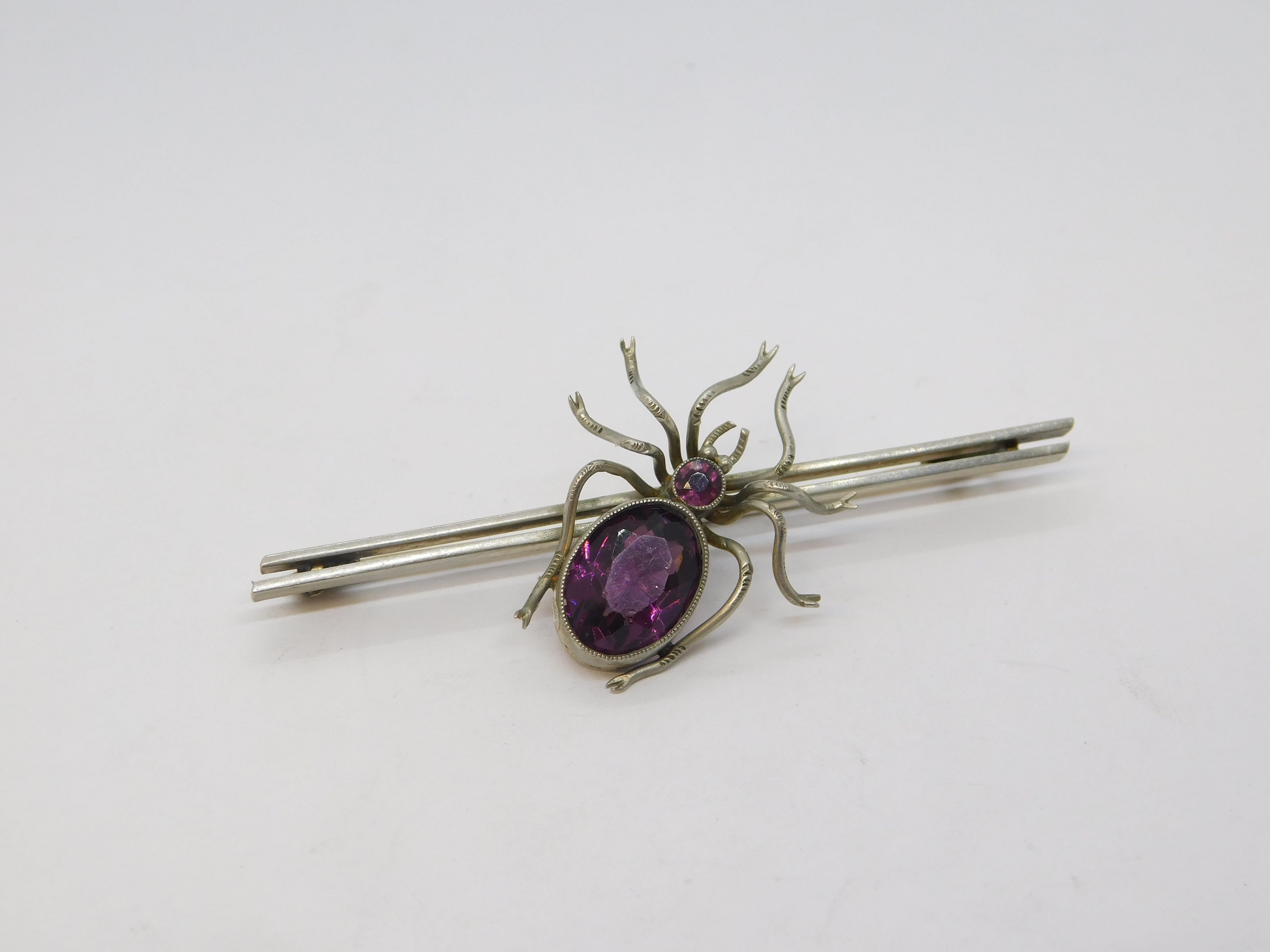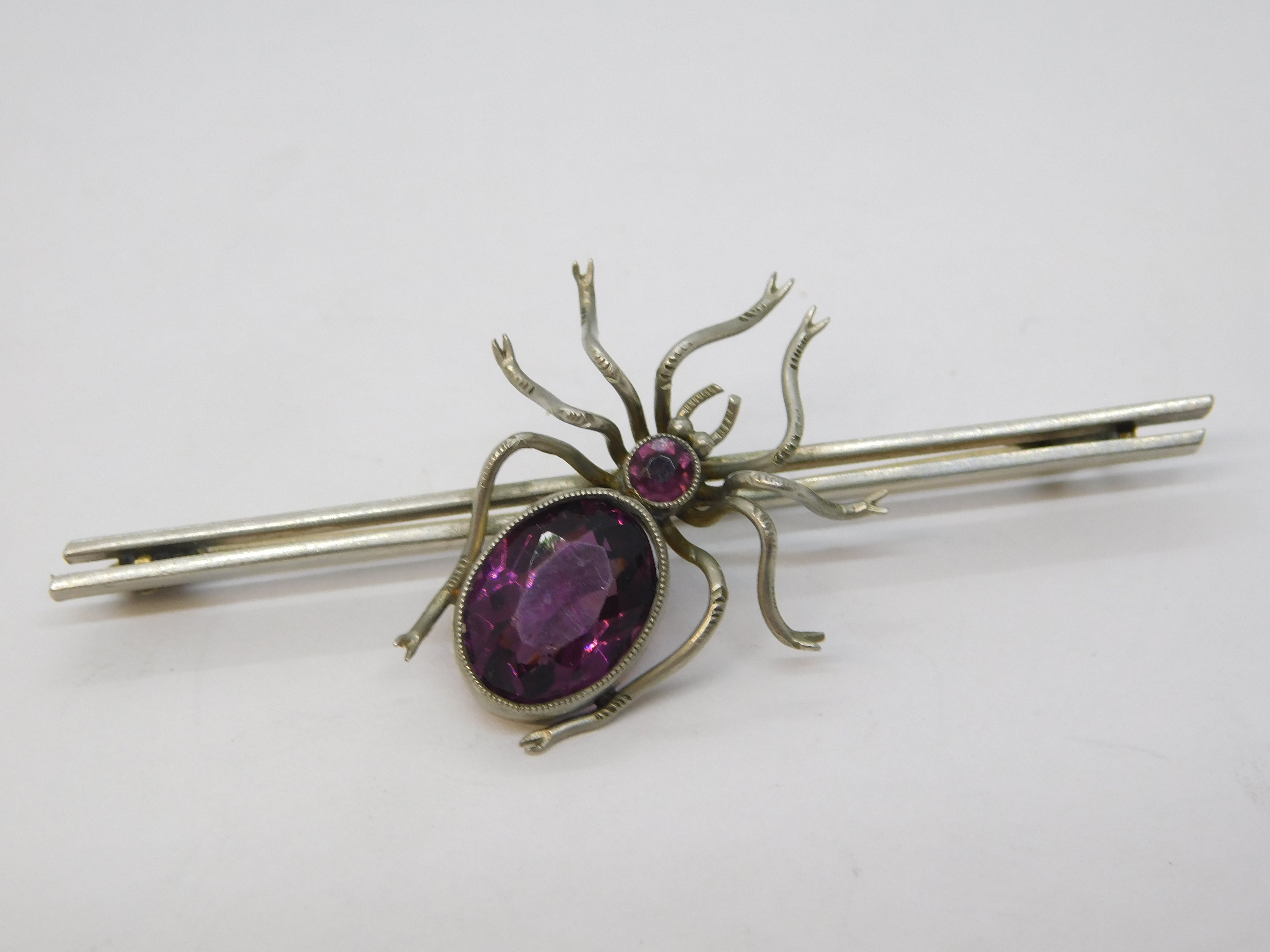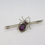 Edwardian Silver Plated Purple Paste Set Spider Insect Brooch Antique c1910