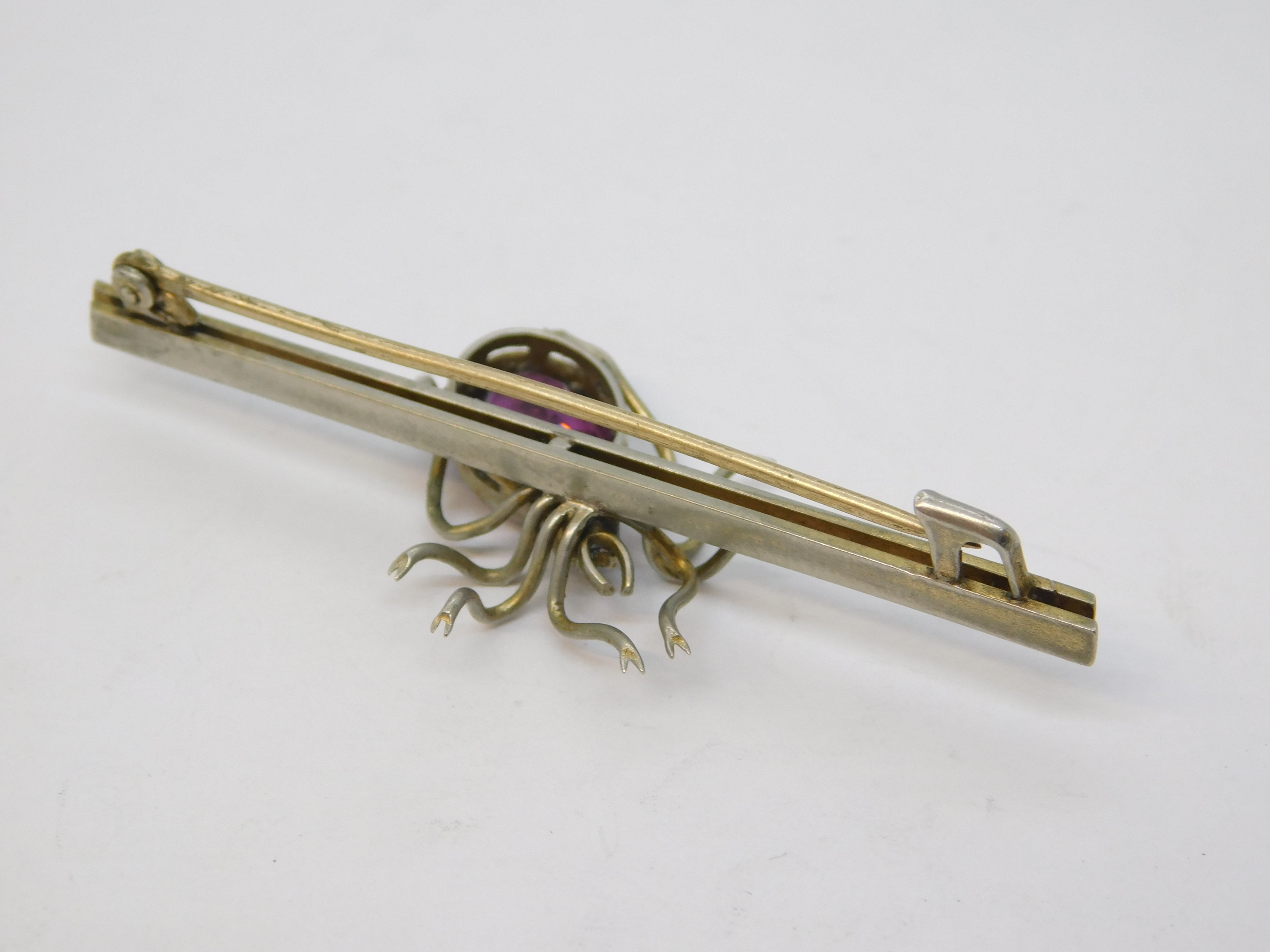 Details: A fantastic and wonderfully designed antique Edwardian silver plated purple paste set spider insect brooch with lovely detailing c1910. This is a wonderful item that would make a perfect gift or addition to any collection. We are more than happy to provide XRF reports for items upon request.