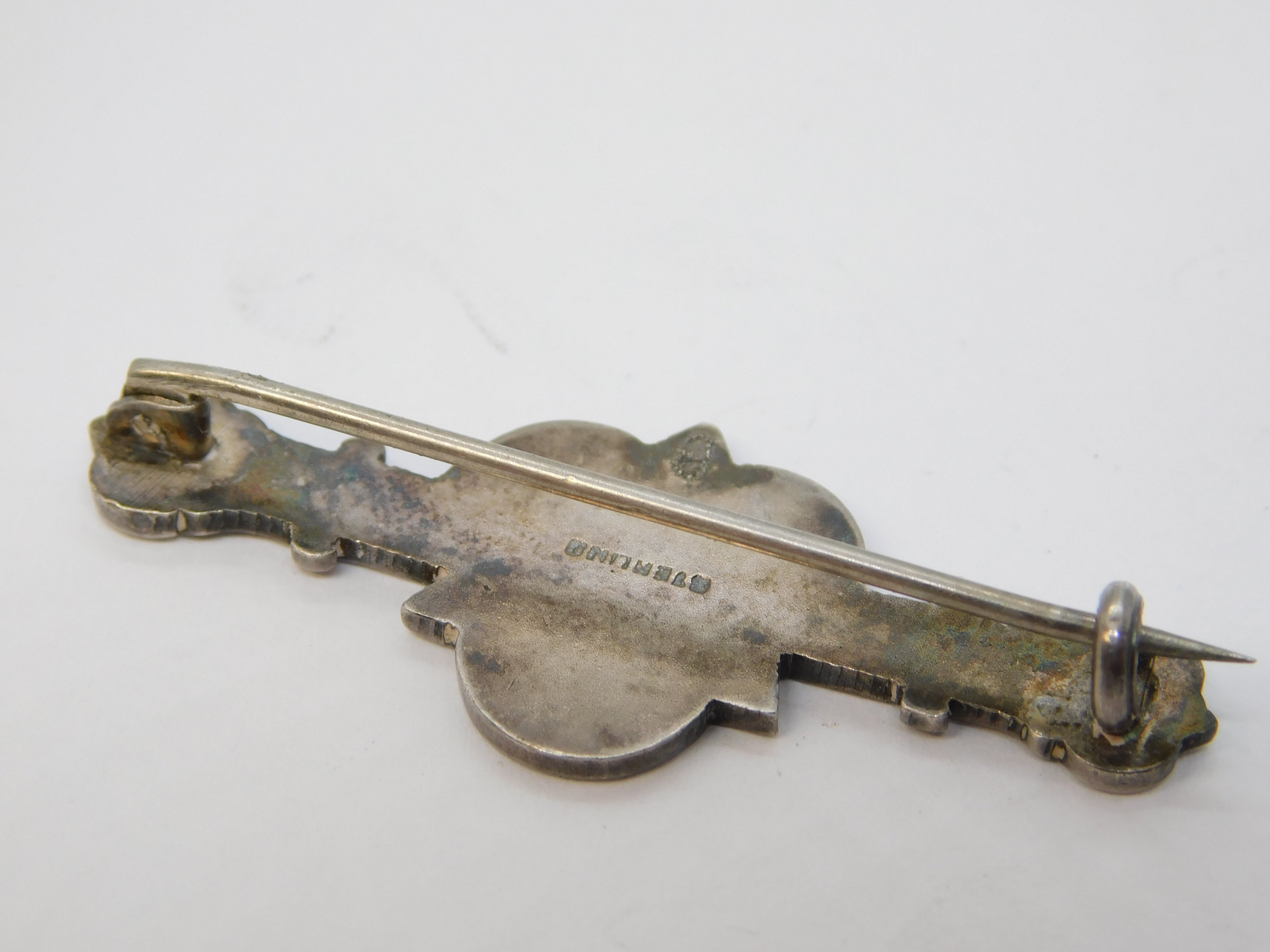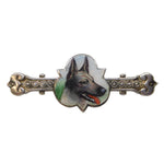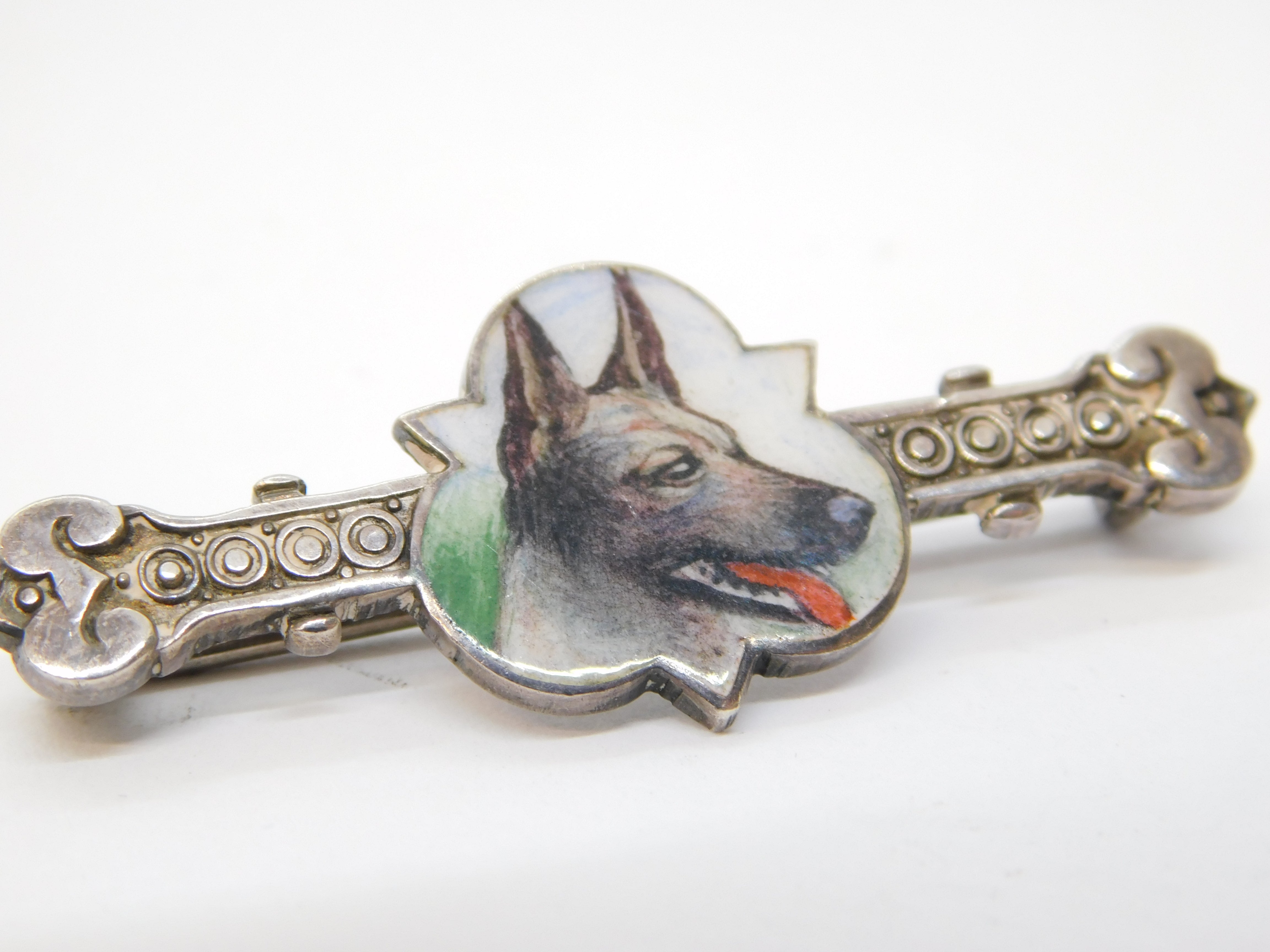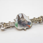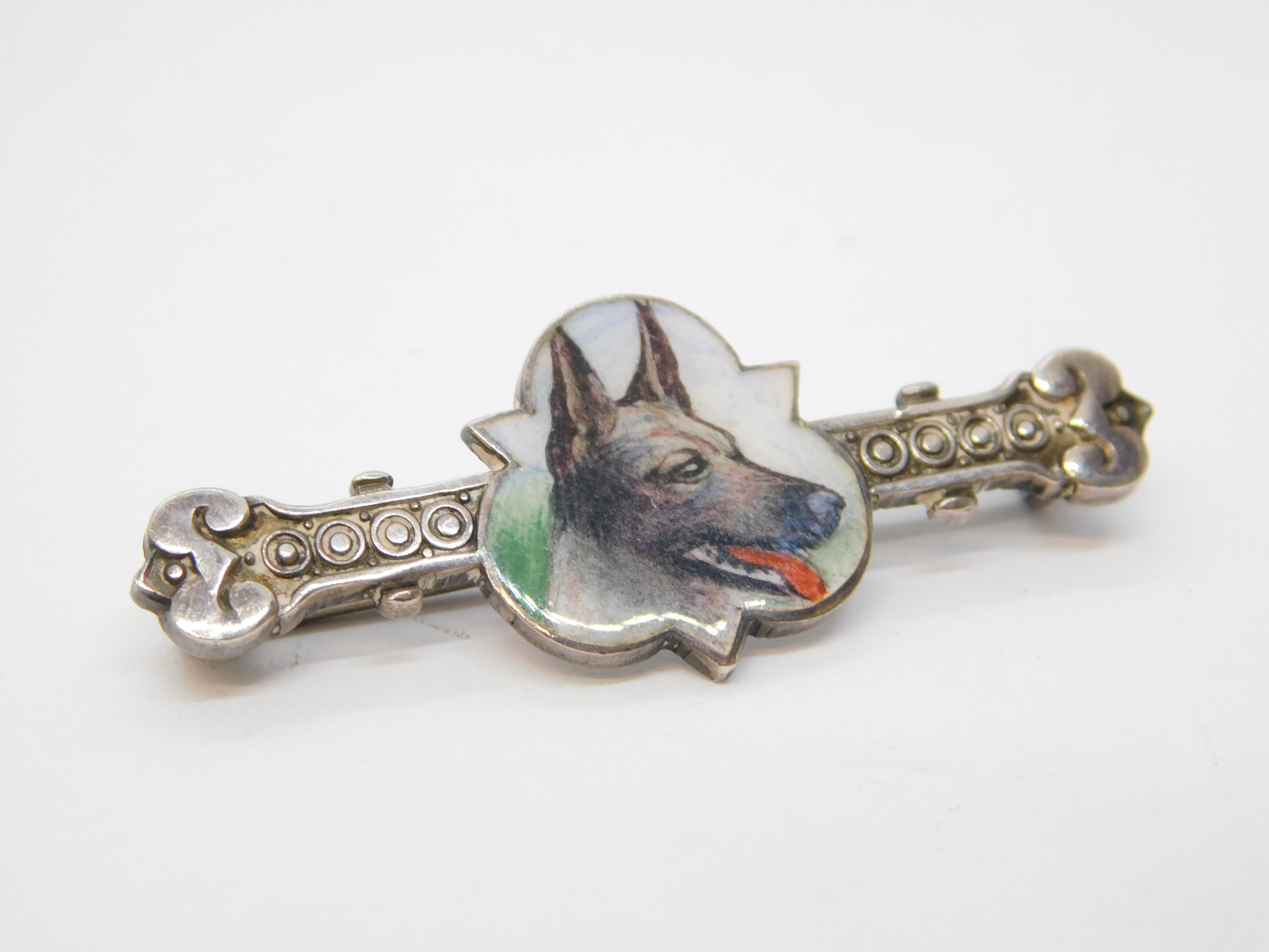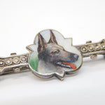 Edwardian Sterling Silver Enamel German Shepherd Bone Shaped Brooch Antique c1910