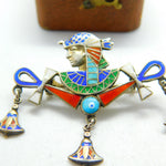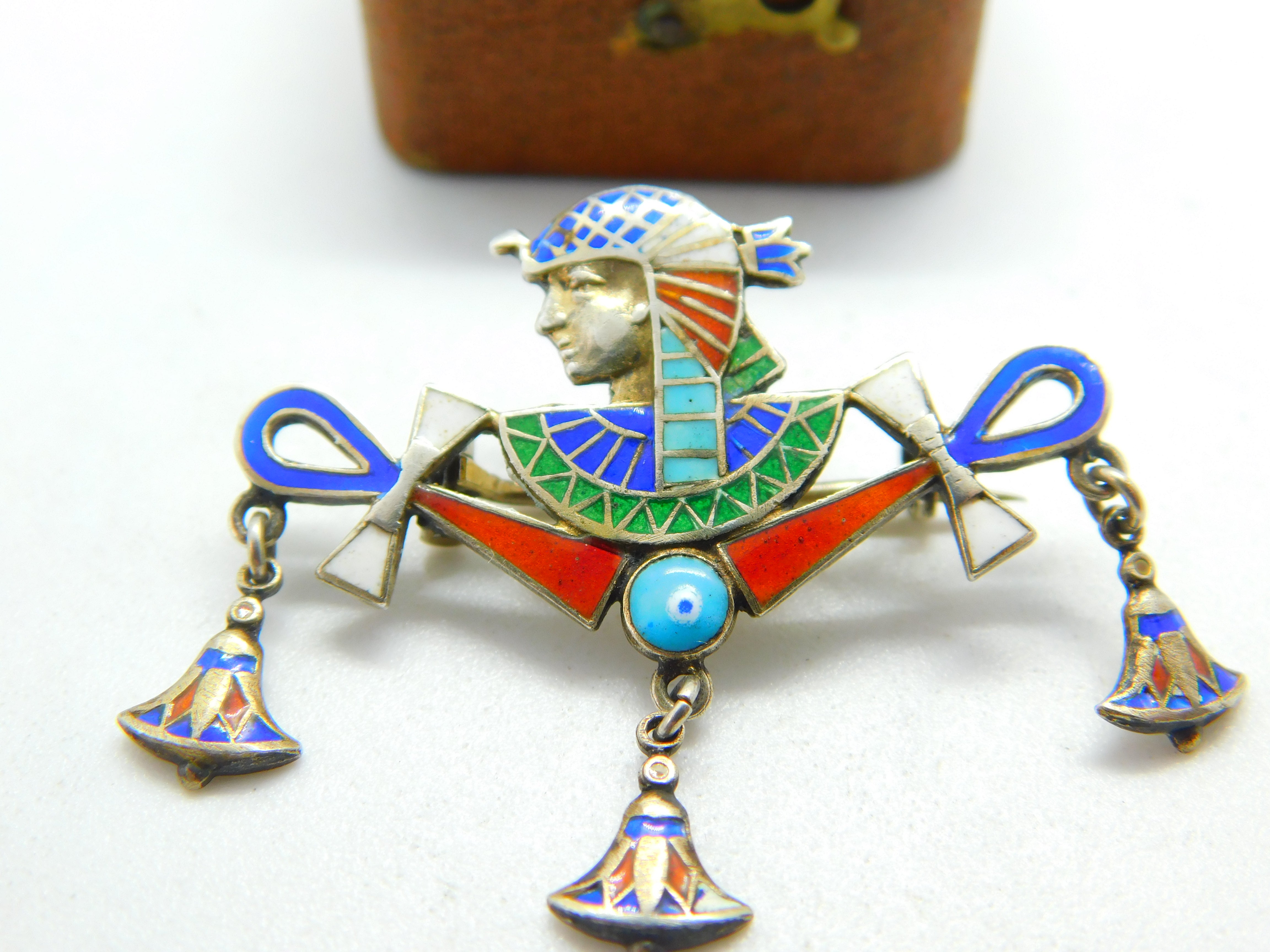Details: A fantastic and wonderfully designed antique Victorian Egyptian sterling silver & colourful enamel pharaoh and ankh souvenir brooch marked to the reverse c1900. Perfect enamel and wonderful detail. This is a wonderful item that would make a perfect gift or addition to any collection. The BOX pictured is for PRESENTATION ONLY and is NOT included in the listings but used to frame the pictures unless specifically stated otherwise.