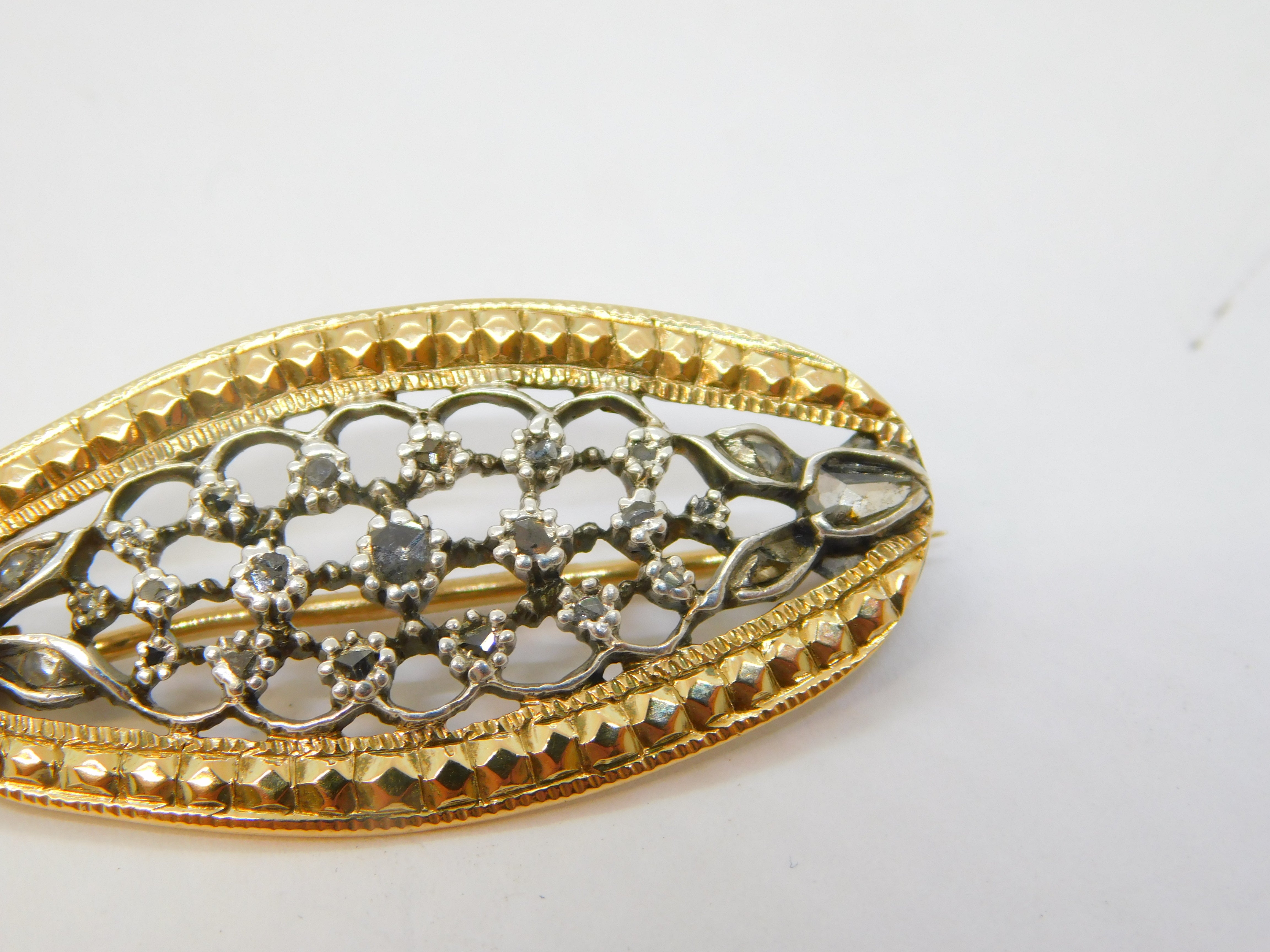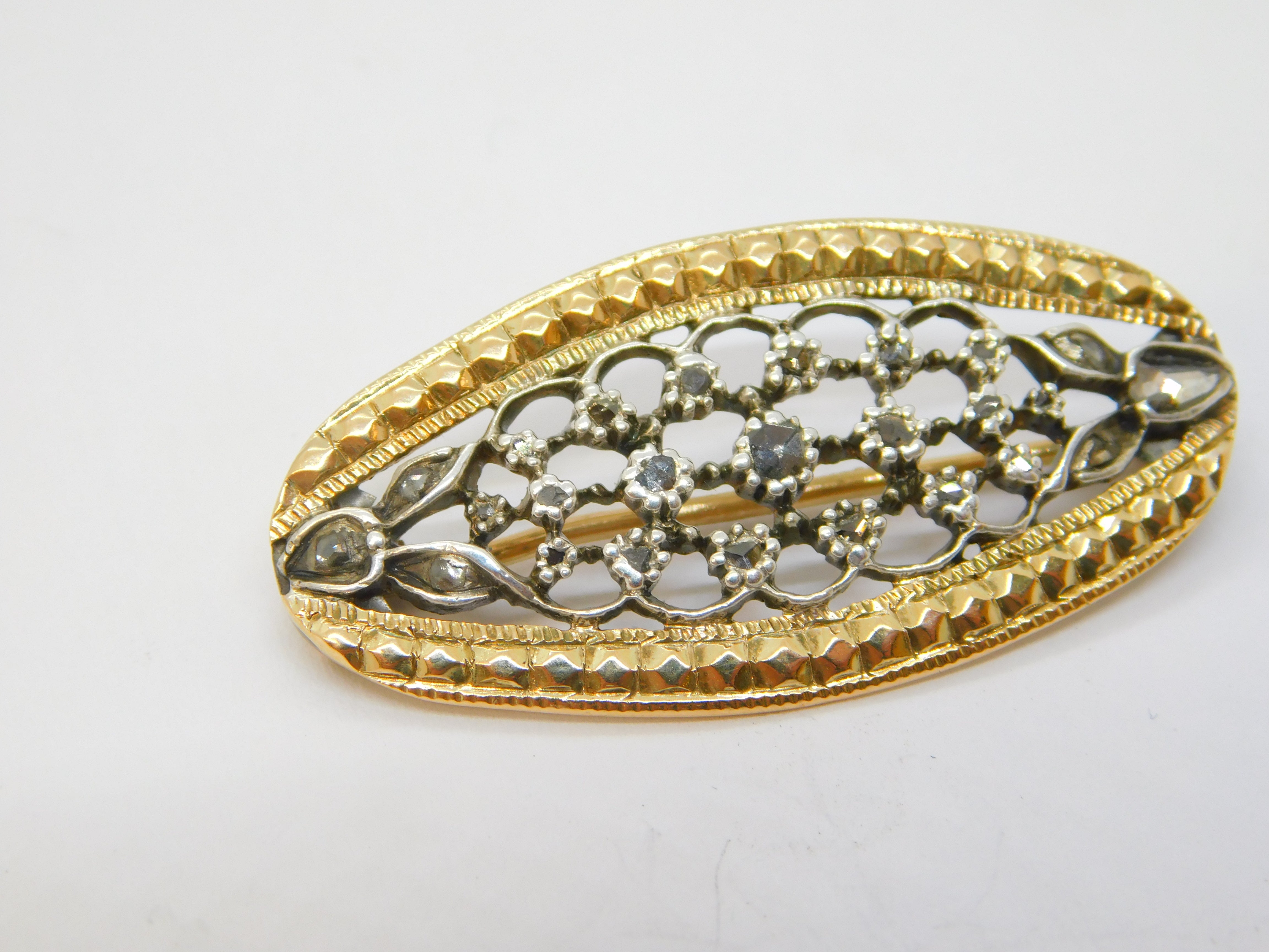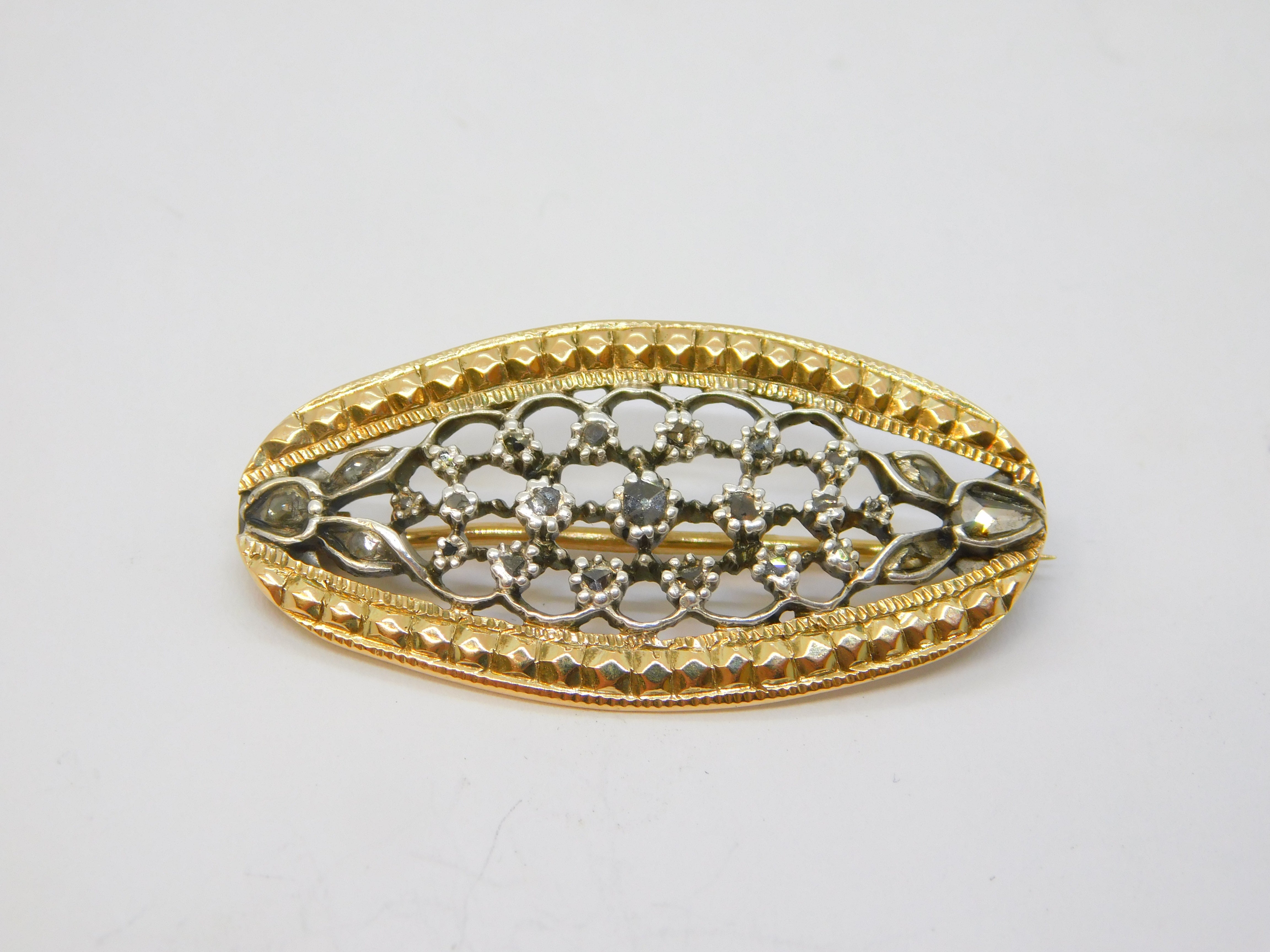 George III 9ct Gold, Sterling Silver, Old-Cut Diamond Brooch Antique c1800