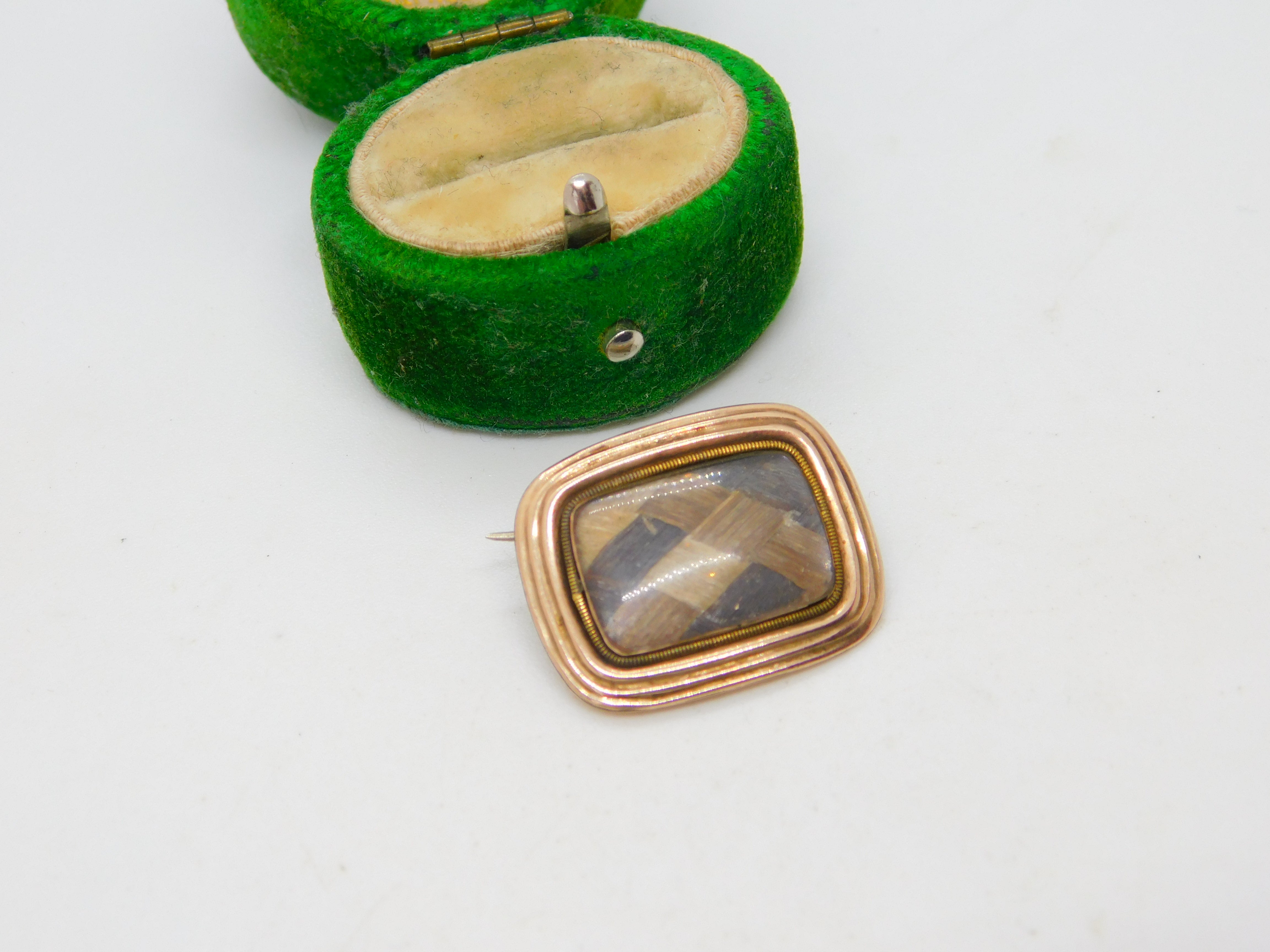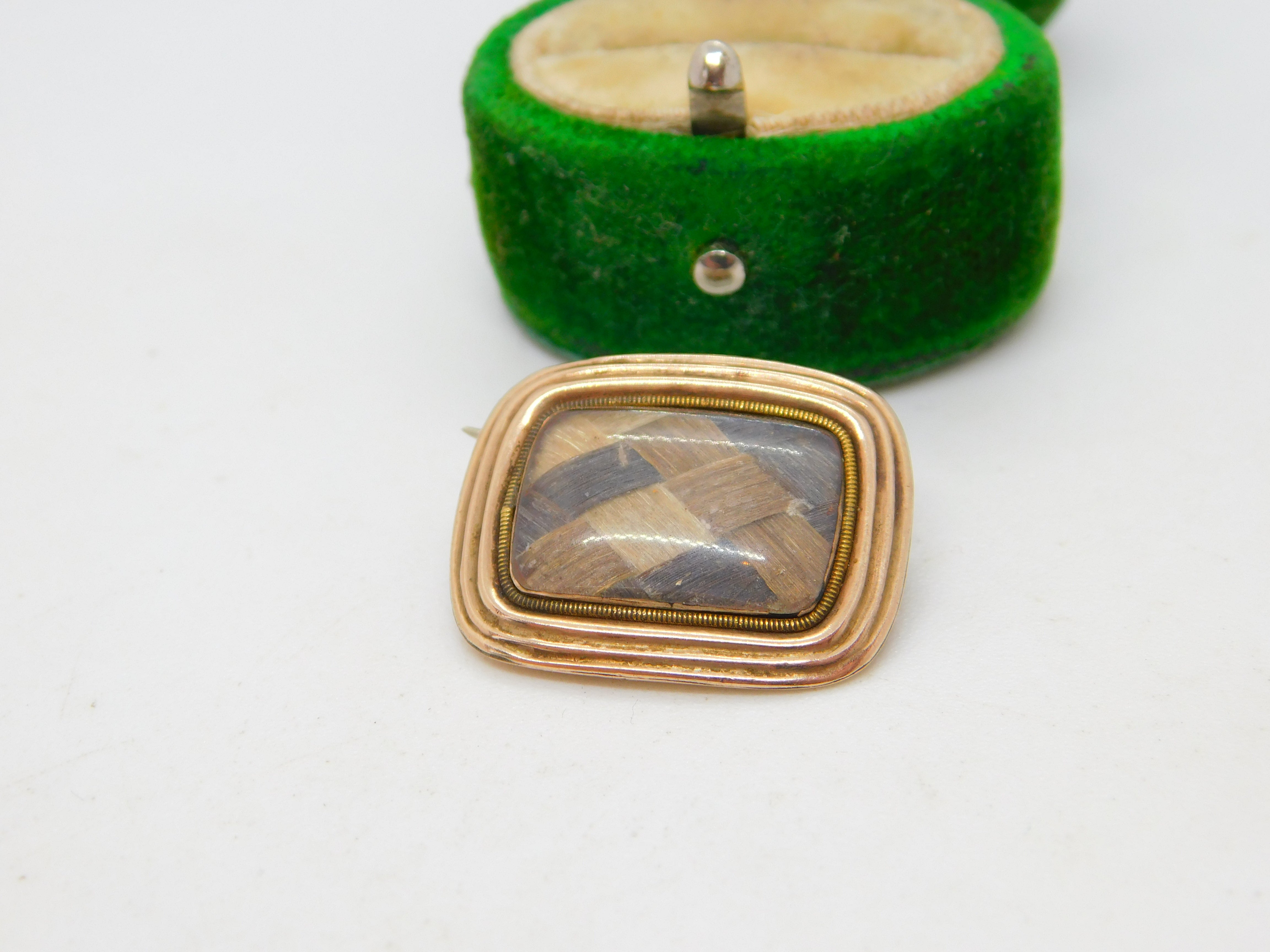 George III 9ct Gold & Woven Hair Set Mourning Brooch Antique c1820