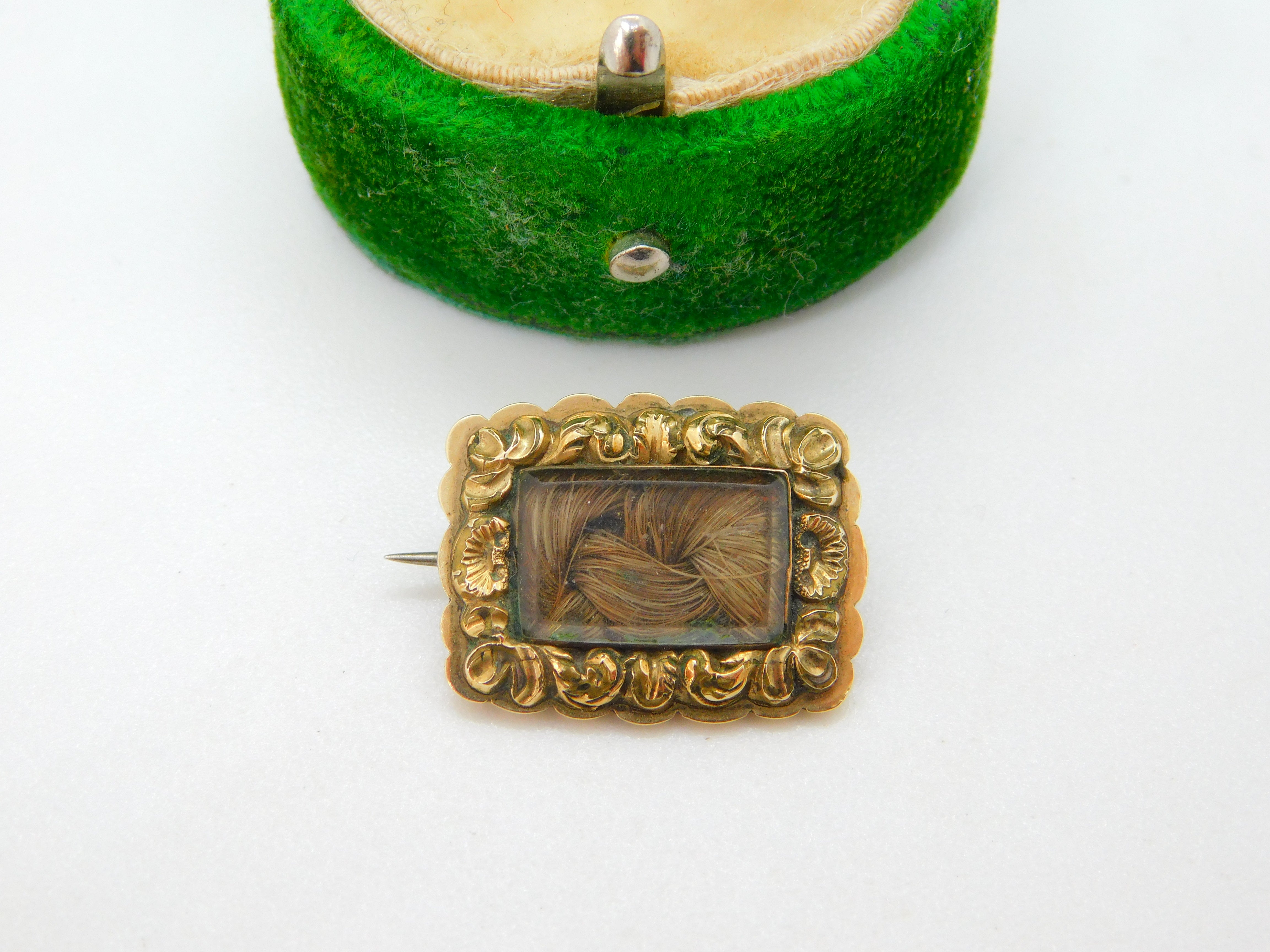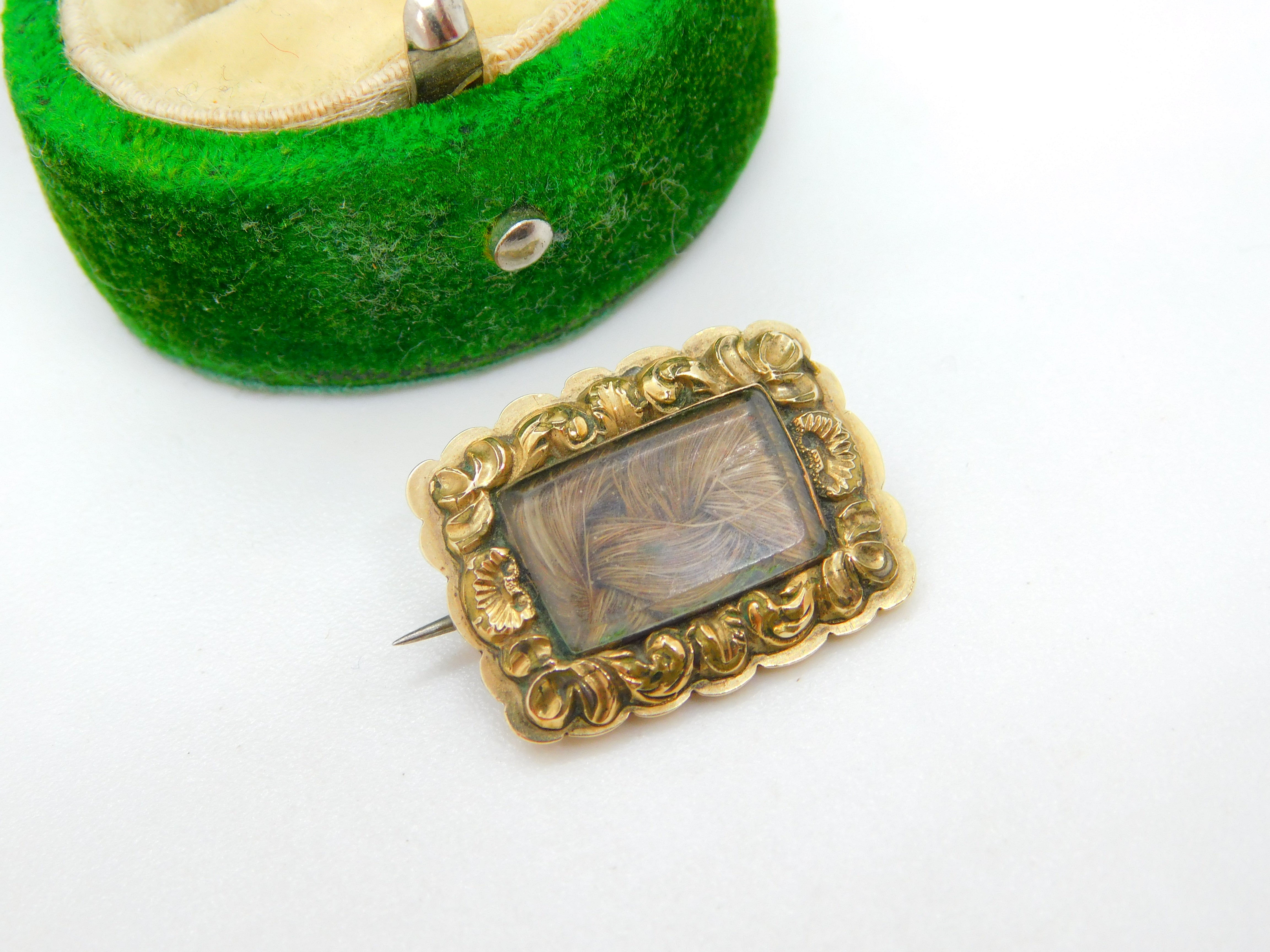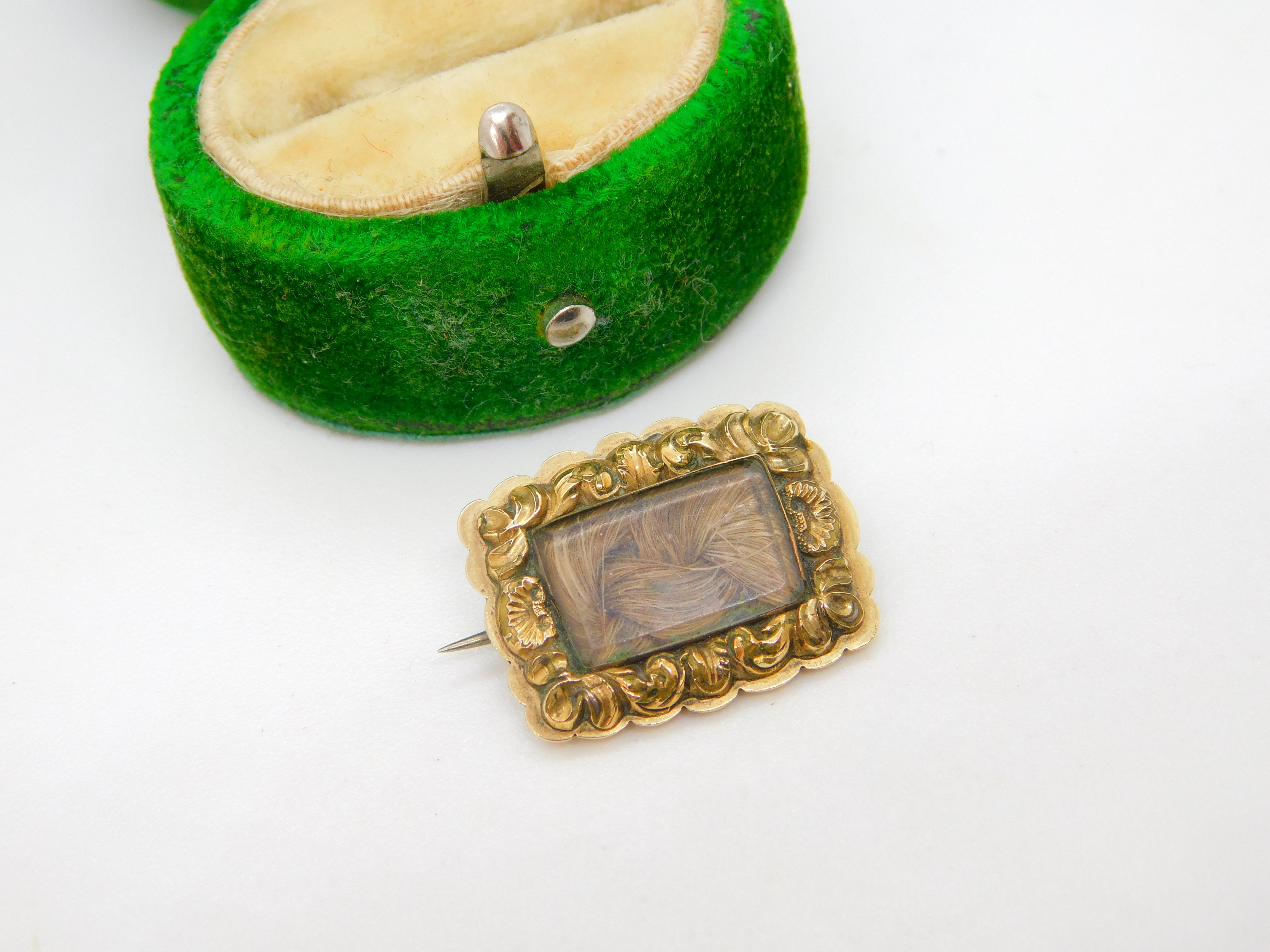 George III 9ct Yellow Gold Woven Hair Set Mourning Brooch Antique c1820