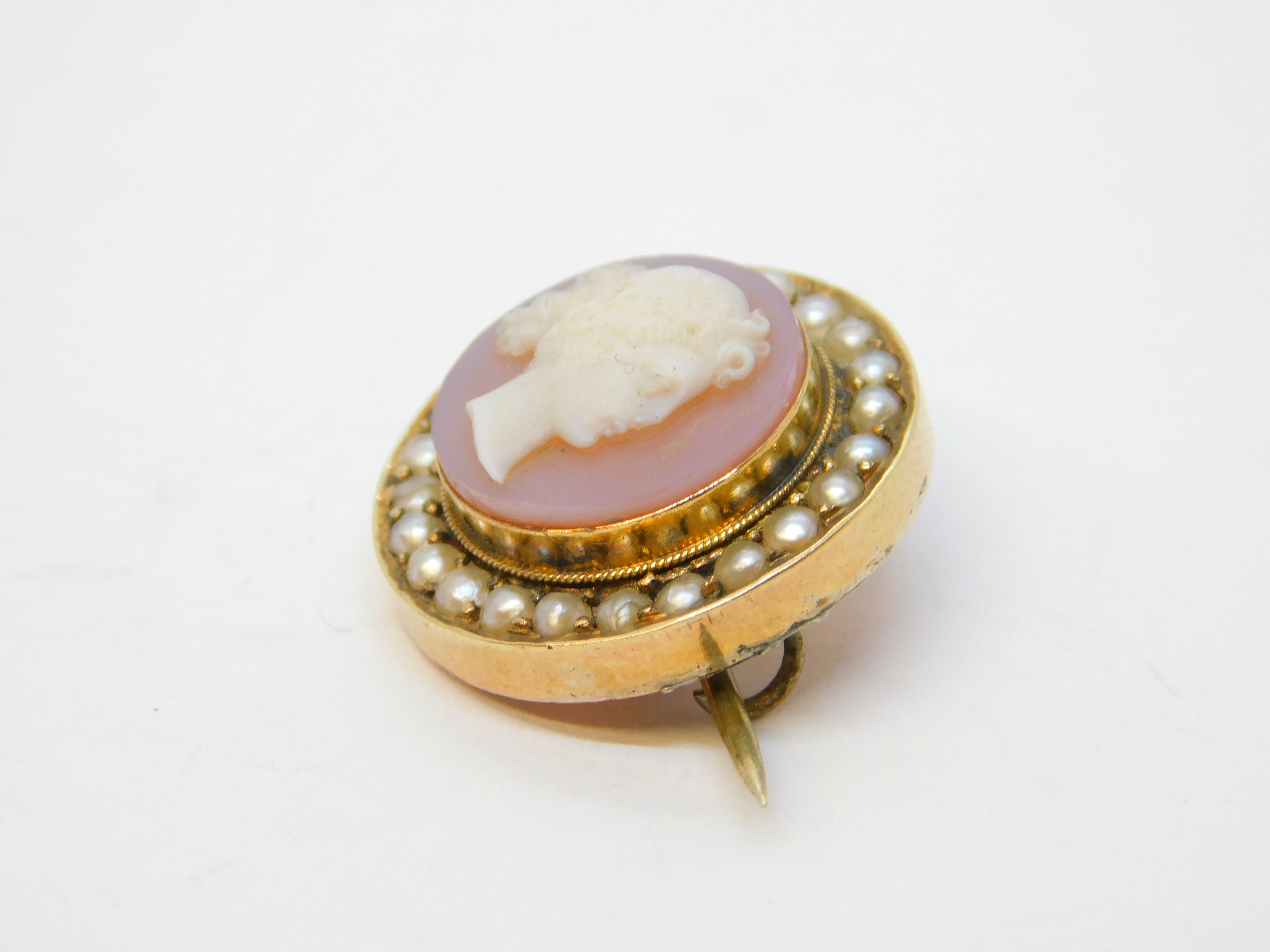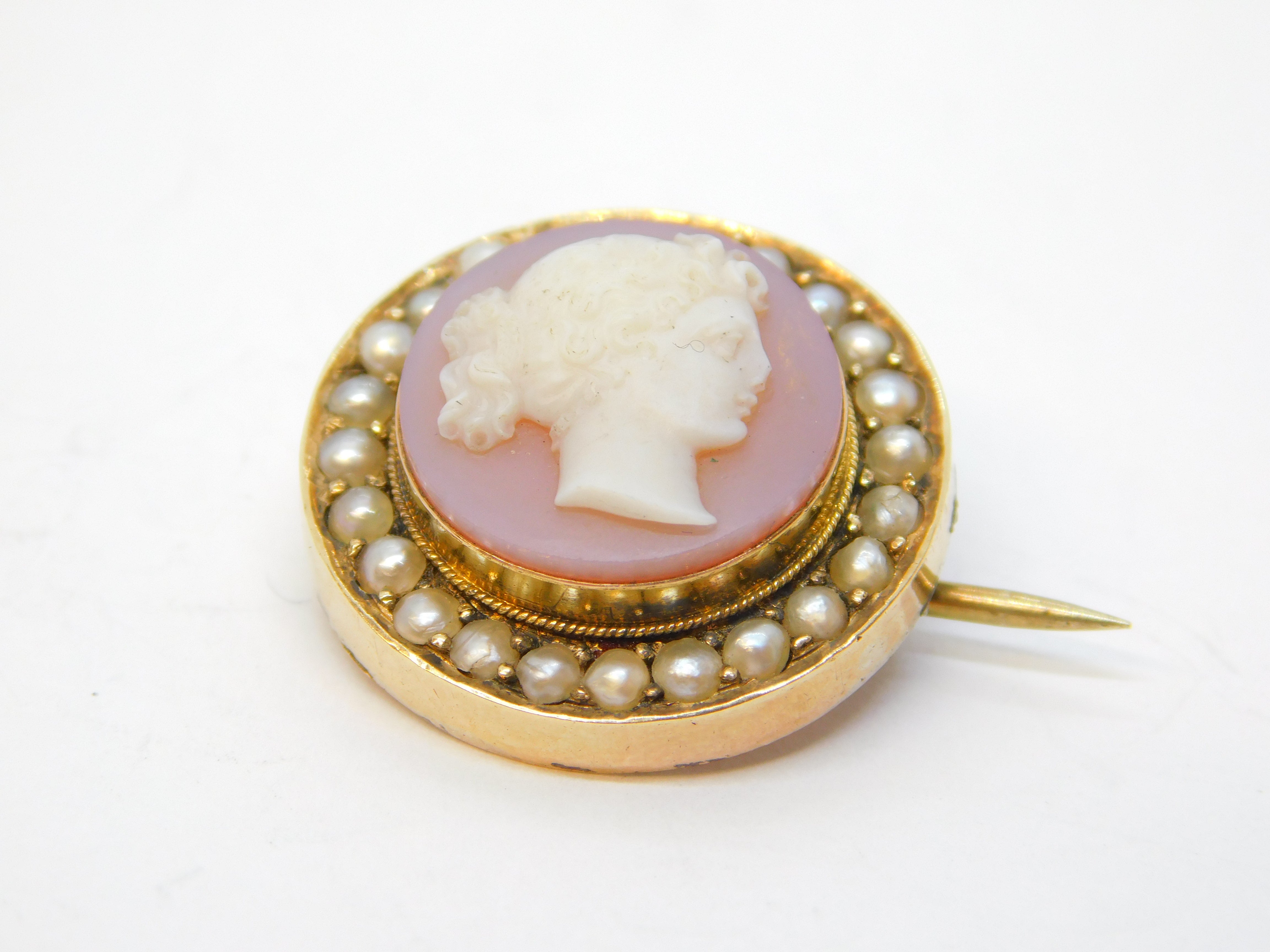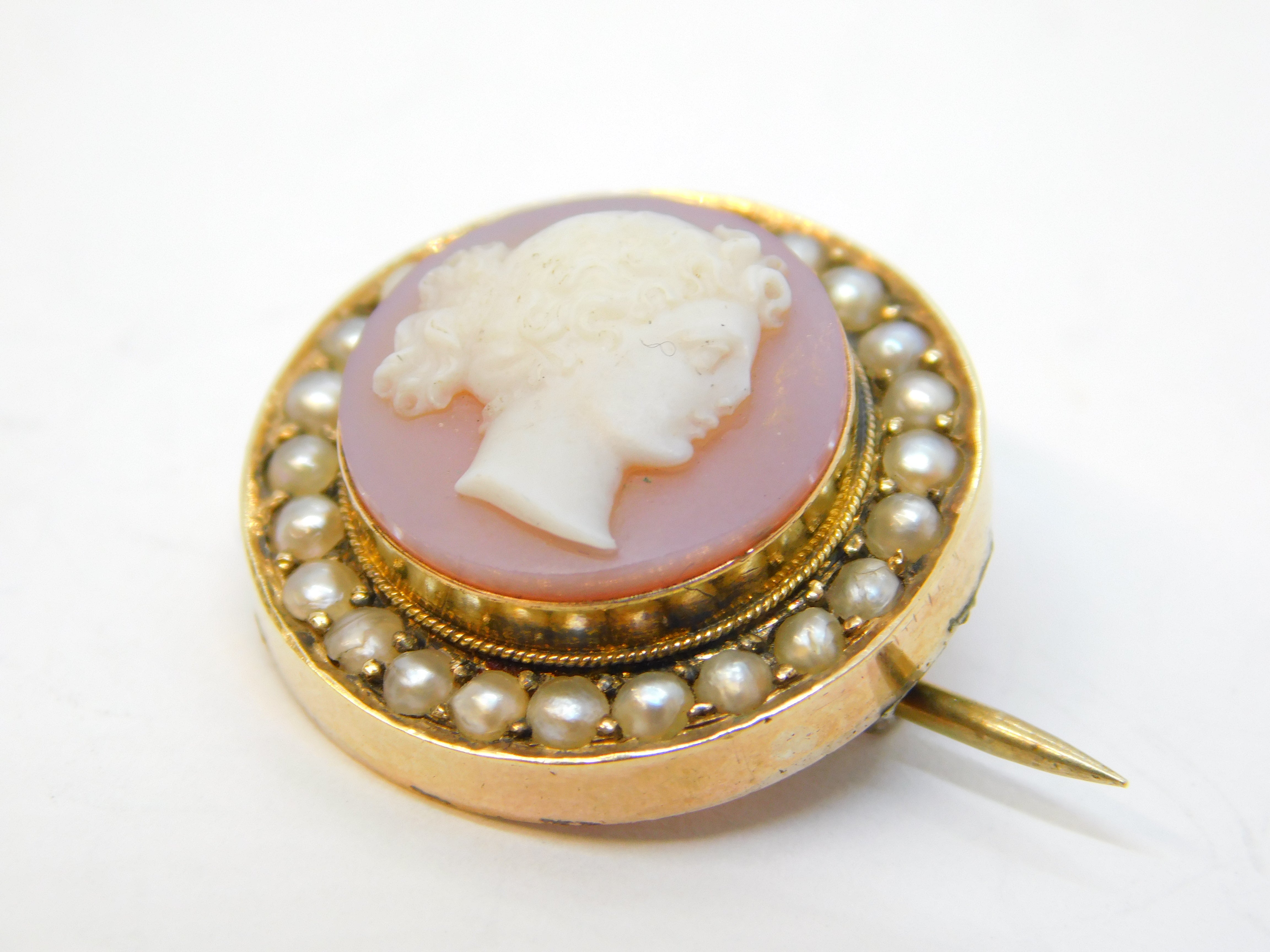Georgian 9ct Gold, Pearl, Carved Sardonyx Cameo Brooch Pin Antique c1820