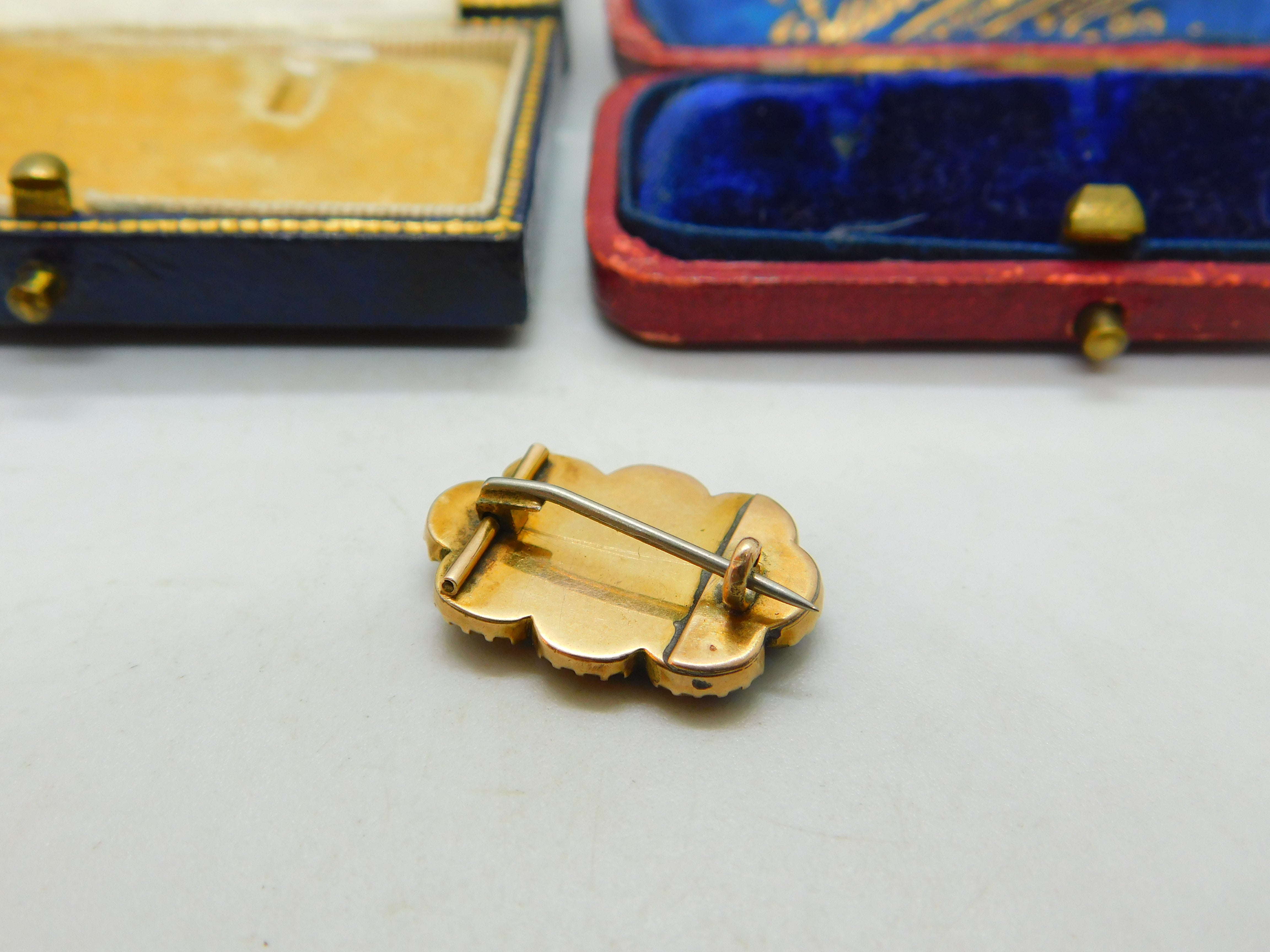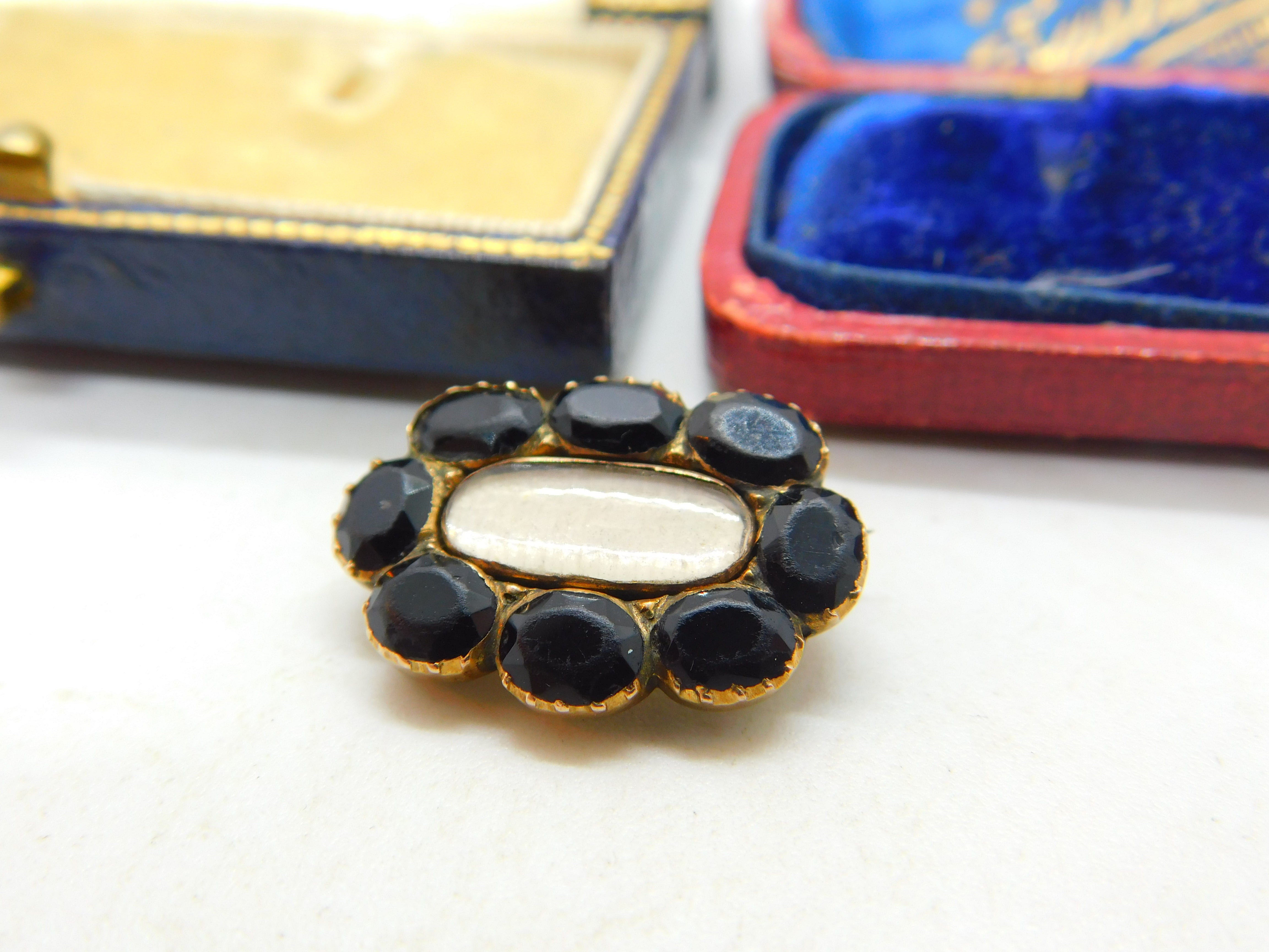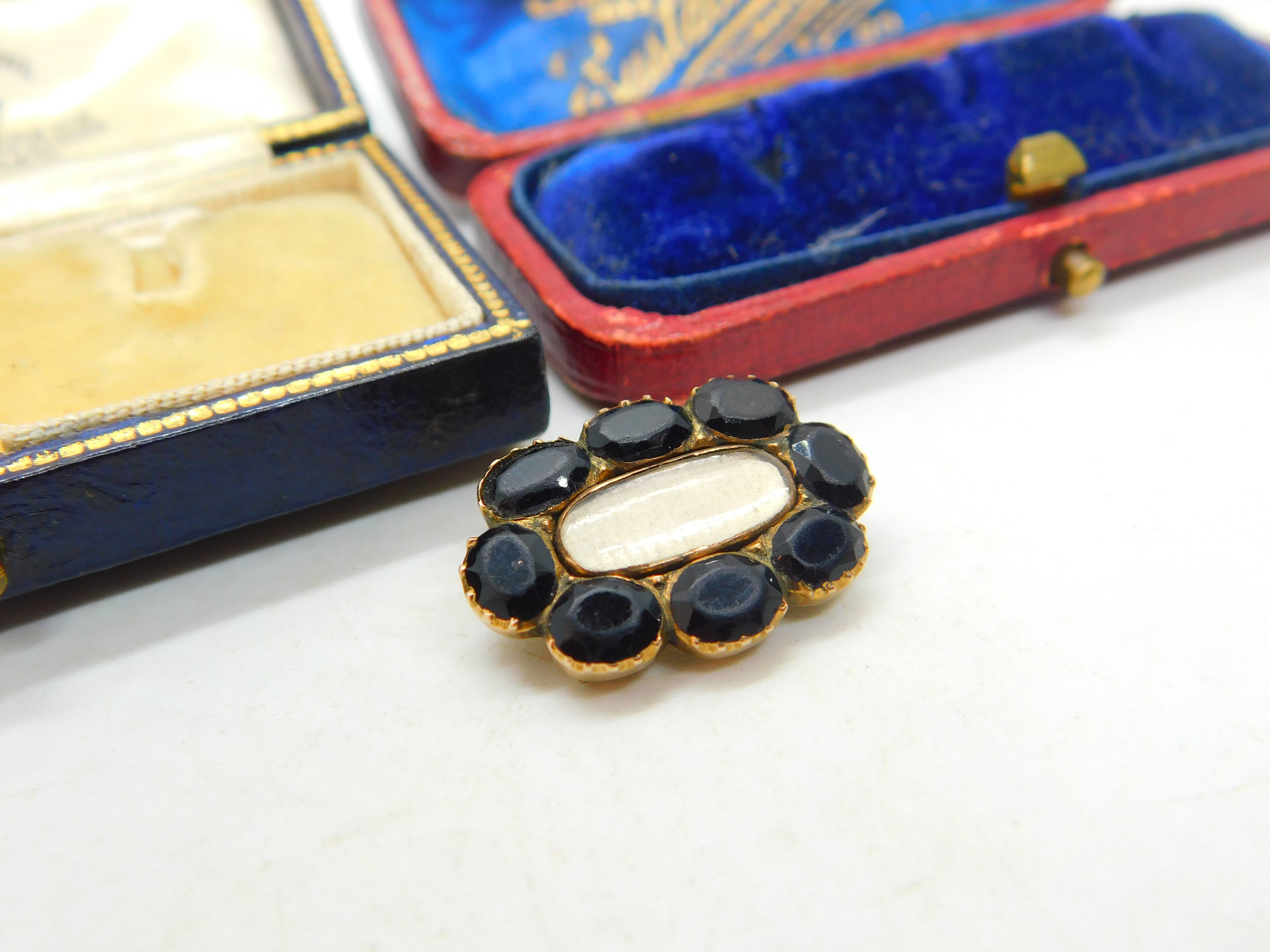 Georgian 9ct Rose Gold & Black Glass Mourning Brooch Antique c1820
