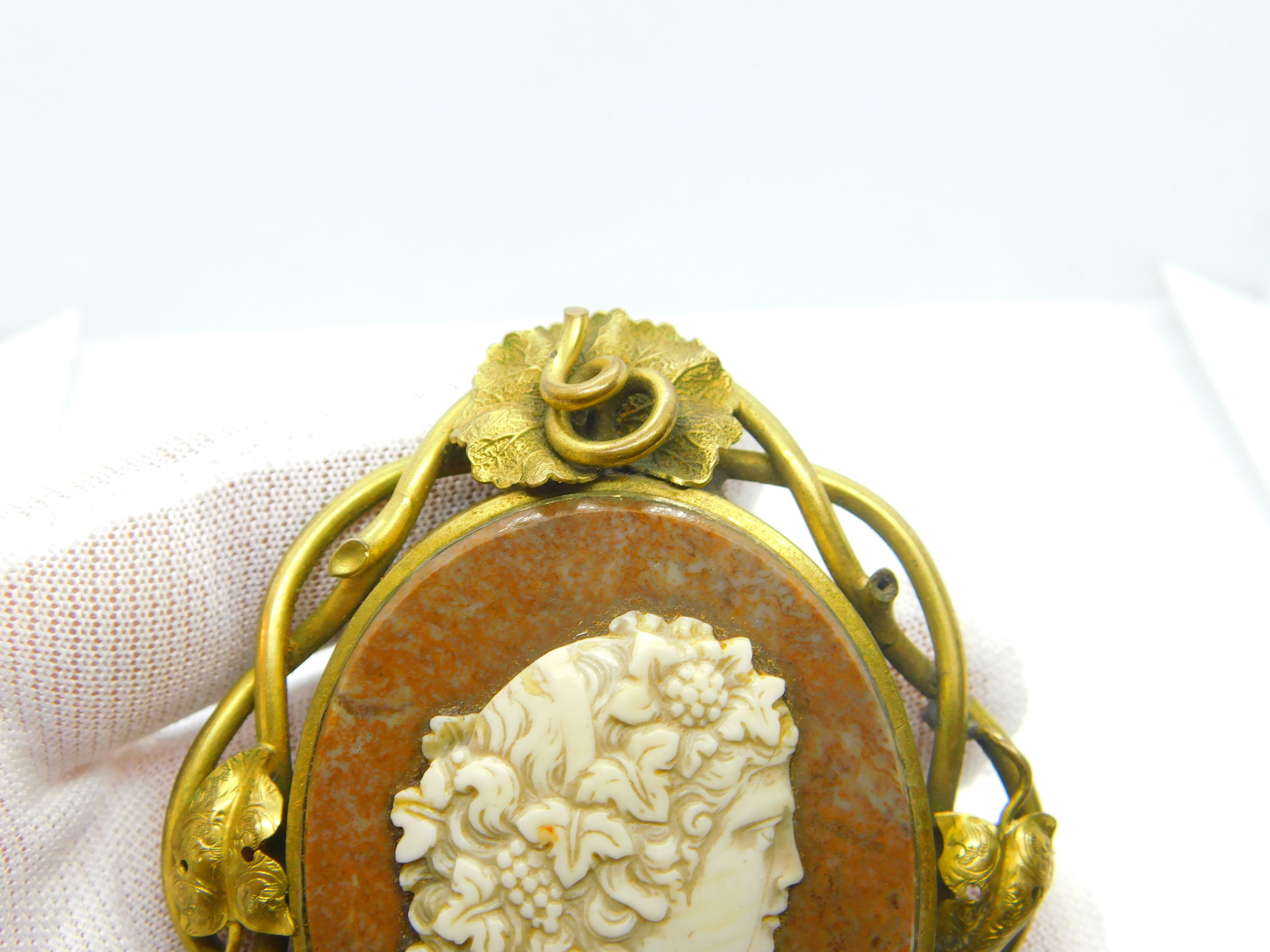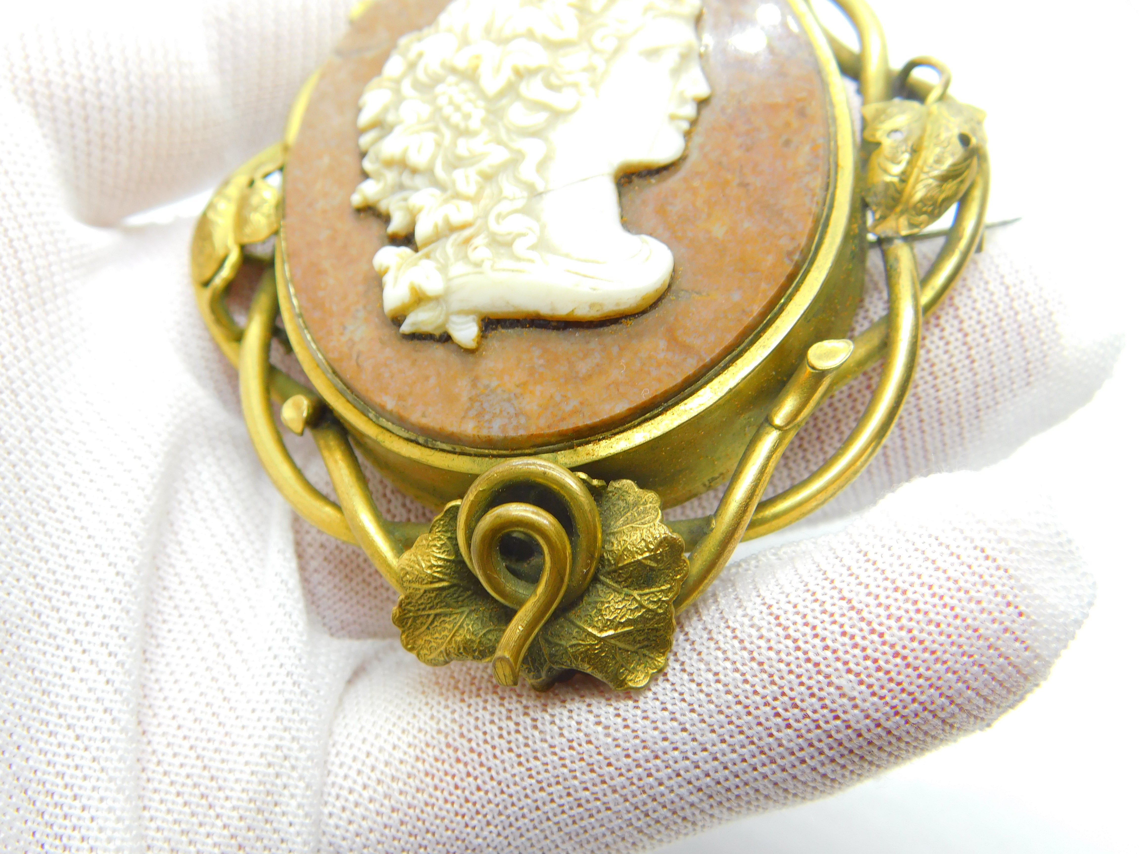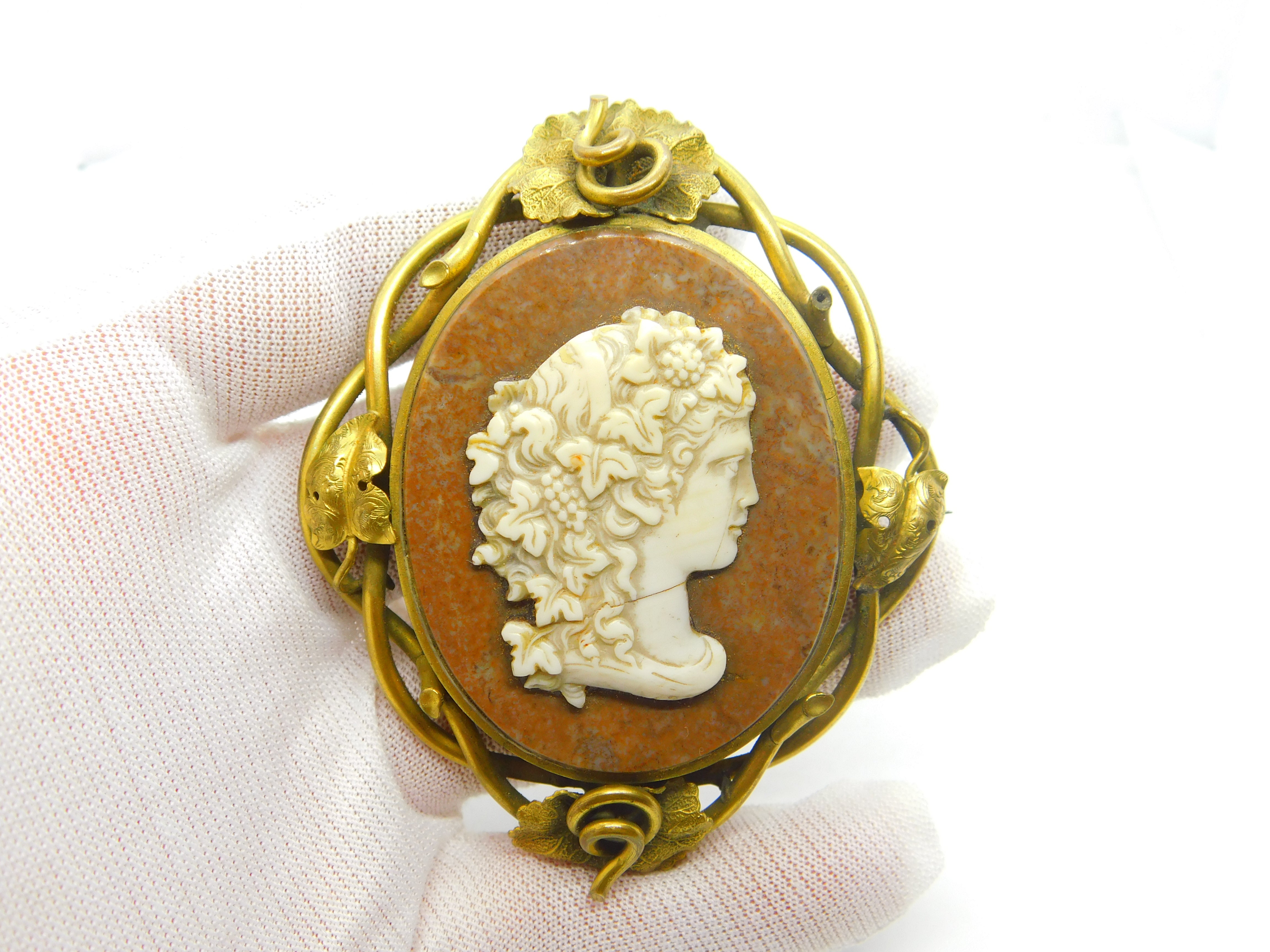 Details: A fantastic and wonderfully designed antique Georgian grand tour period large floral rolled gold mourning brooch with red hardstone and a carved white marble classical cameo c1820. The brooch is oversized and has a large locket to the reverse for hair or pictures. Minor hairline crack through the cameo - superb floral decoration. This is a wonderful item that would make a perfect gift or addition to any collection. The BOX pictured is for PRESENTATION ONLY and is NOT included in the listings but used to frame the pictures unless specifically stated otherwise.