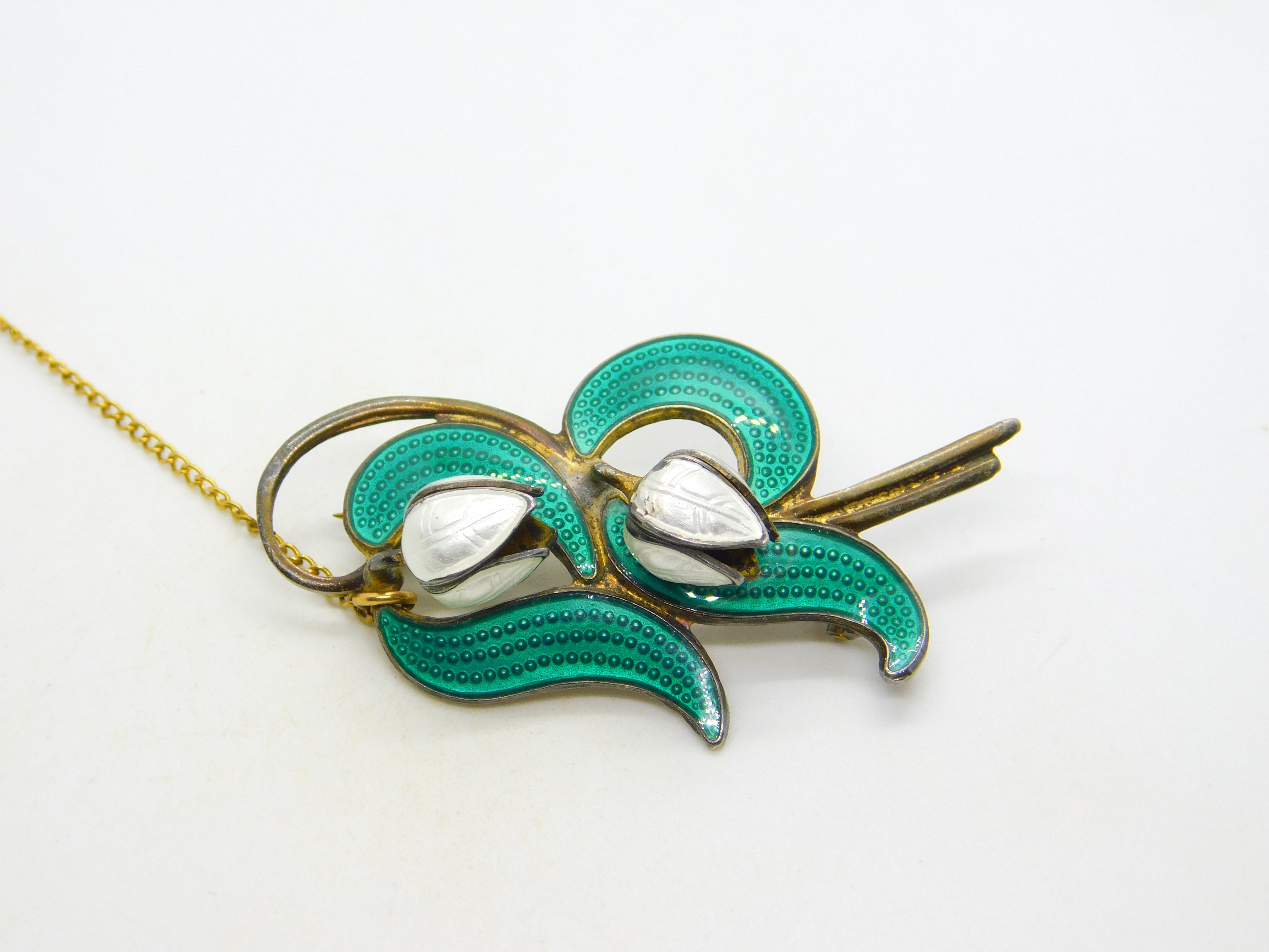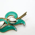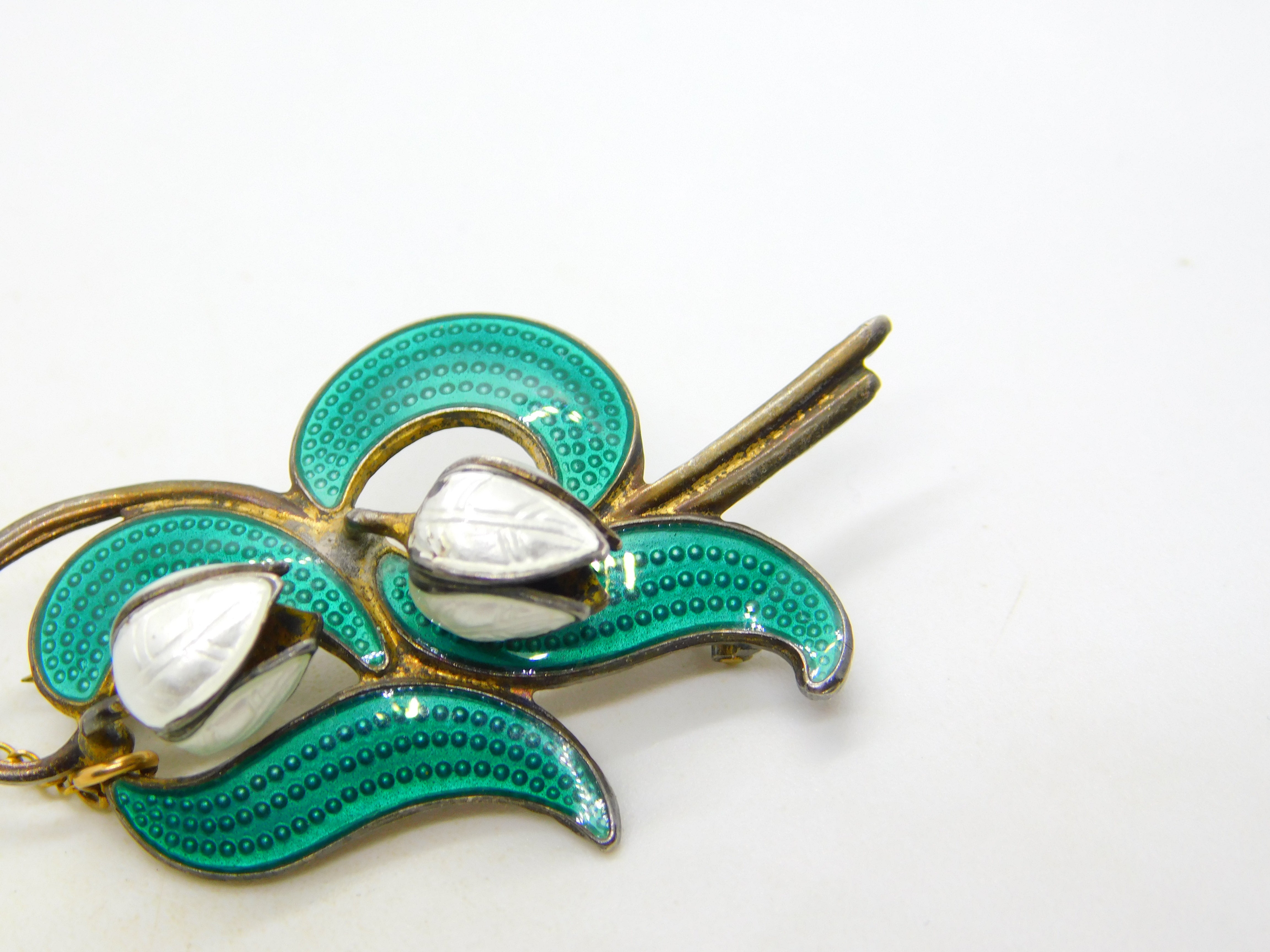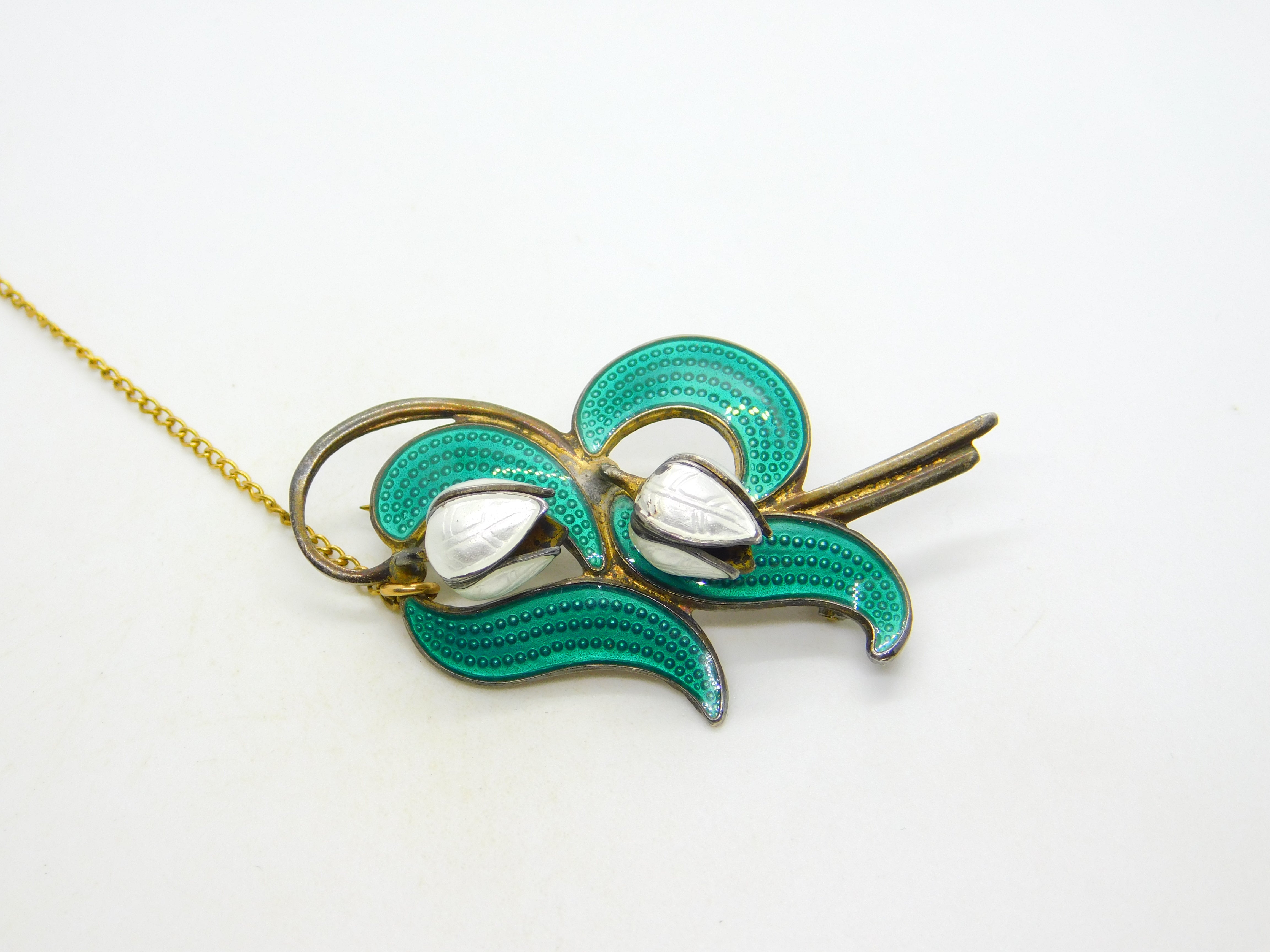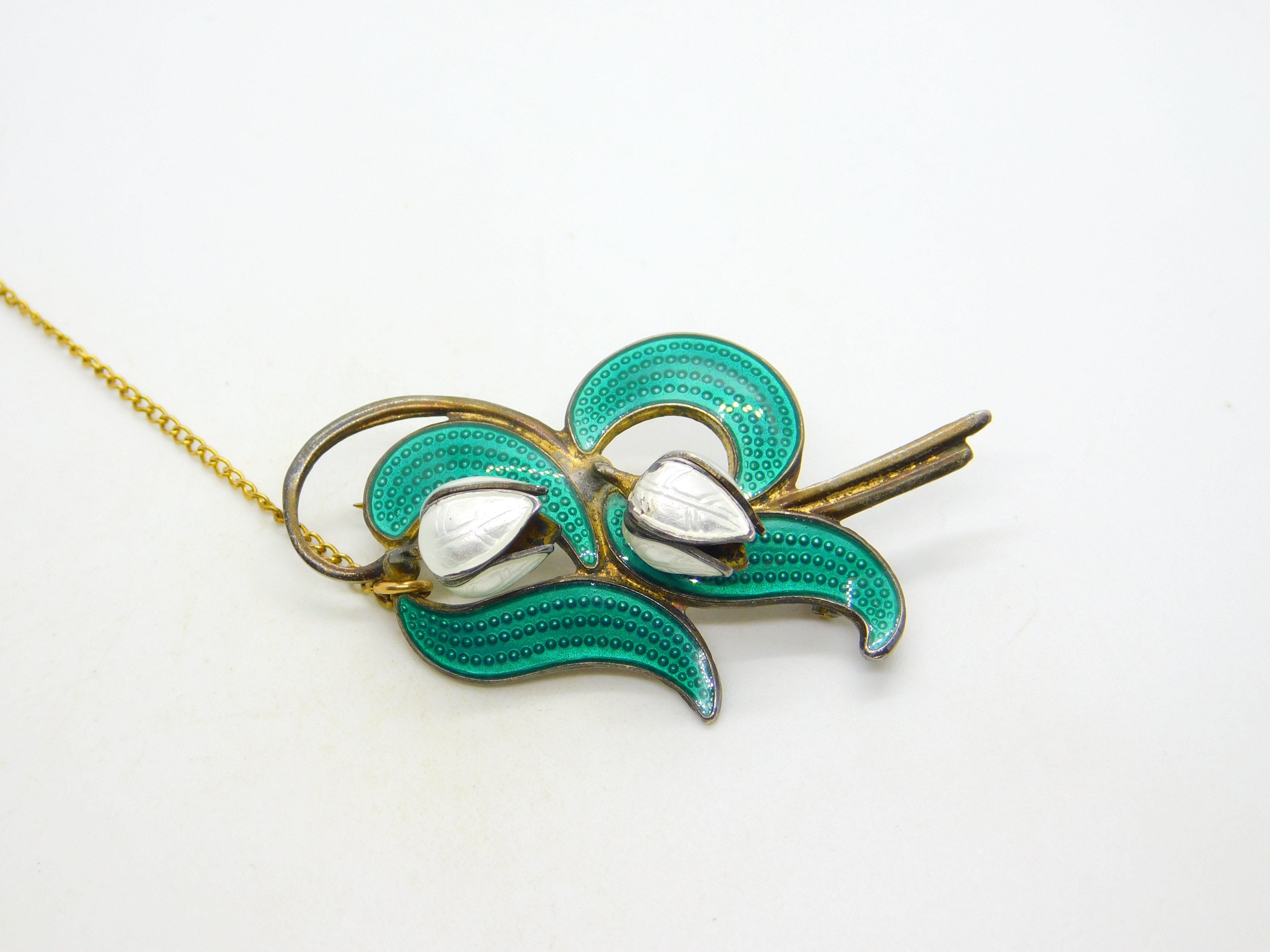 Norwegian Aksel Holmsen Sterling Silver Enamel Snowdrop Flower Brooch Antique c1940