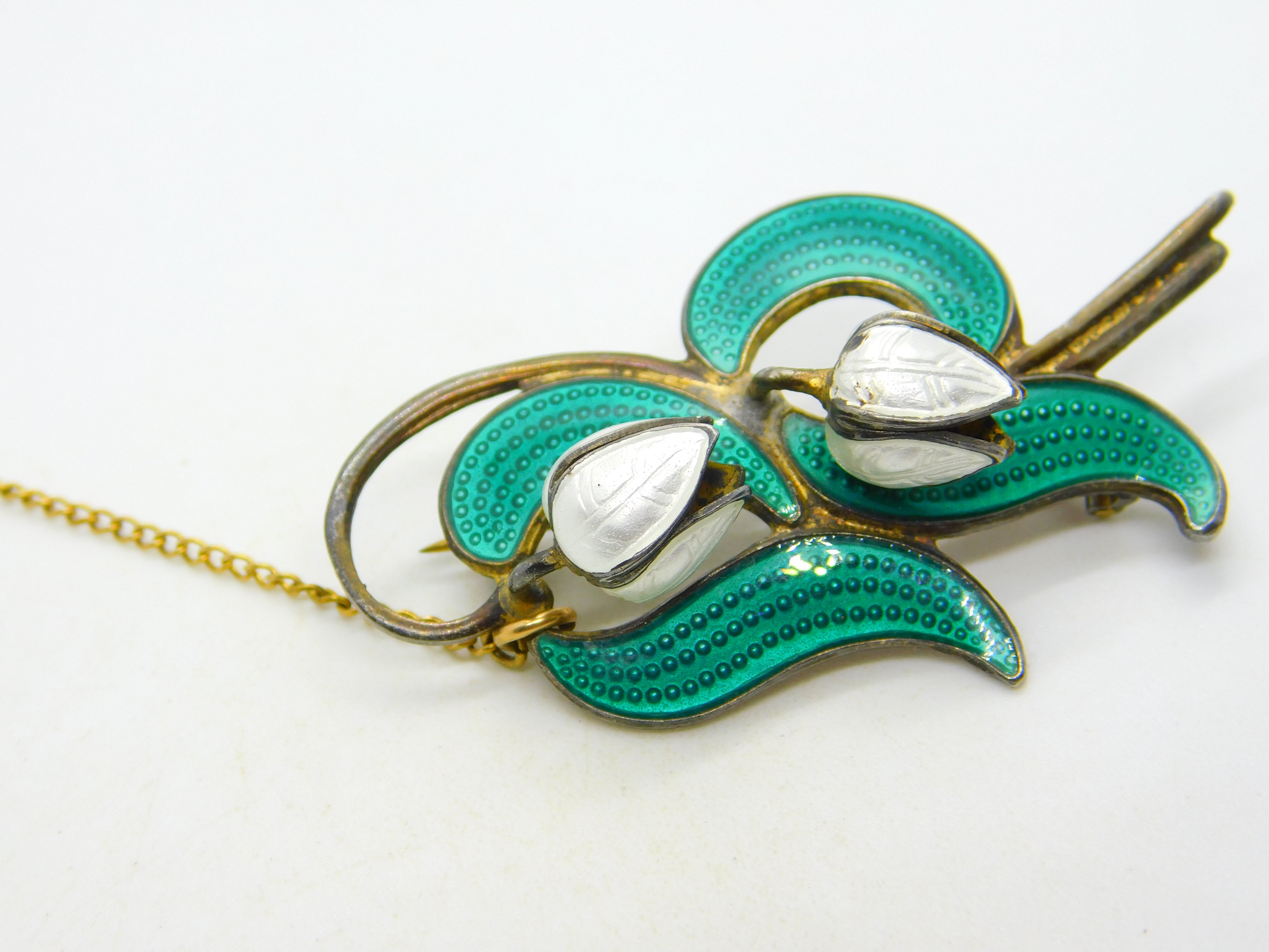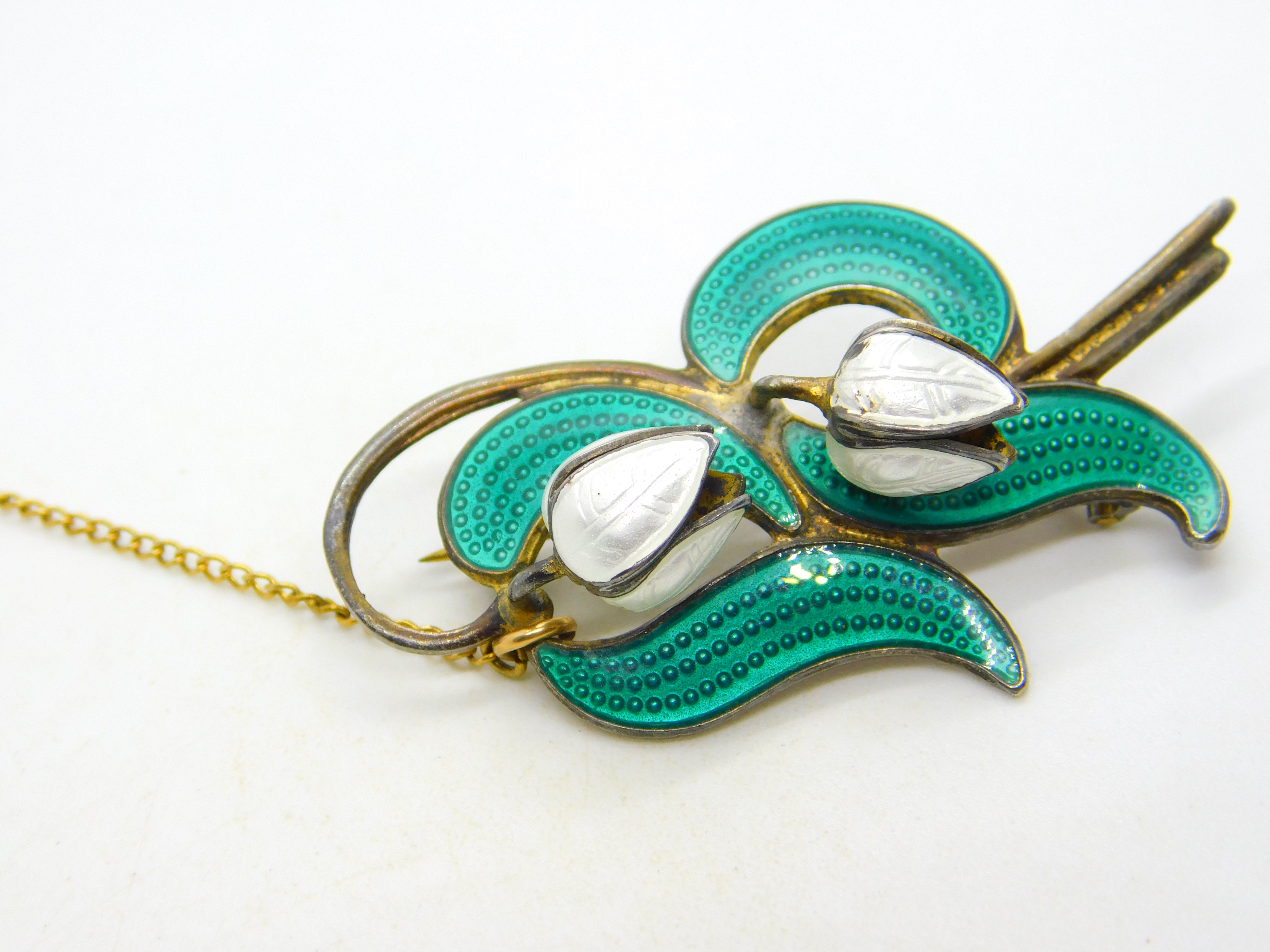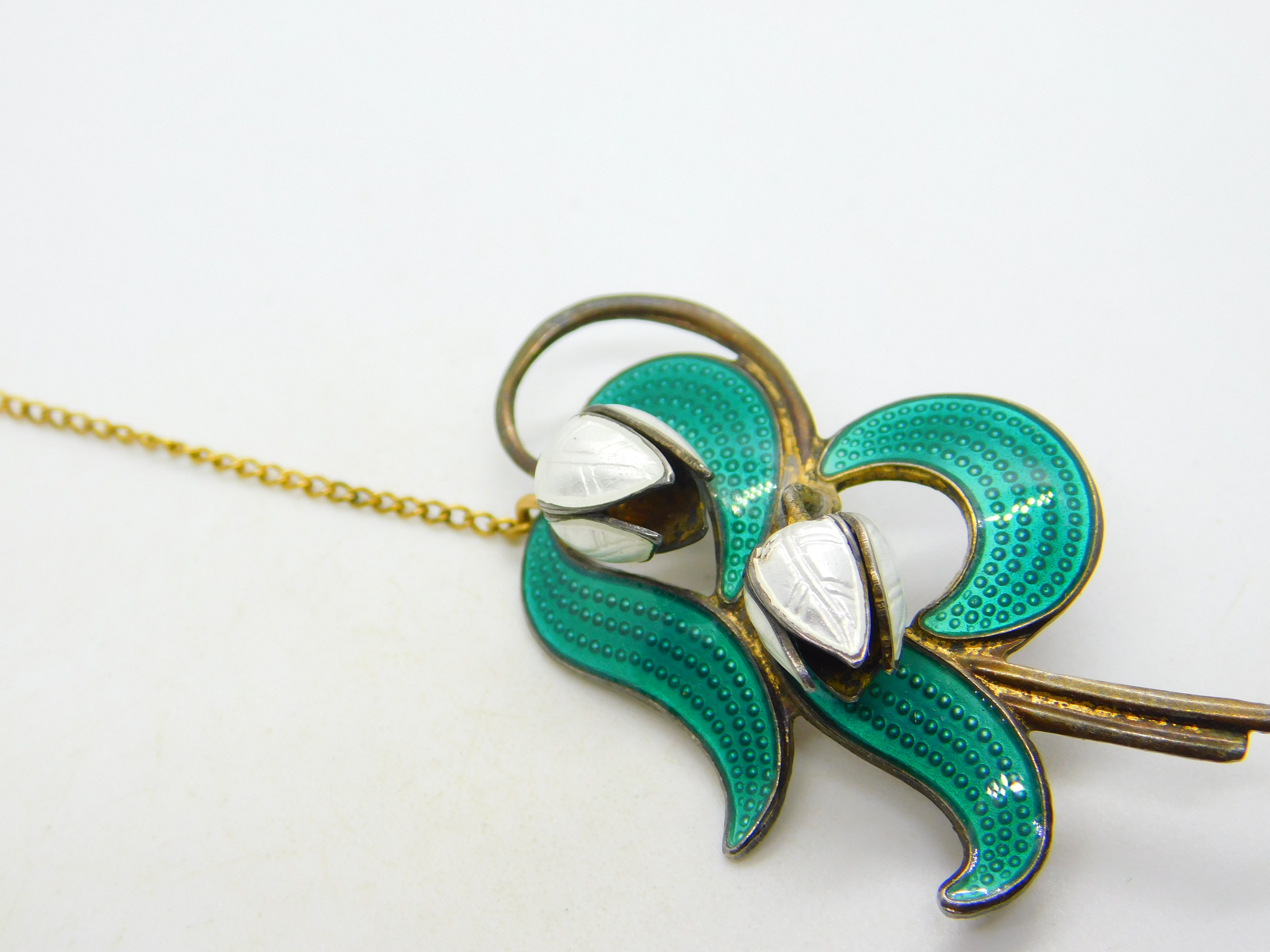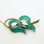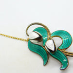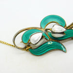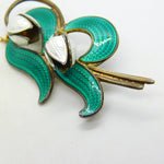 Norwegian Aksel Holmsen Sterling Silver Enamel Snowdrop Flower Brooch Antique c1940