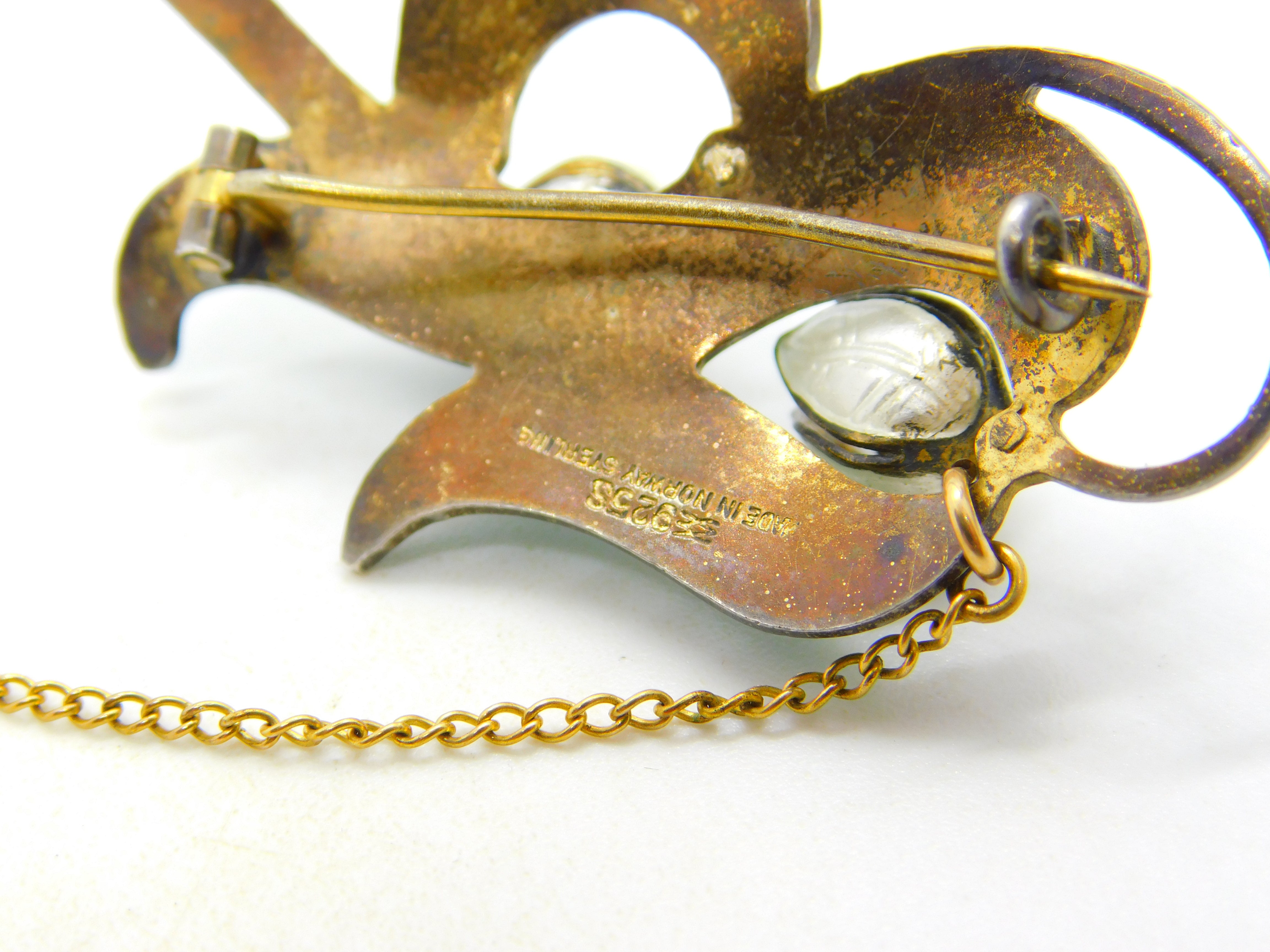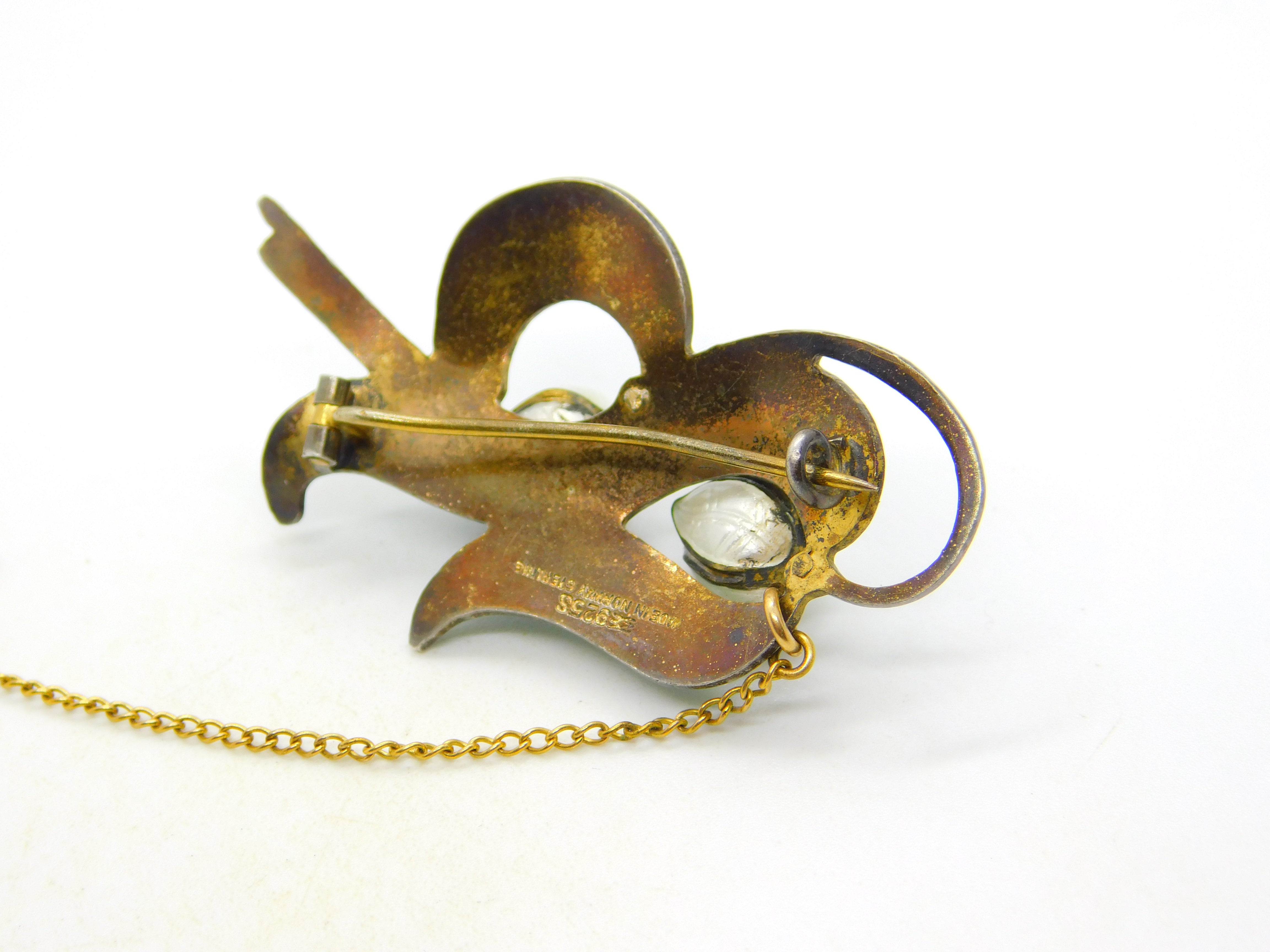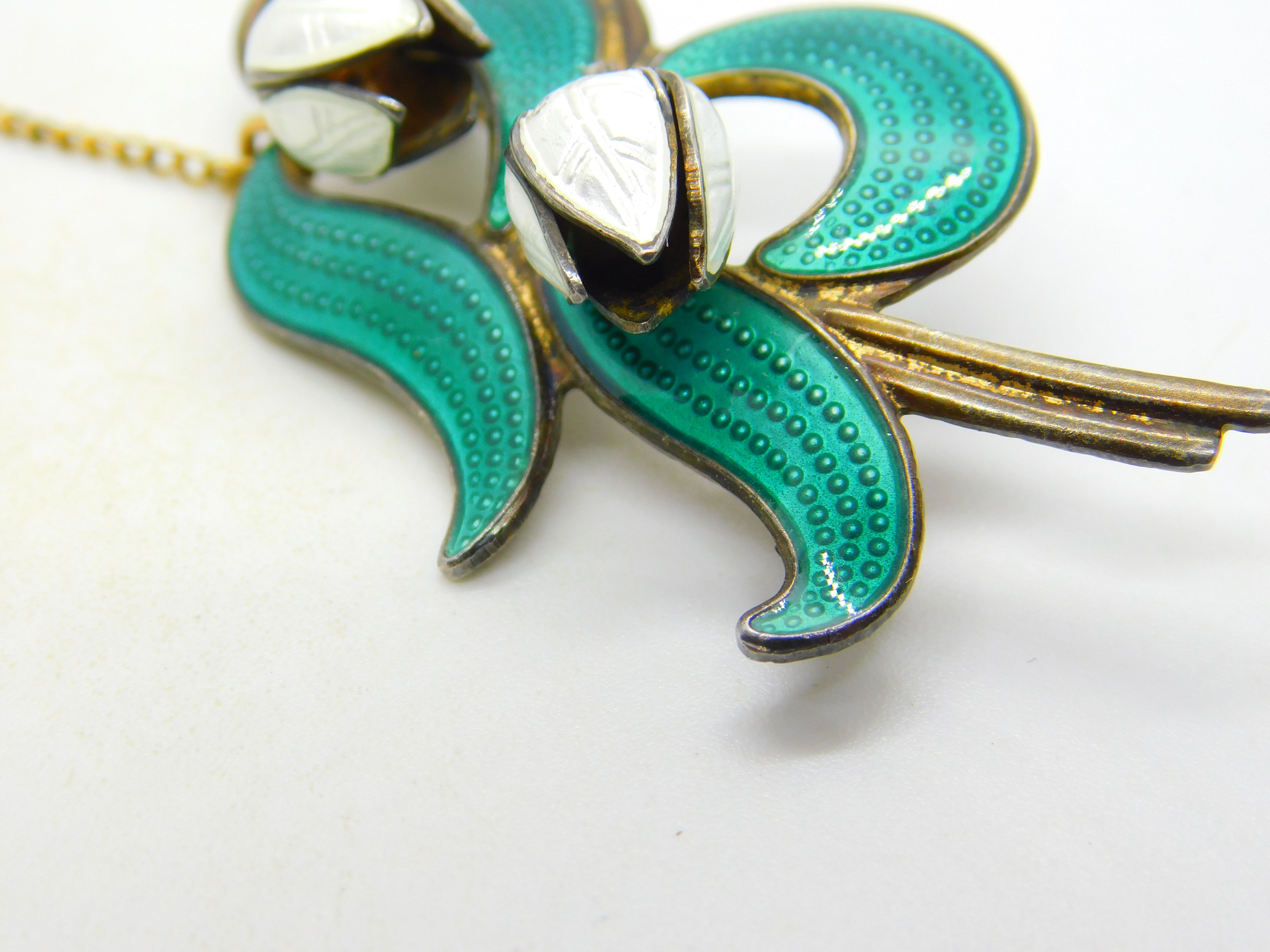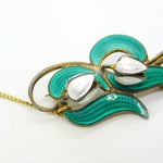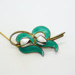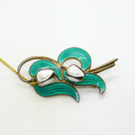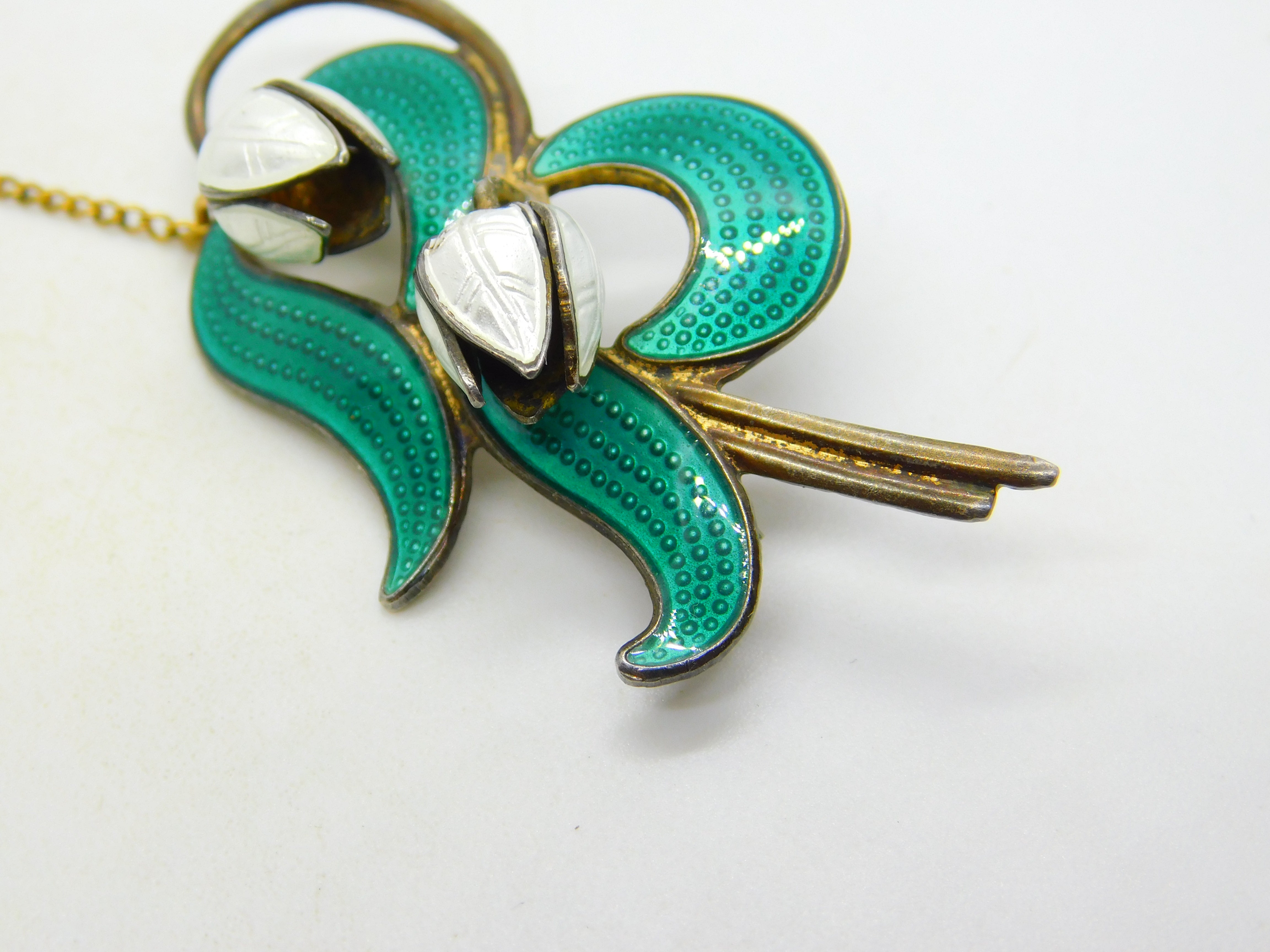 Norwegian Aksel Holmsen Sterling Silver Enamel Snowdrop Flower Brooch Antique c1940
