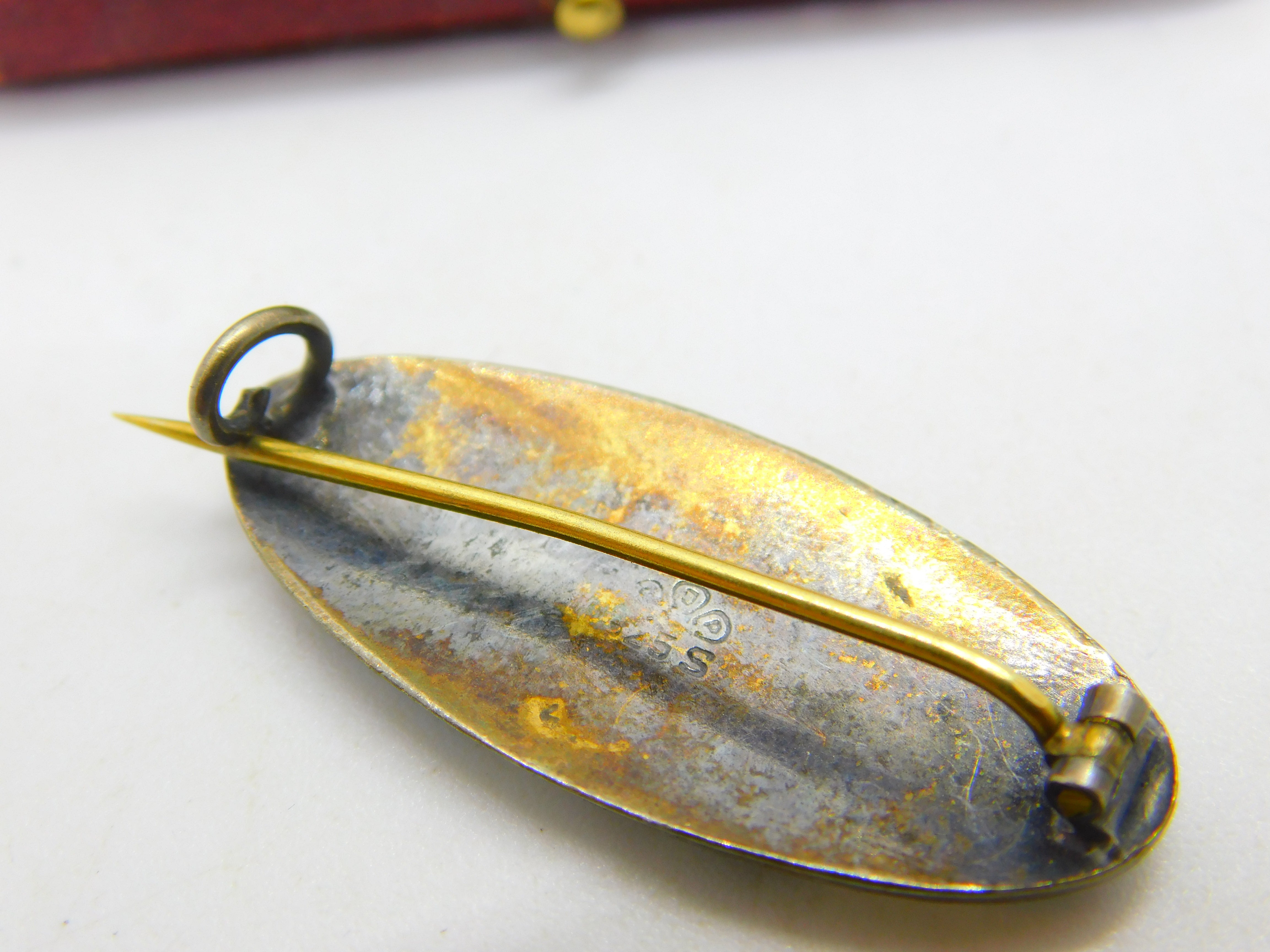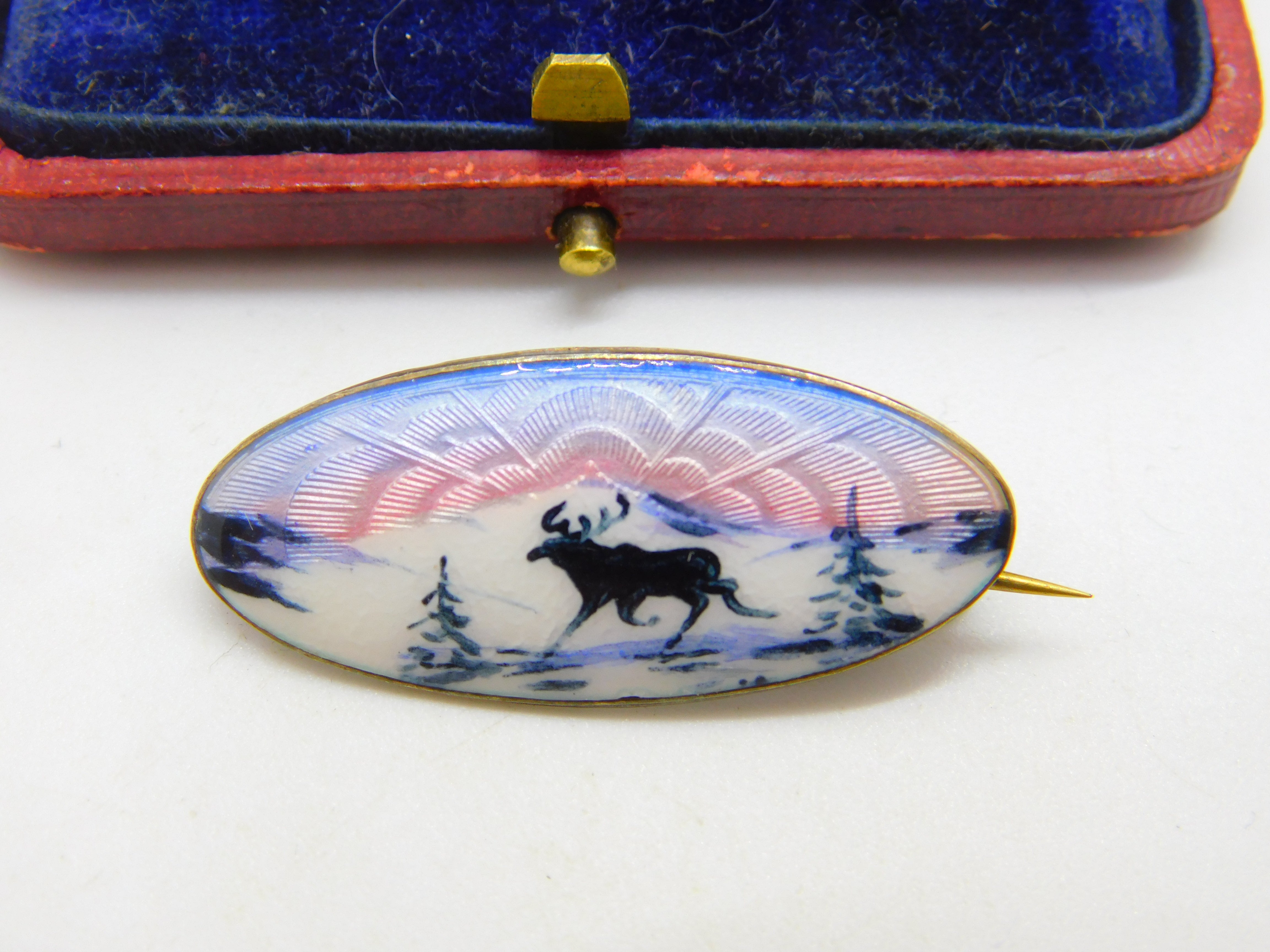 Norwegian Sterling Silver Guilloche Enamel Reindeer Brooch c1920 Antique