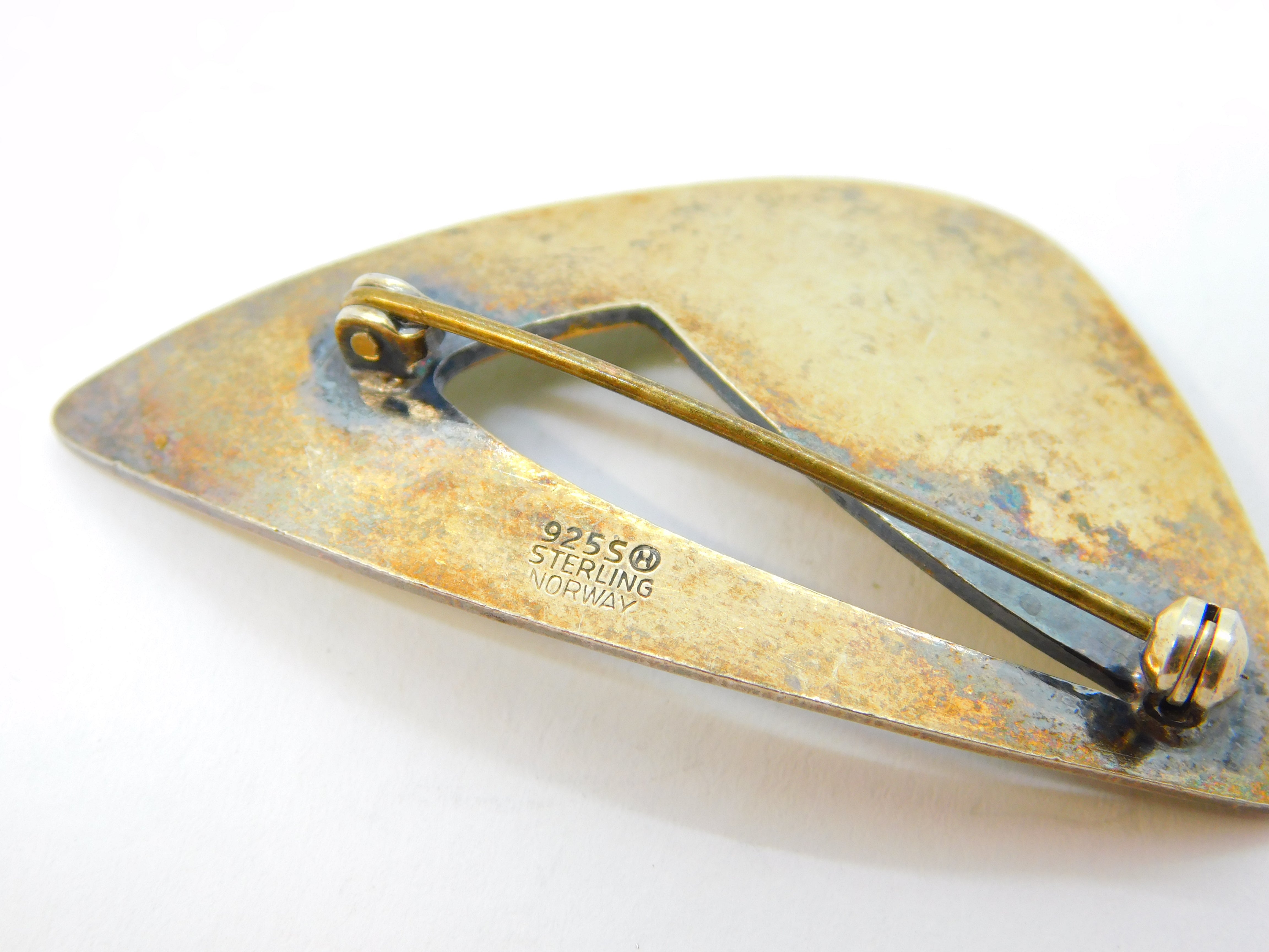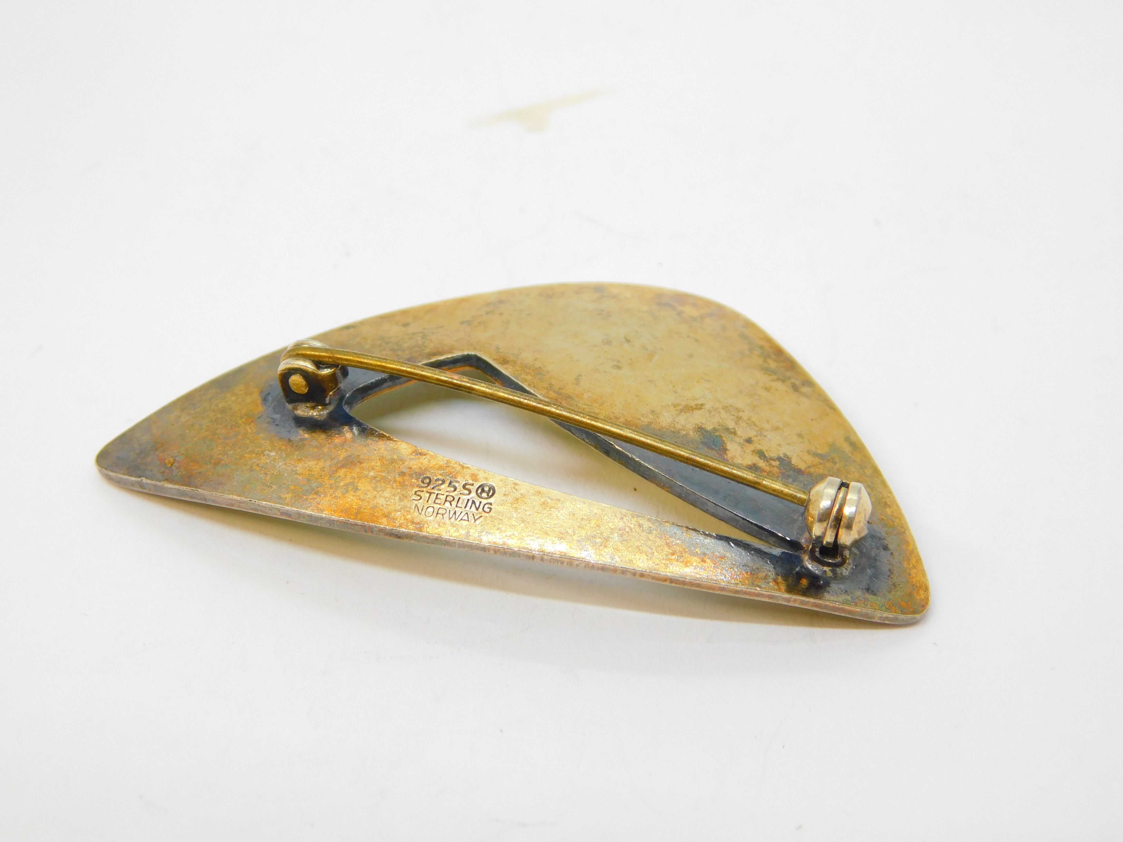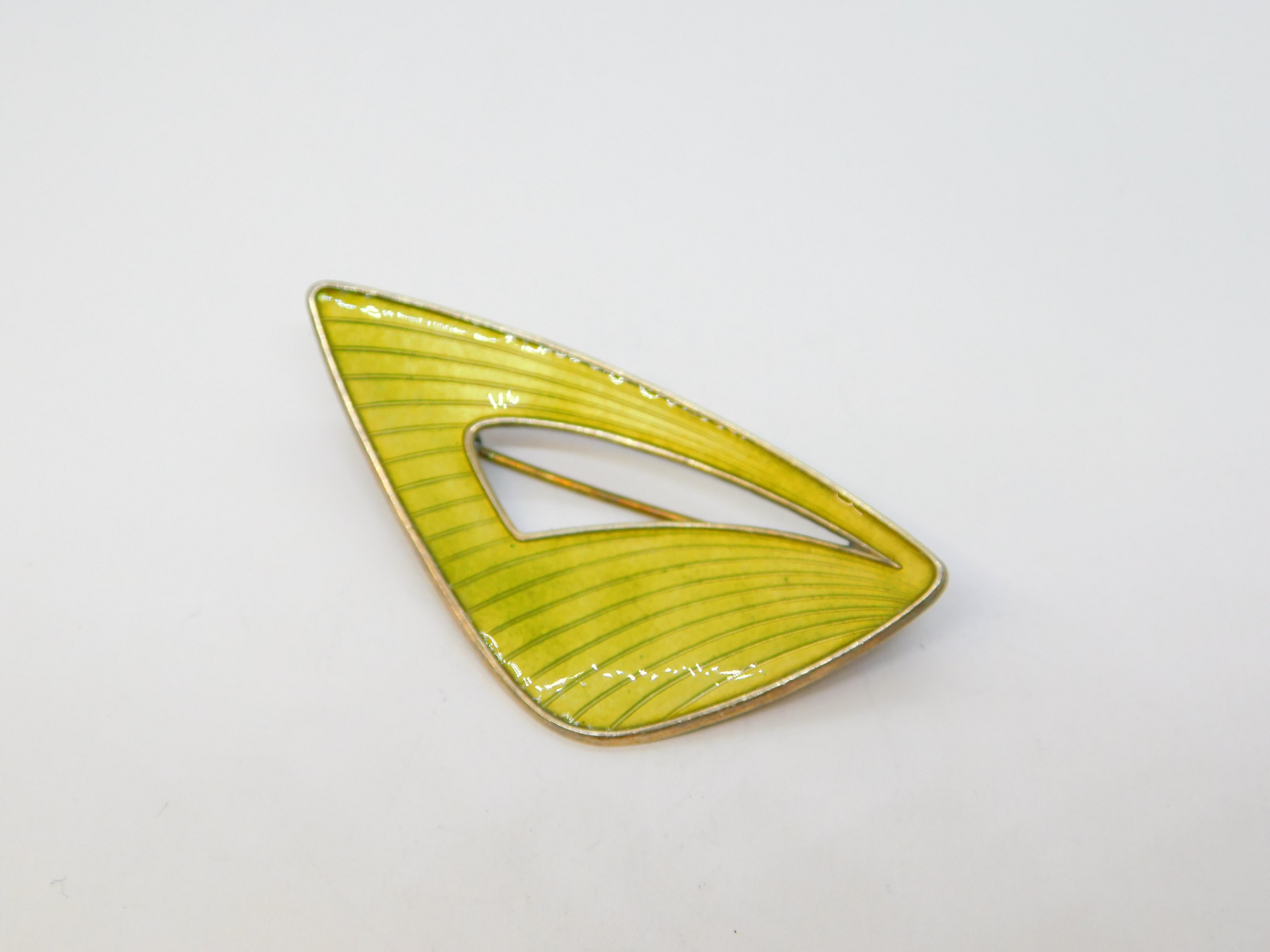 Norwegian Sterling Silver Yellow Enamel Spray Brooch Antique c1940 Ivar T. Holth