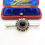 Sterling Silver Cabochon Bulls Eye Agate Taxco Style Bar Brooch Vintage c1970