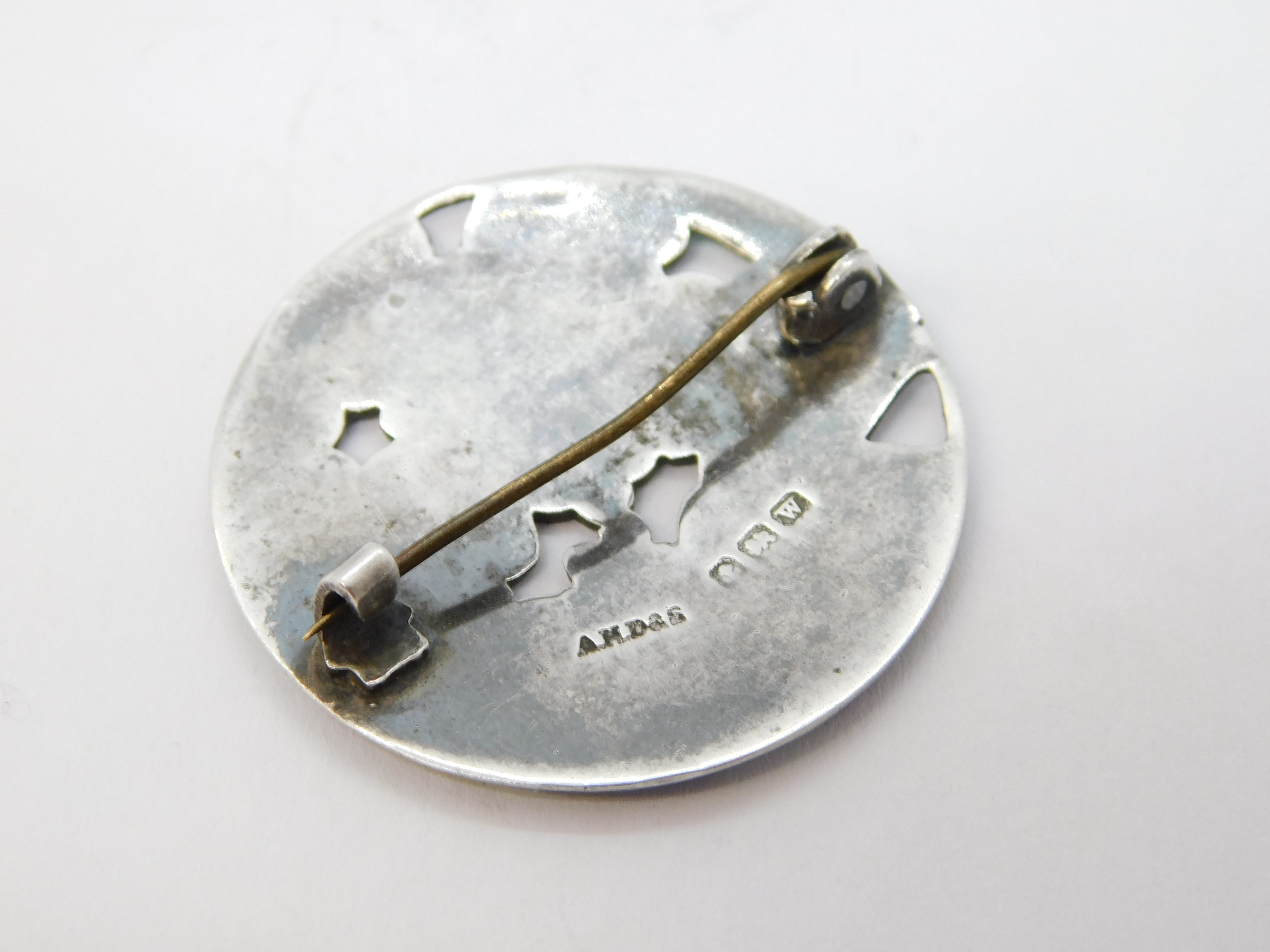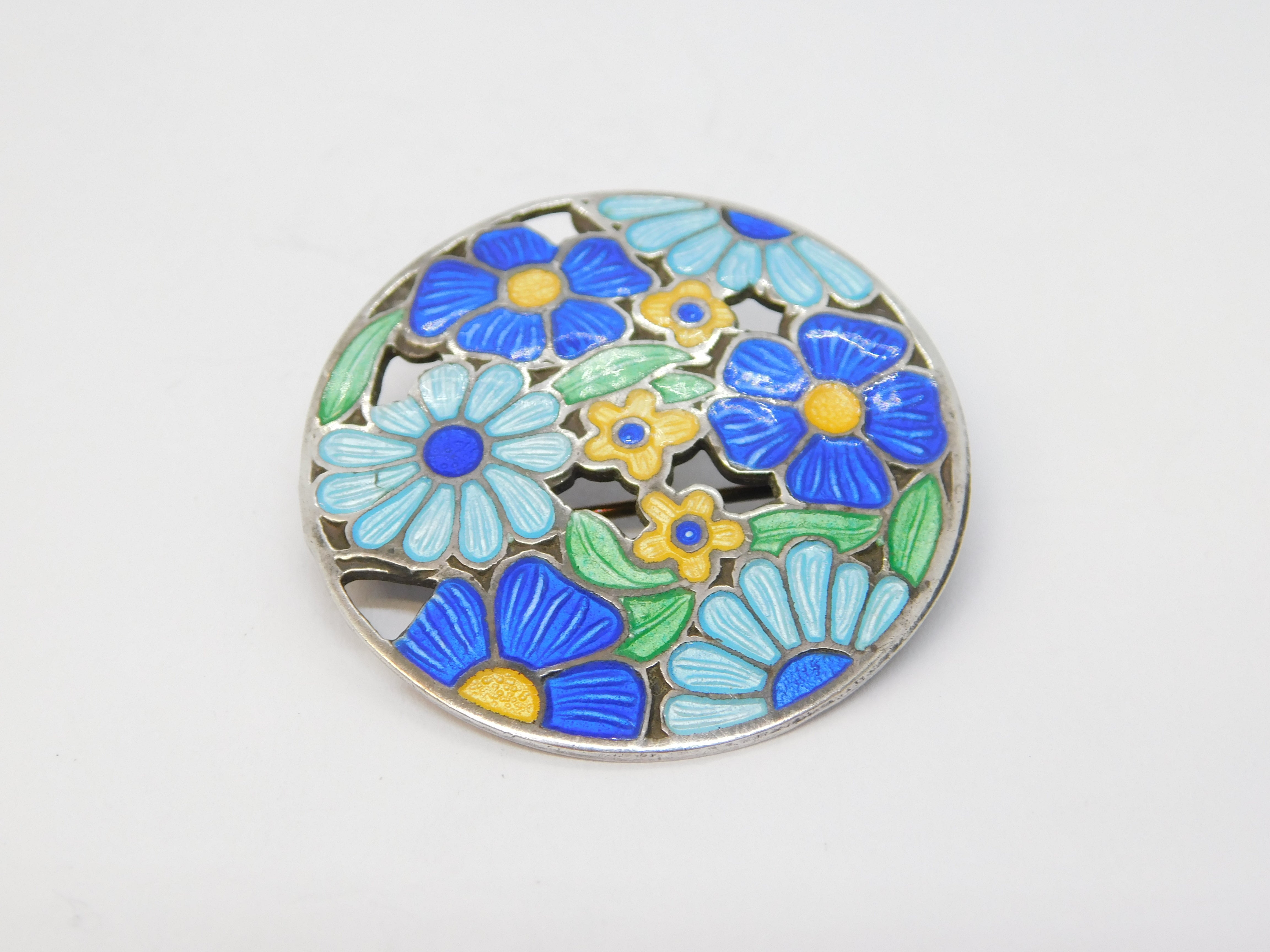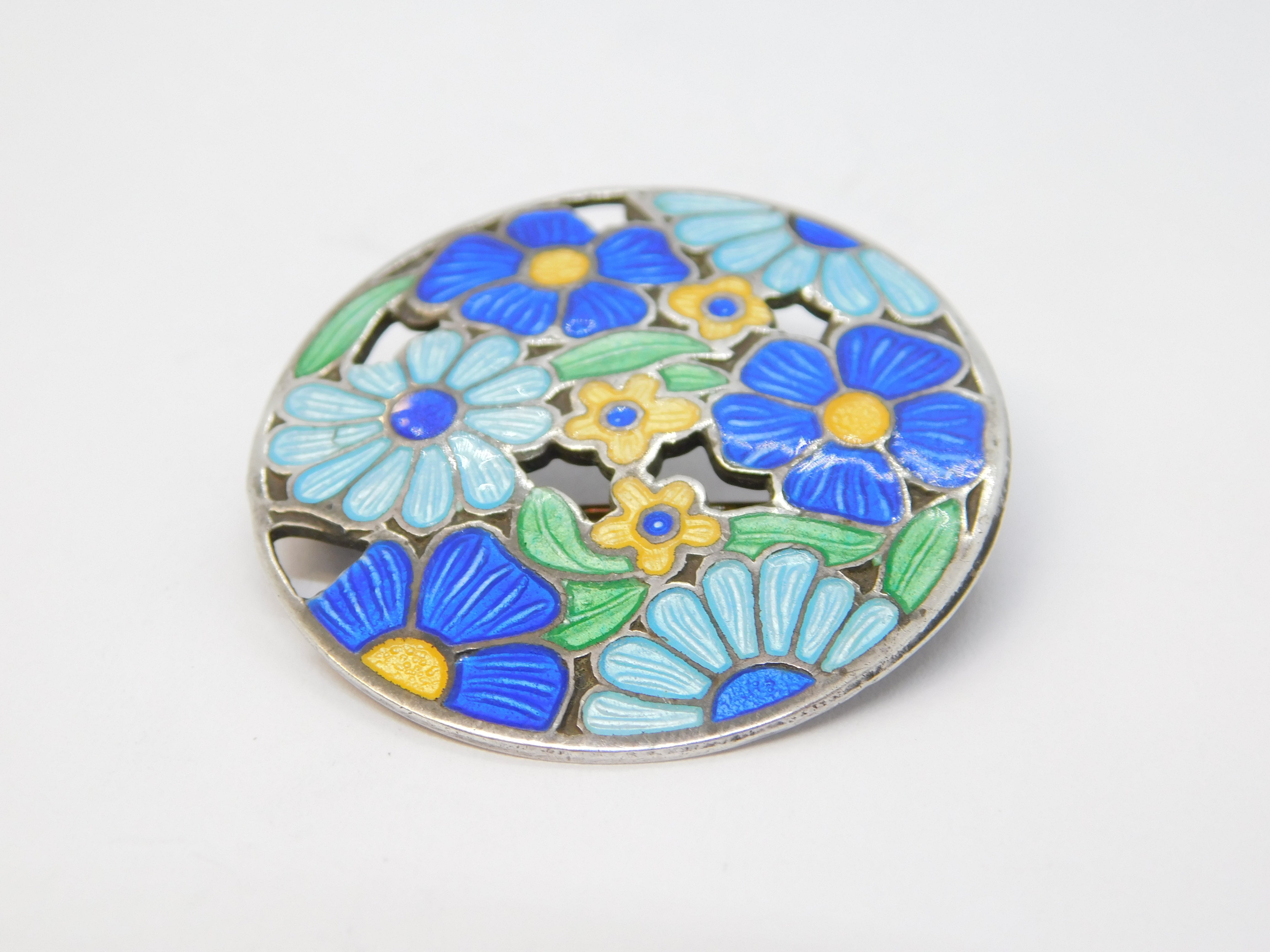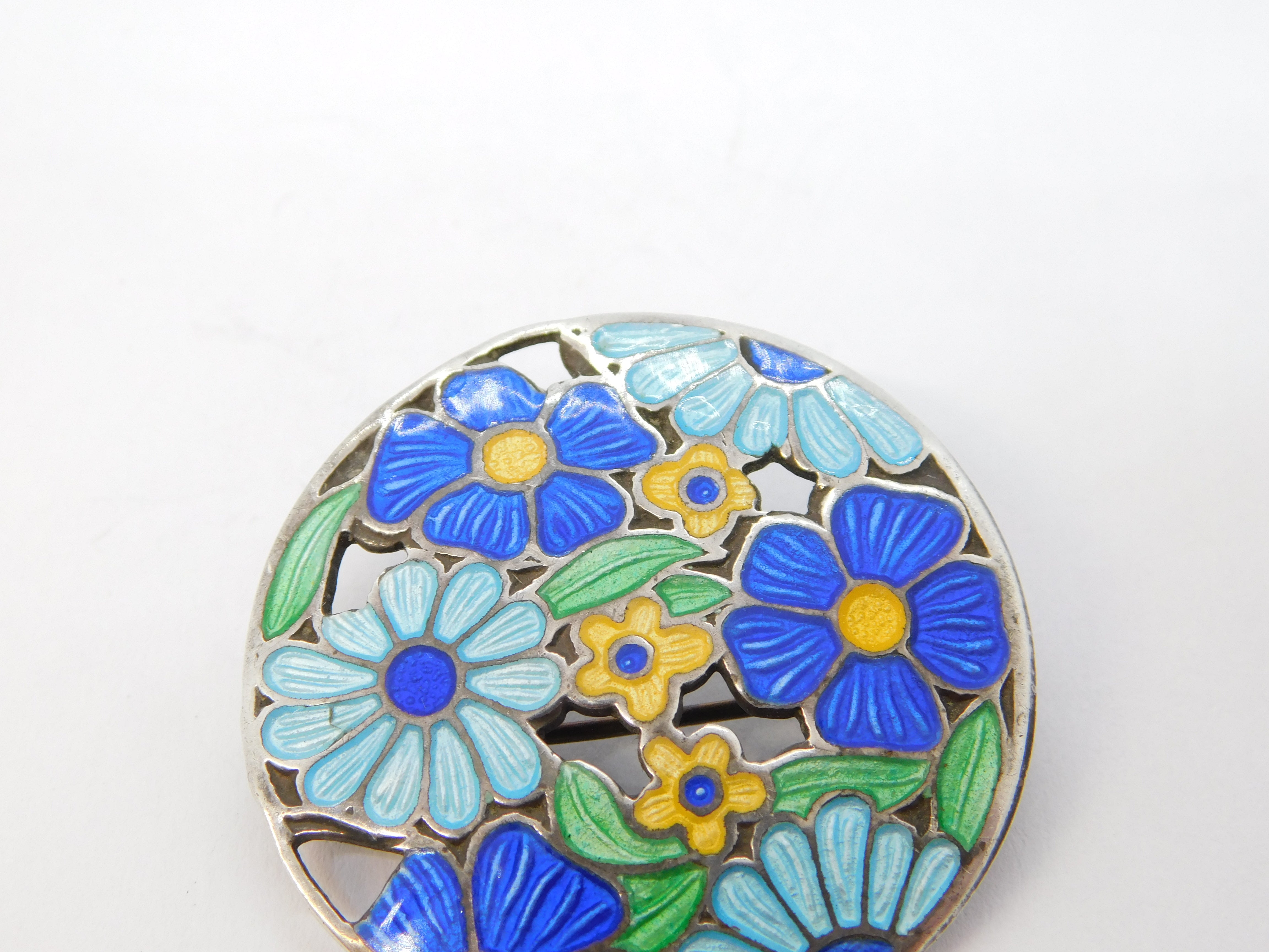 Sterling Silver Colourful Enamel Floral Brooch Pin Antique 1921 Birmingham Deco