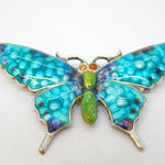 Sterling Silver Colourful Guilloche Enamel Butterfly Brooch Antique c1920 Deco