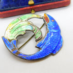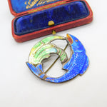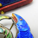 Sterling Silver & Enamel Leaping Salmon Brooch 1946 Birmingham AH Darby & Son
