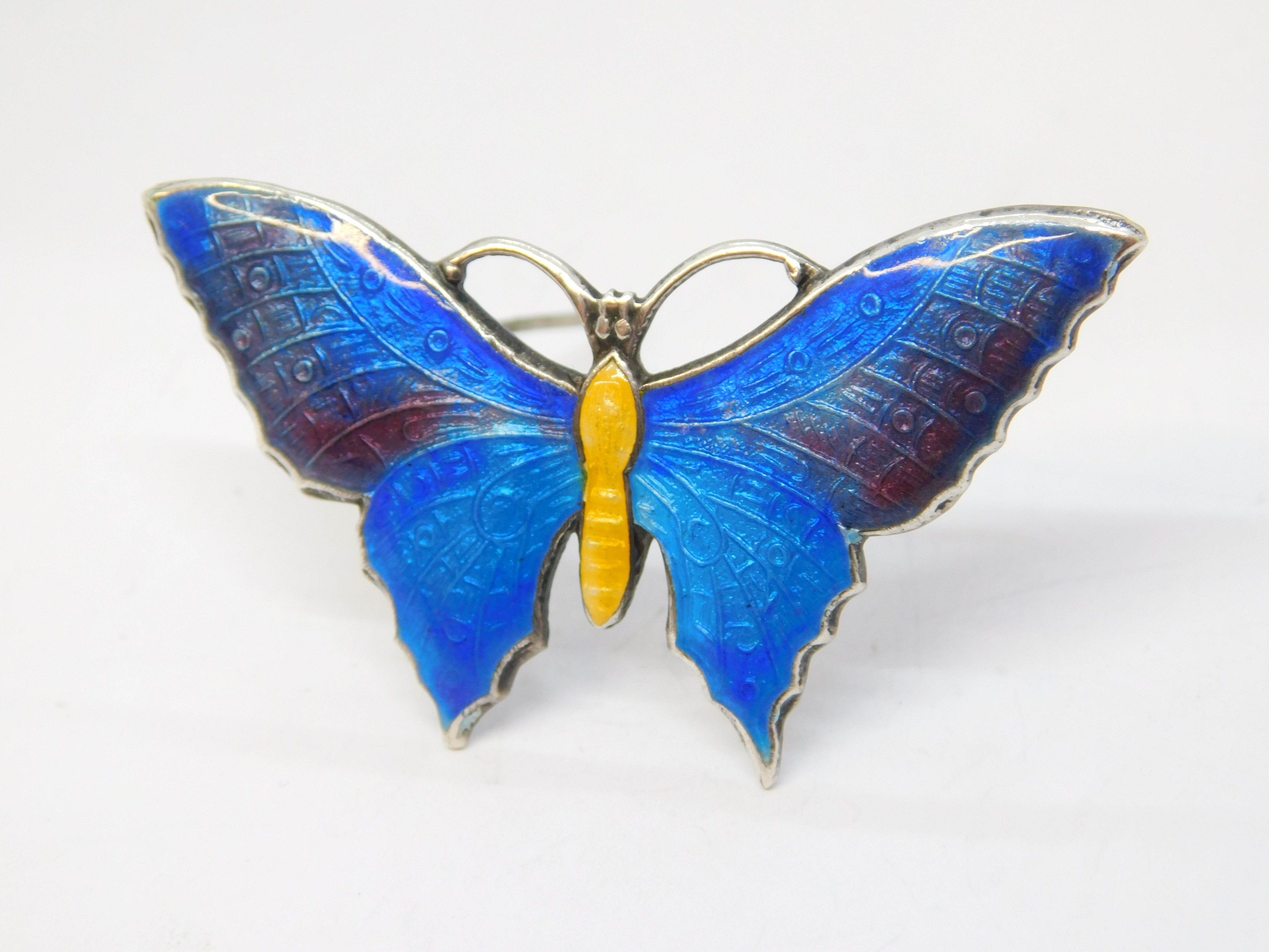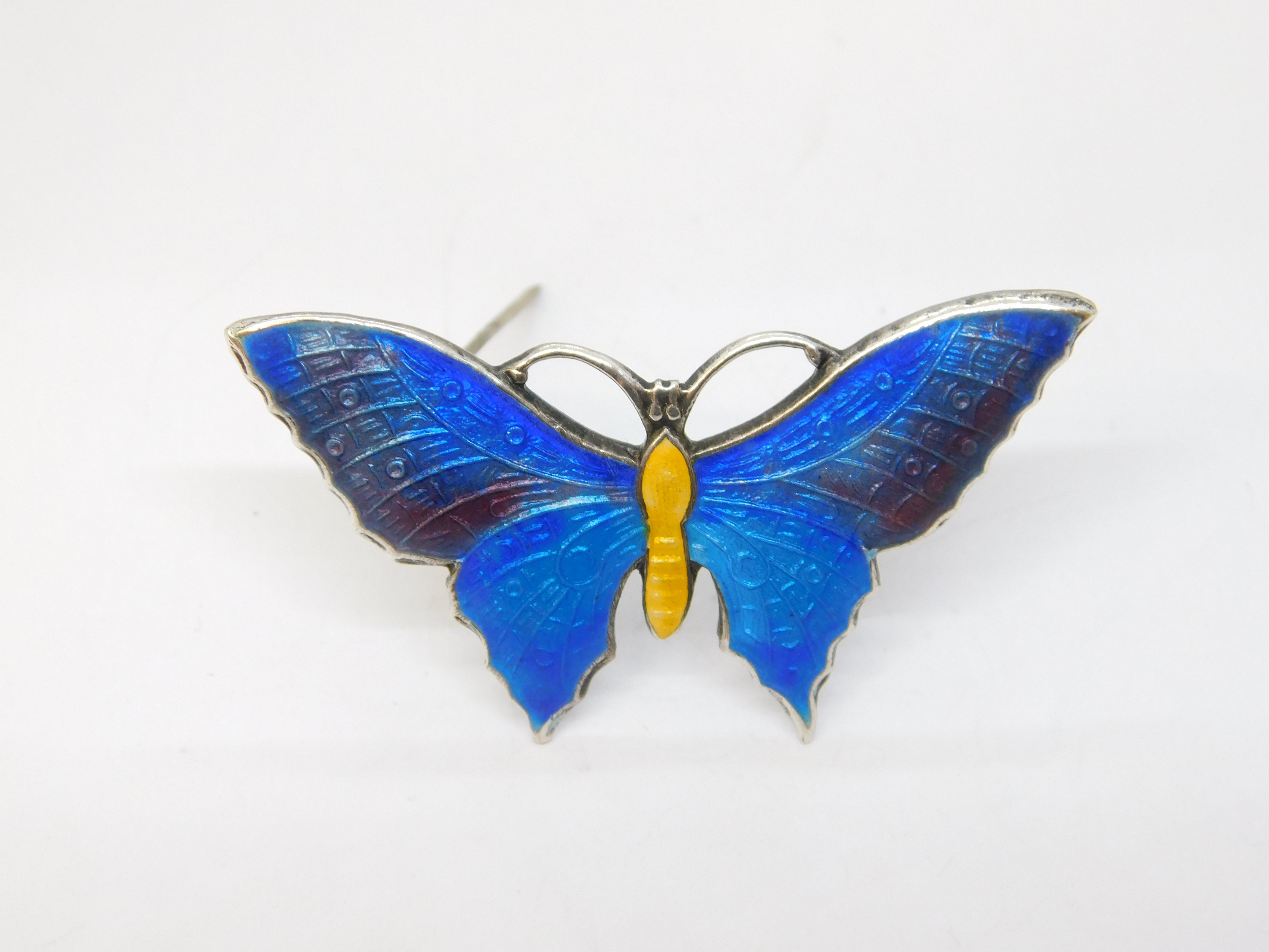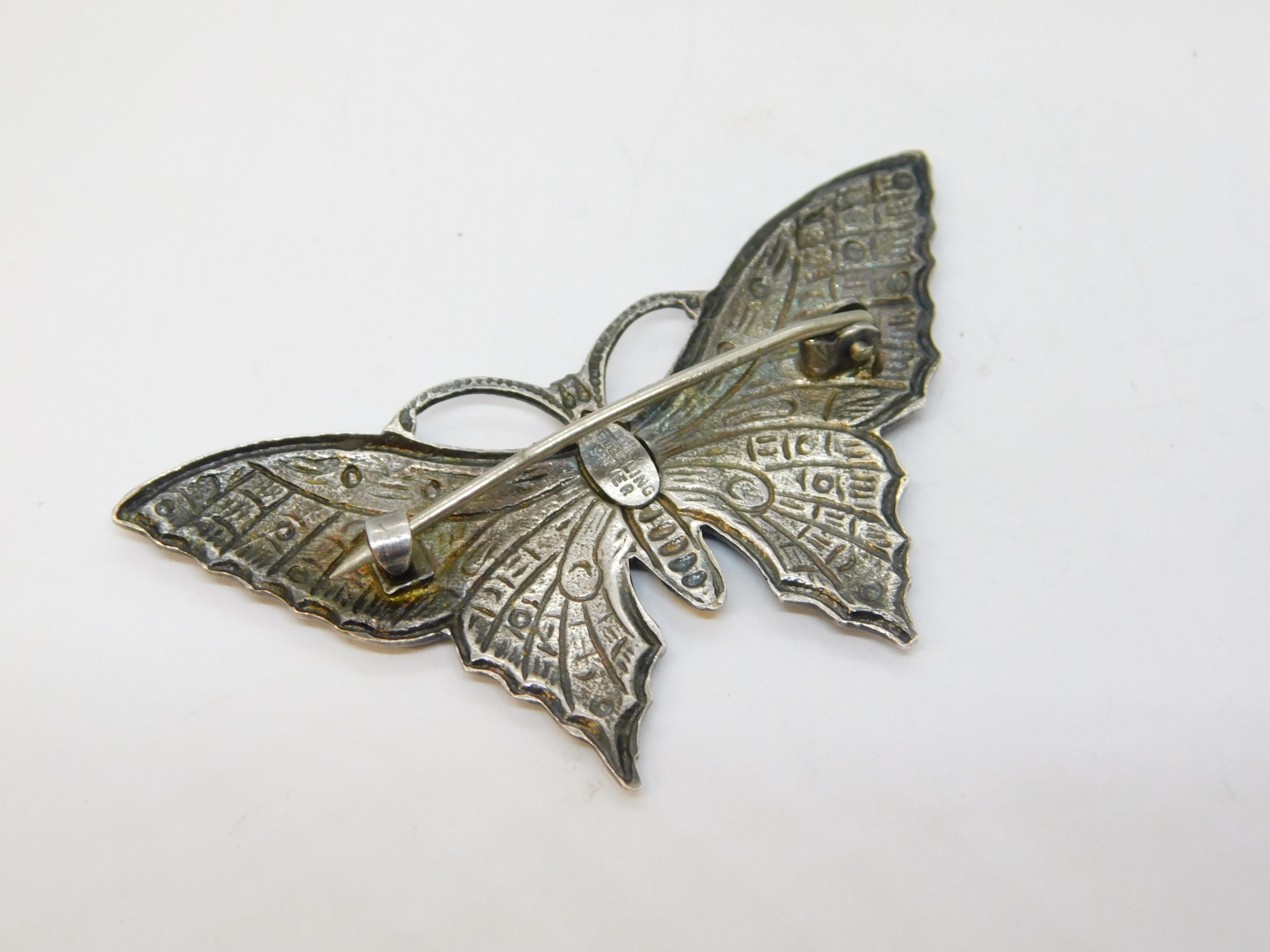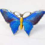 Sterling Silver Guilloche Enamel Butterfly Sweetheart Brooch Antique c1920