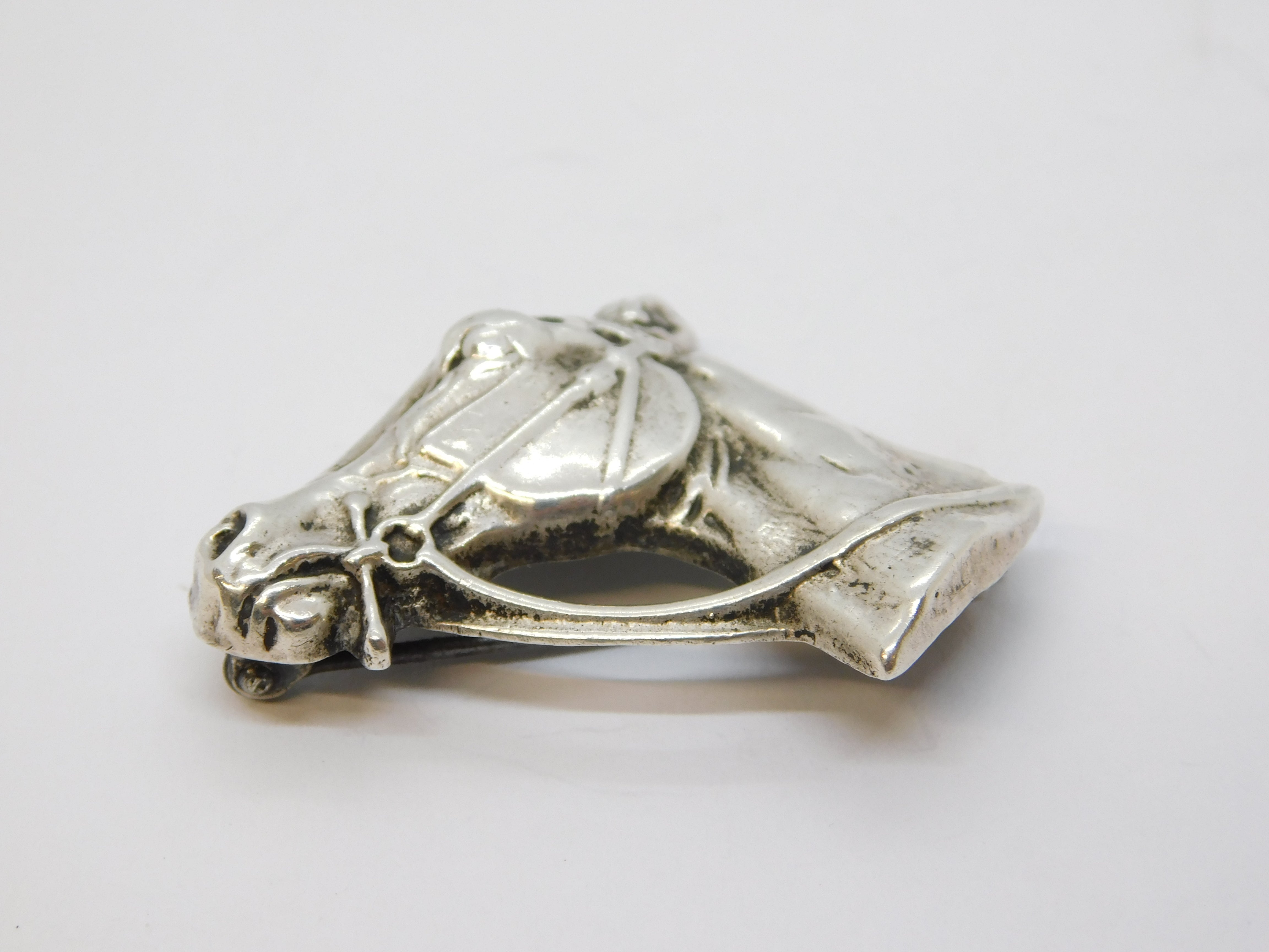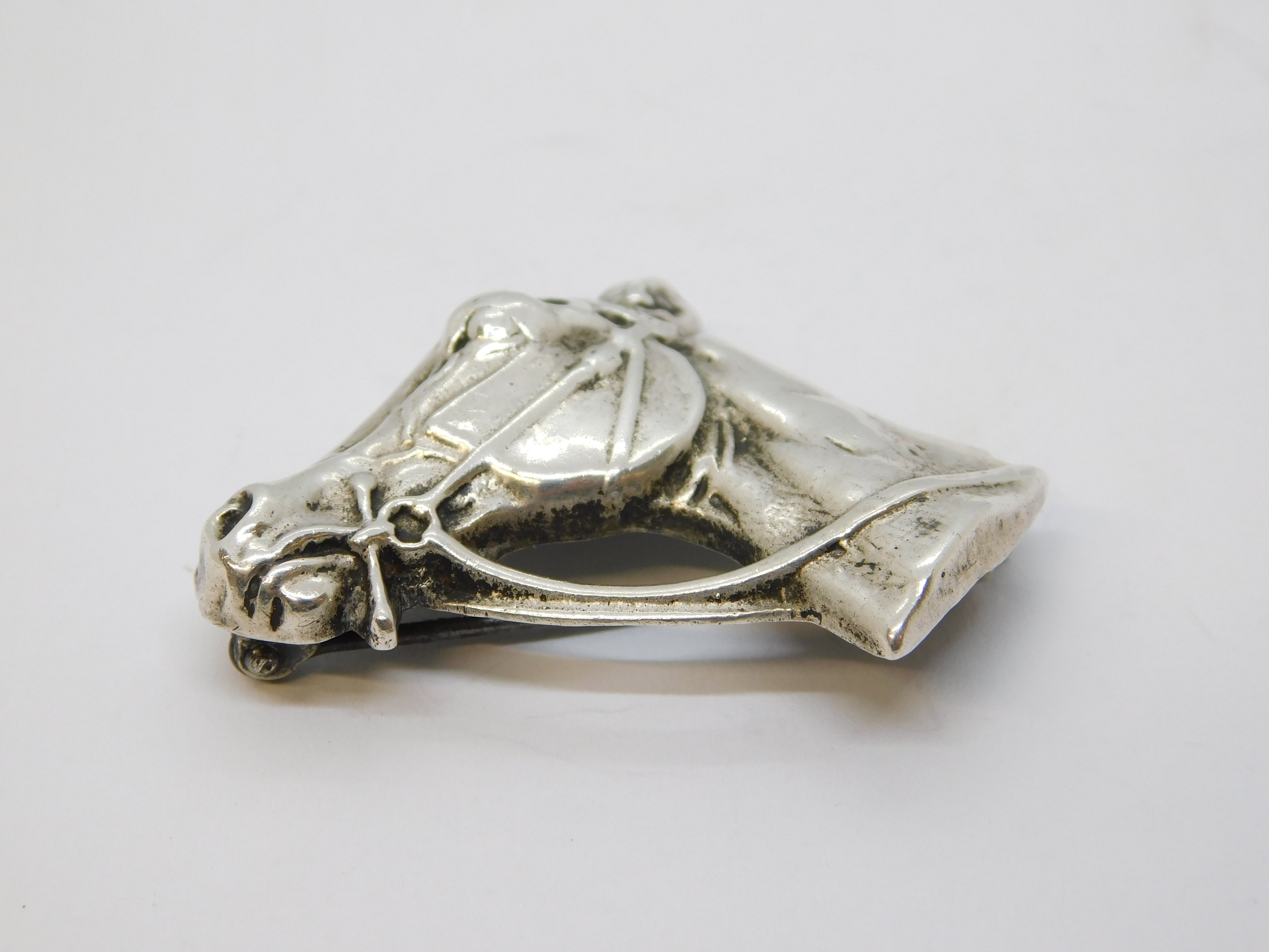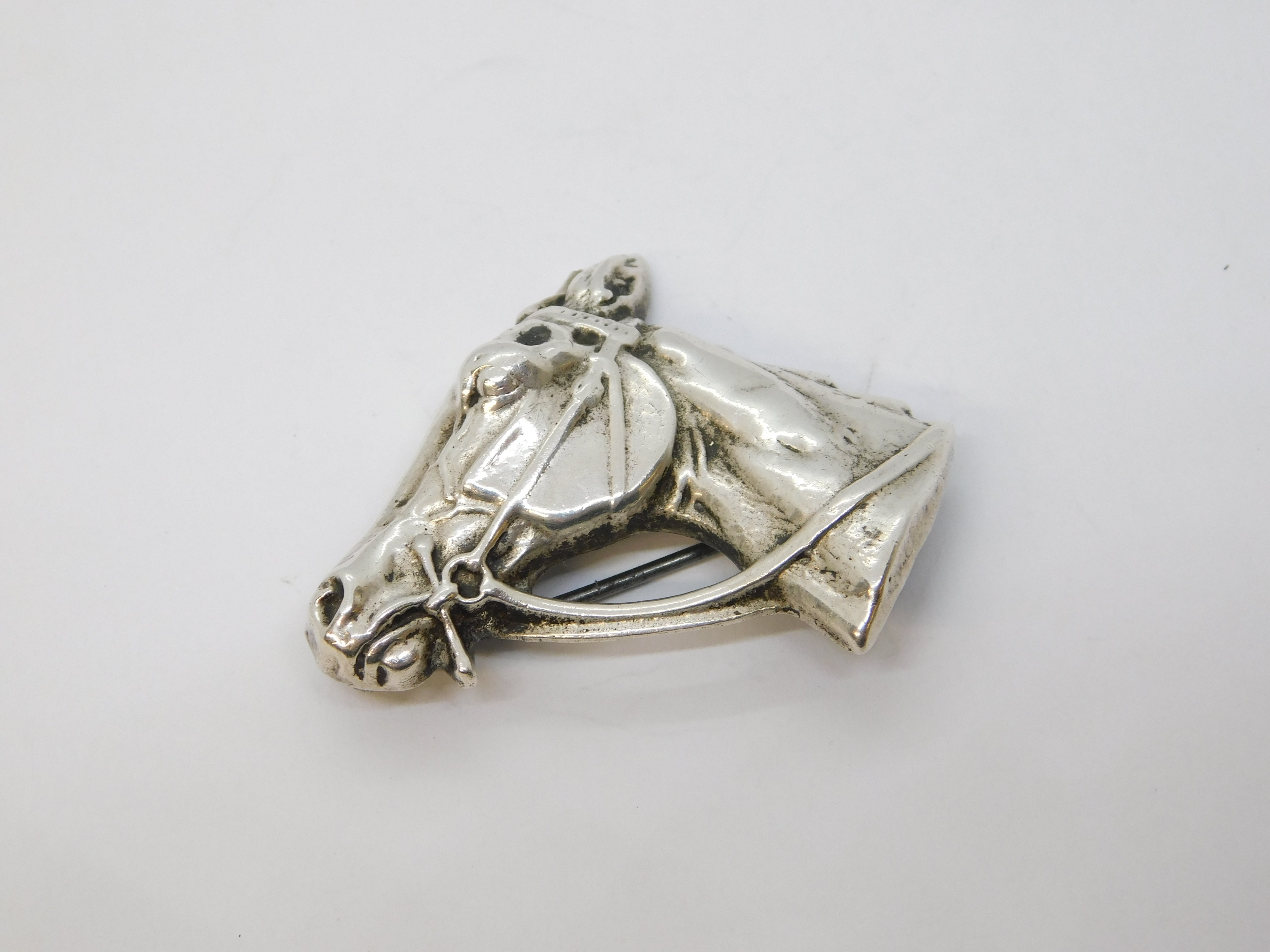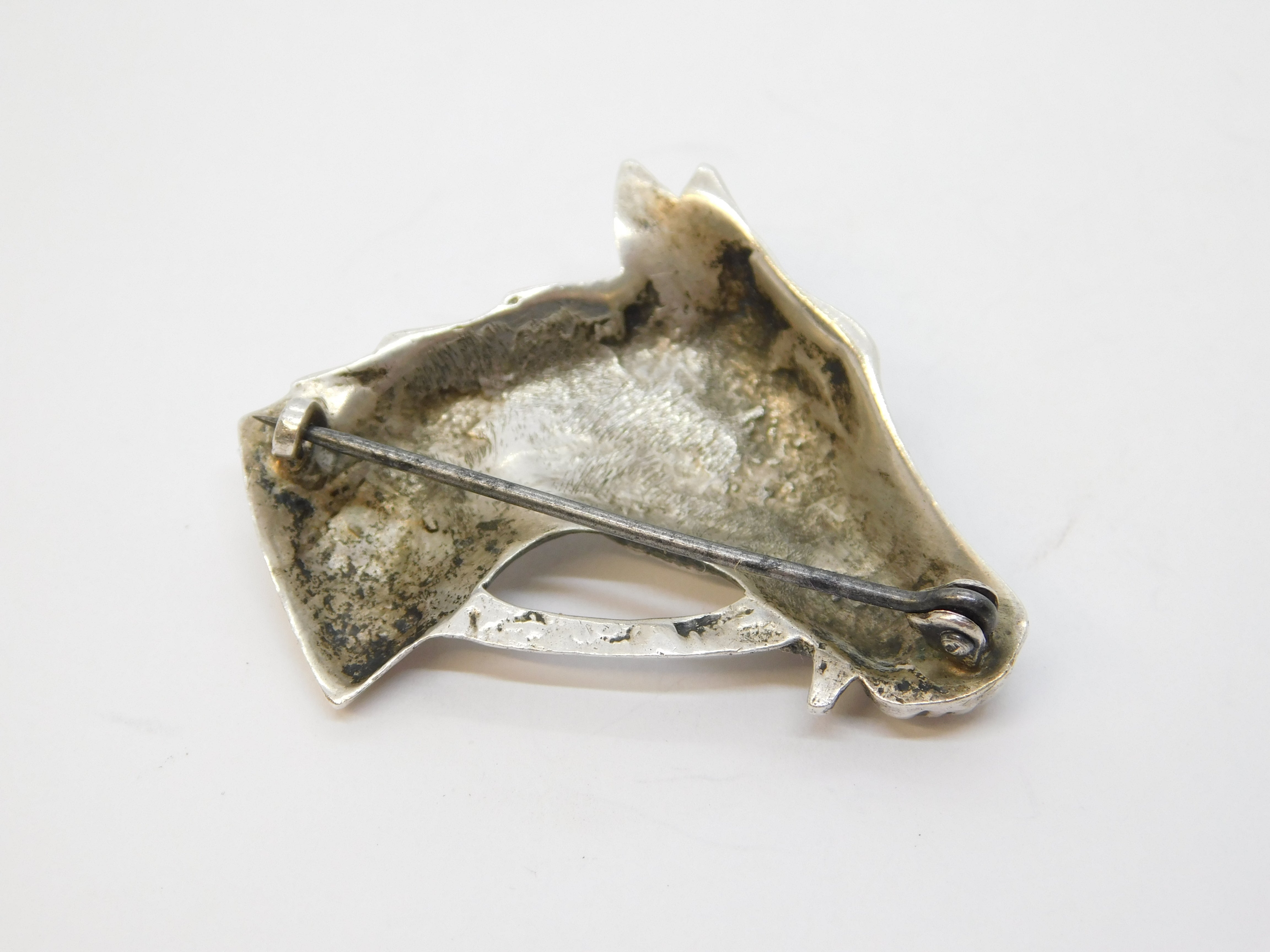 Sterling Silver Horse Racing Racehorse Brooch Pin Antique c1920 Art Deco