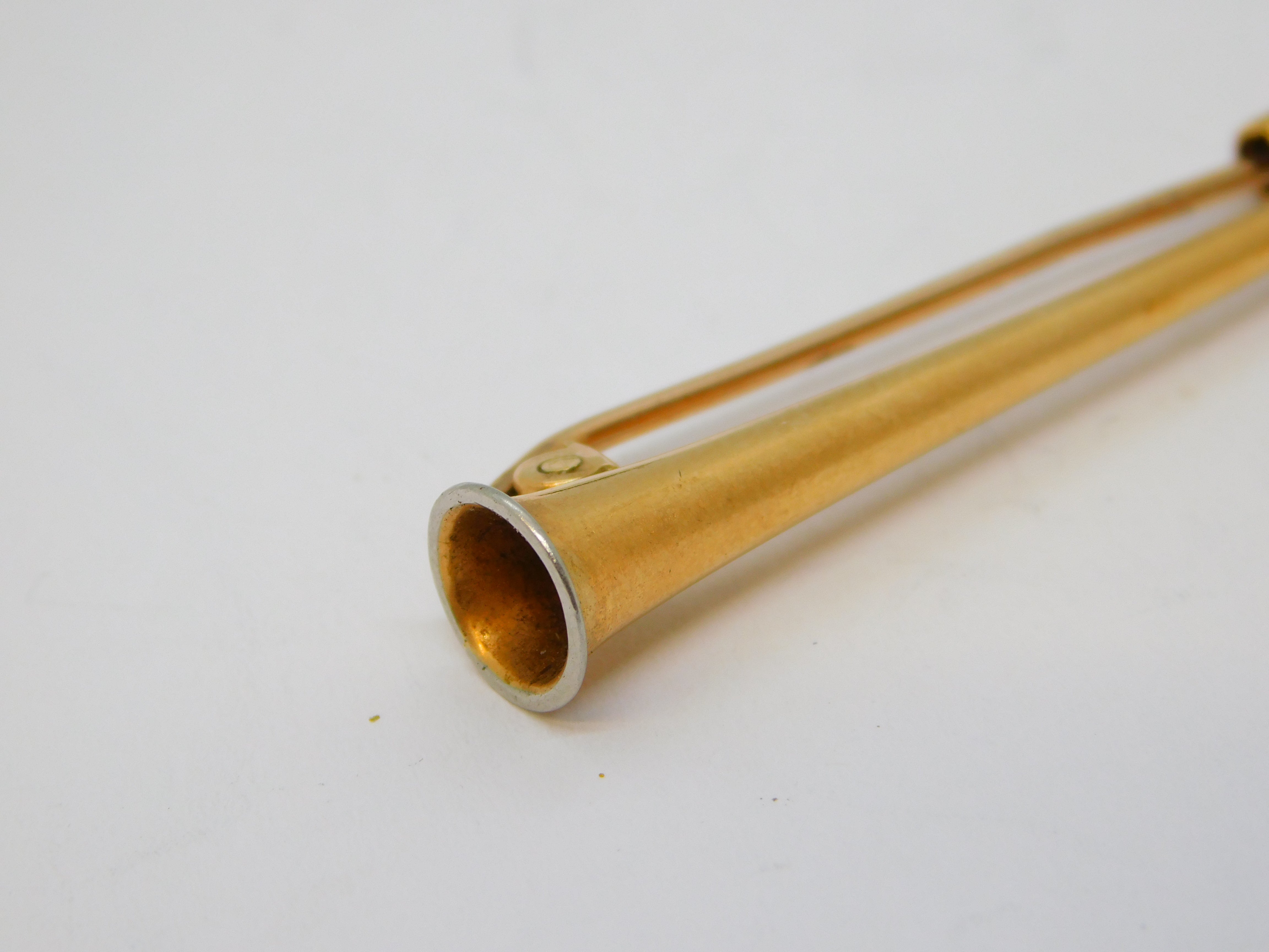 Details: A fantastic and wonderfully designed antique Victorian 15ct rose gold hunting horn stock pin brooch with superb detaling to include a platinum mouthpiece, hallmarked '15ct' to the edge and XRF tested c1880. This is a wonderful item that would make a perfect gift or addition to any collection. We are more than happy to provide XRF reports for items upon request.