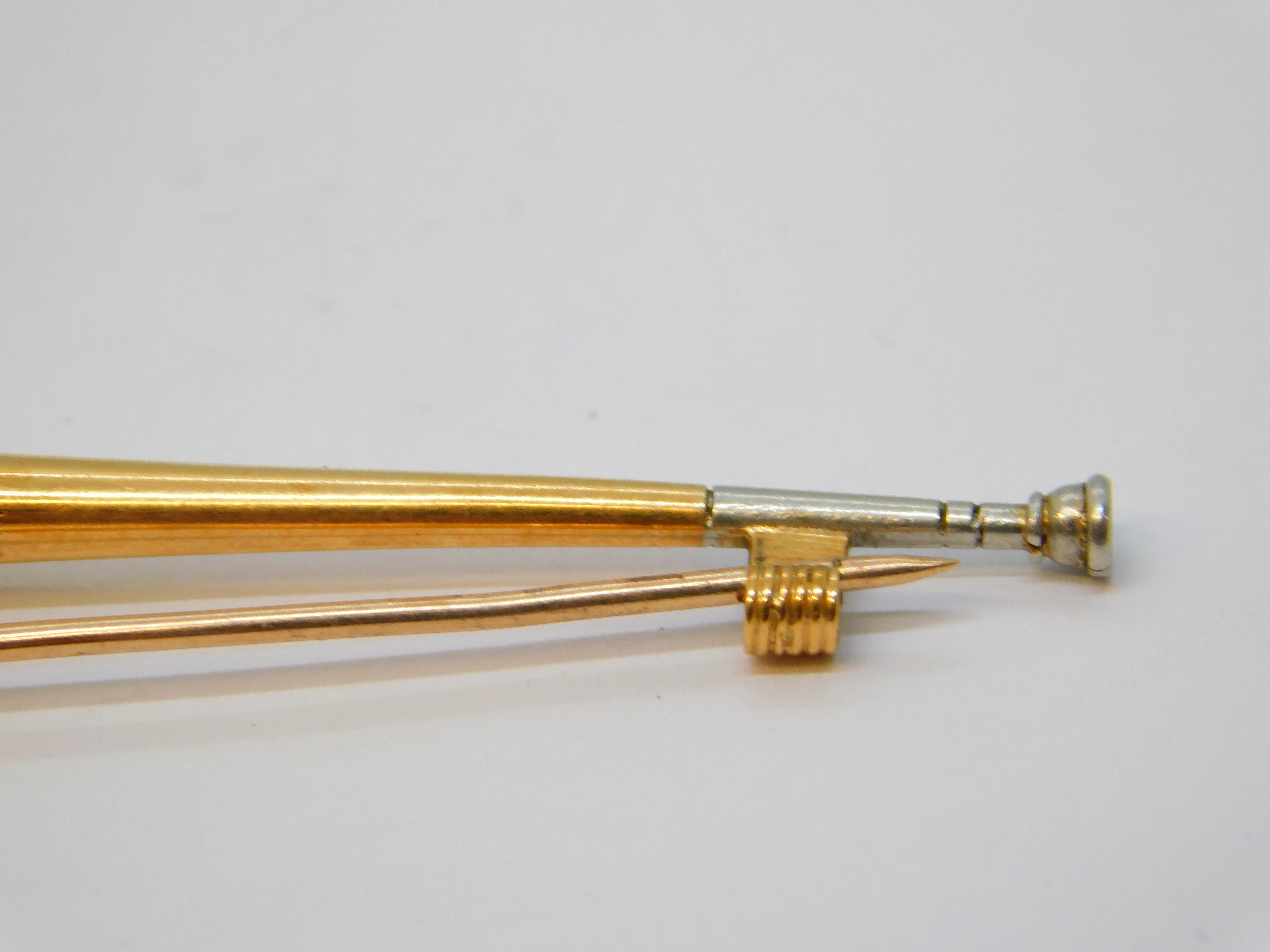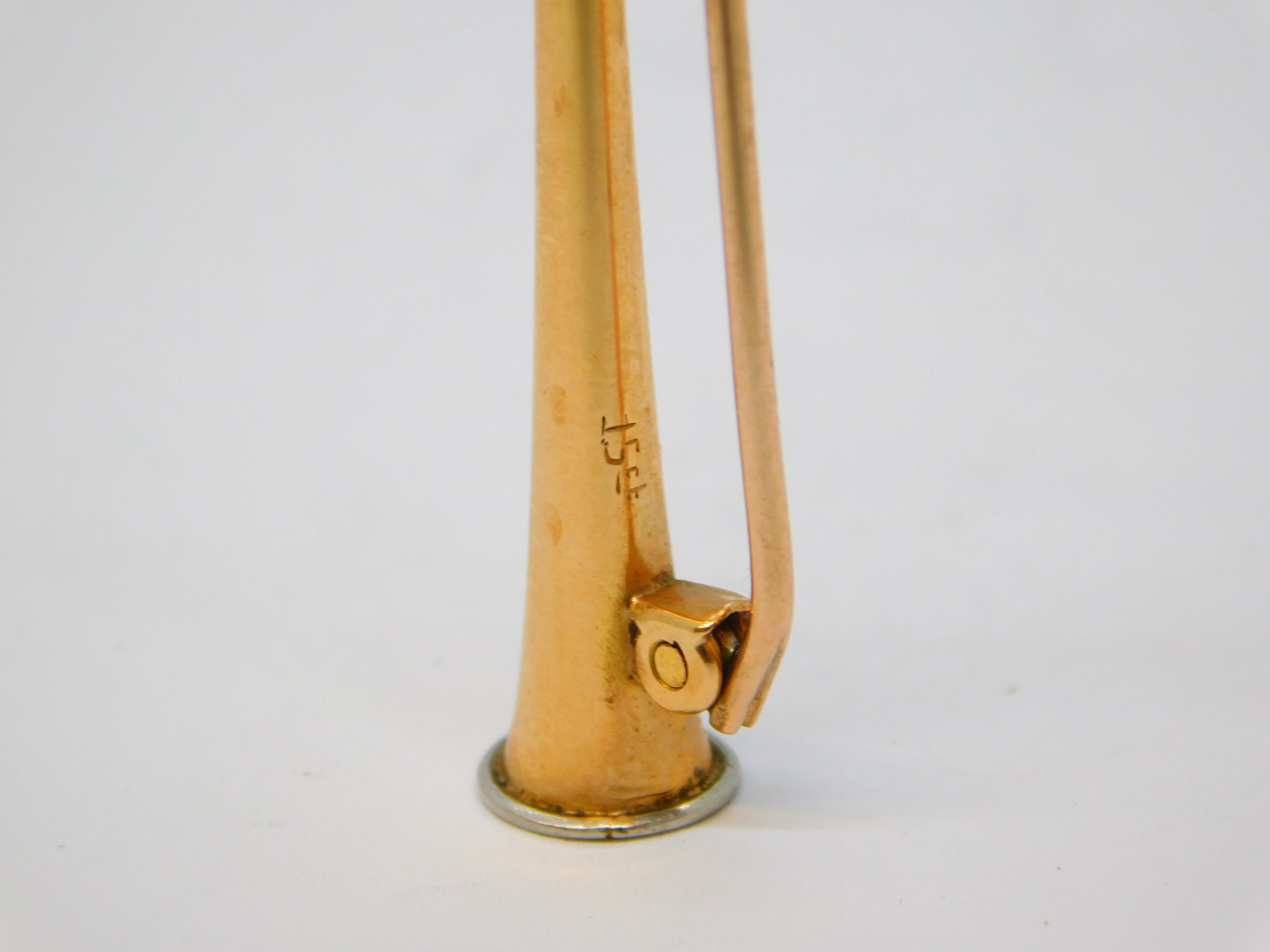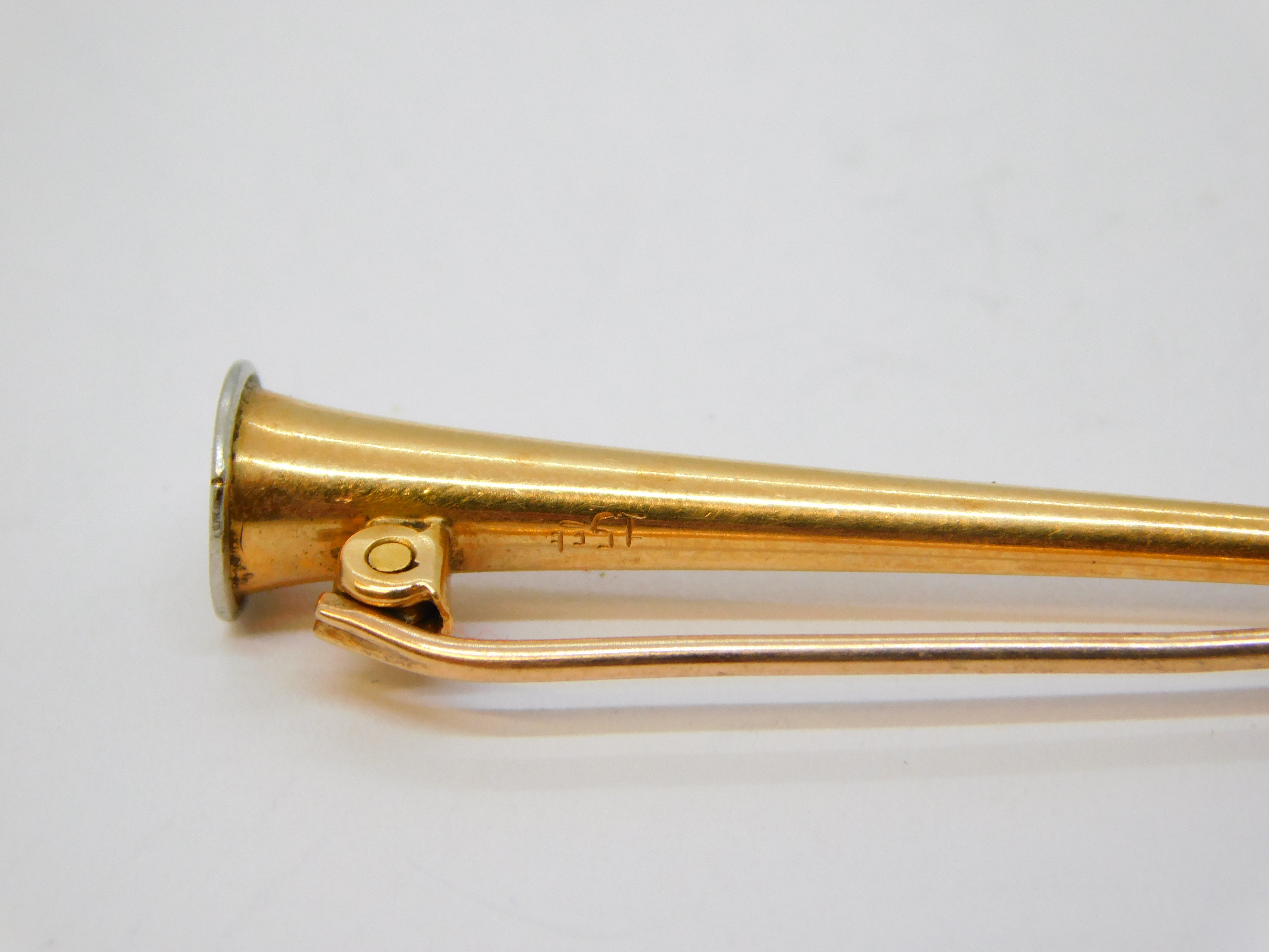 Victorian 15ct Rose Gold & Platinum Hunting Horn Stock Pin Brooch Antique c1880