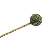 Victorian 15ct Yellow Gold & Turquoise Set Ball Form Stick Pin Antique c1860