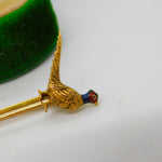 Victorian 18ct Gold & Enamel Pheasant Shooting Interest Brooch Antique c1890