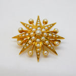 Victorian 18ct Yellow Gold Seed Pearl Starburst Pendant Brooch Antique c1880
