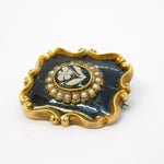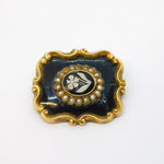 Victorian 9ct Gold, Enamel, Pearl, Hardstone Mourning Brooch Antique 1843 'William Grimwade'