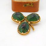 Victorian 9ct Gold Scarab Beetle Egyptian Shamrock Luck Brooch c1880 Antique