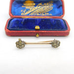 Victorian 9ct Gold & Sterling Silver Set Paste Floral Bar Brooch Antique c1860