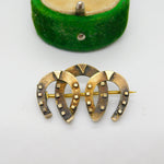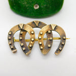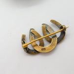 Victorian Gold on Sterling Silver Three Horseshoes Sweetheart Brooch Antique