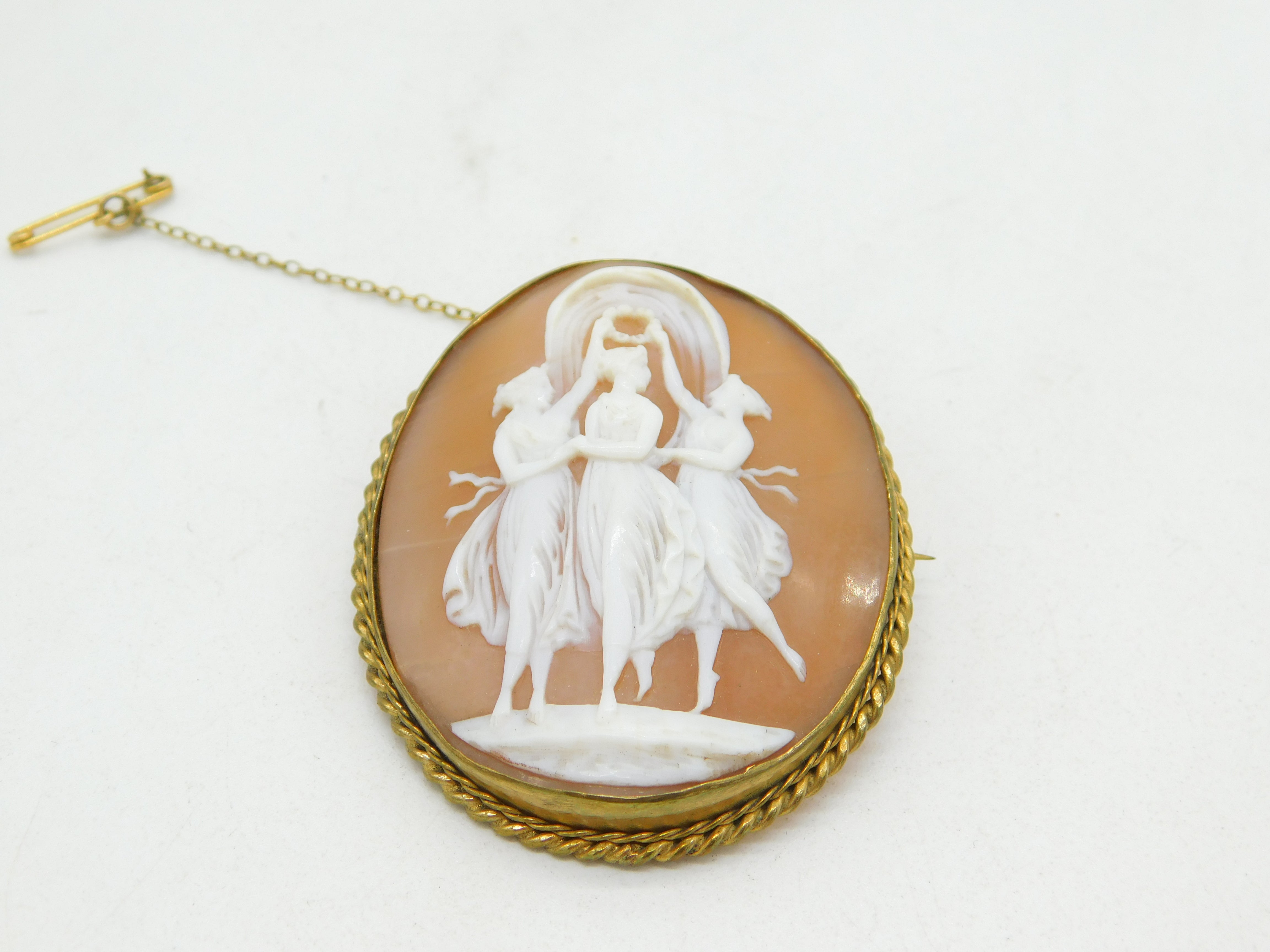 Victorian Large Rolled Gold Three Graces Carved Shell Cameo Brooch Antique c1890