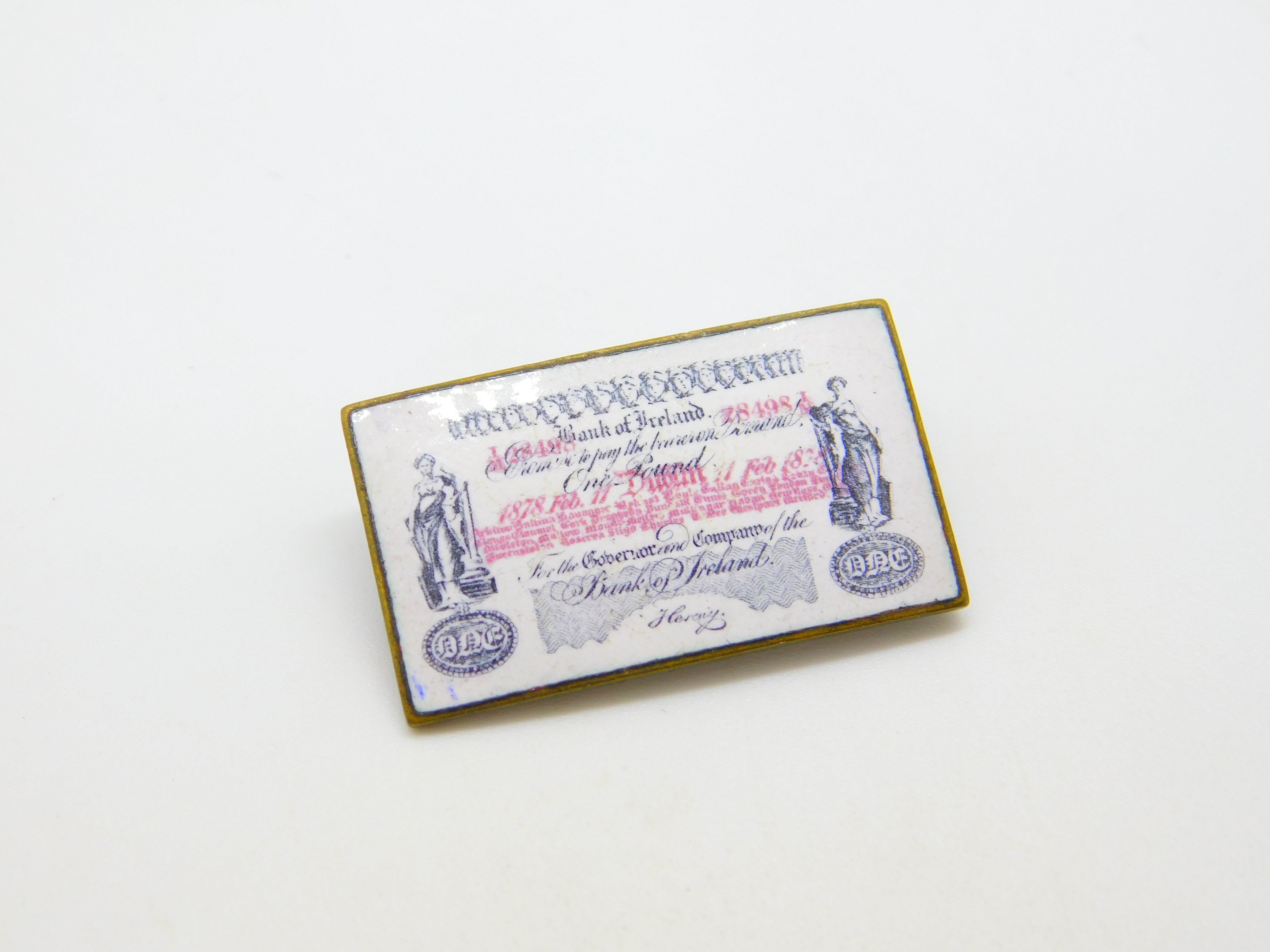 Victorian Metal & Enamel Bank of Ireland One Pound Note Brooch Antique 1878
