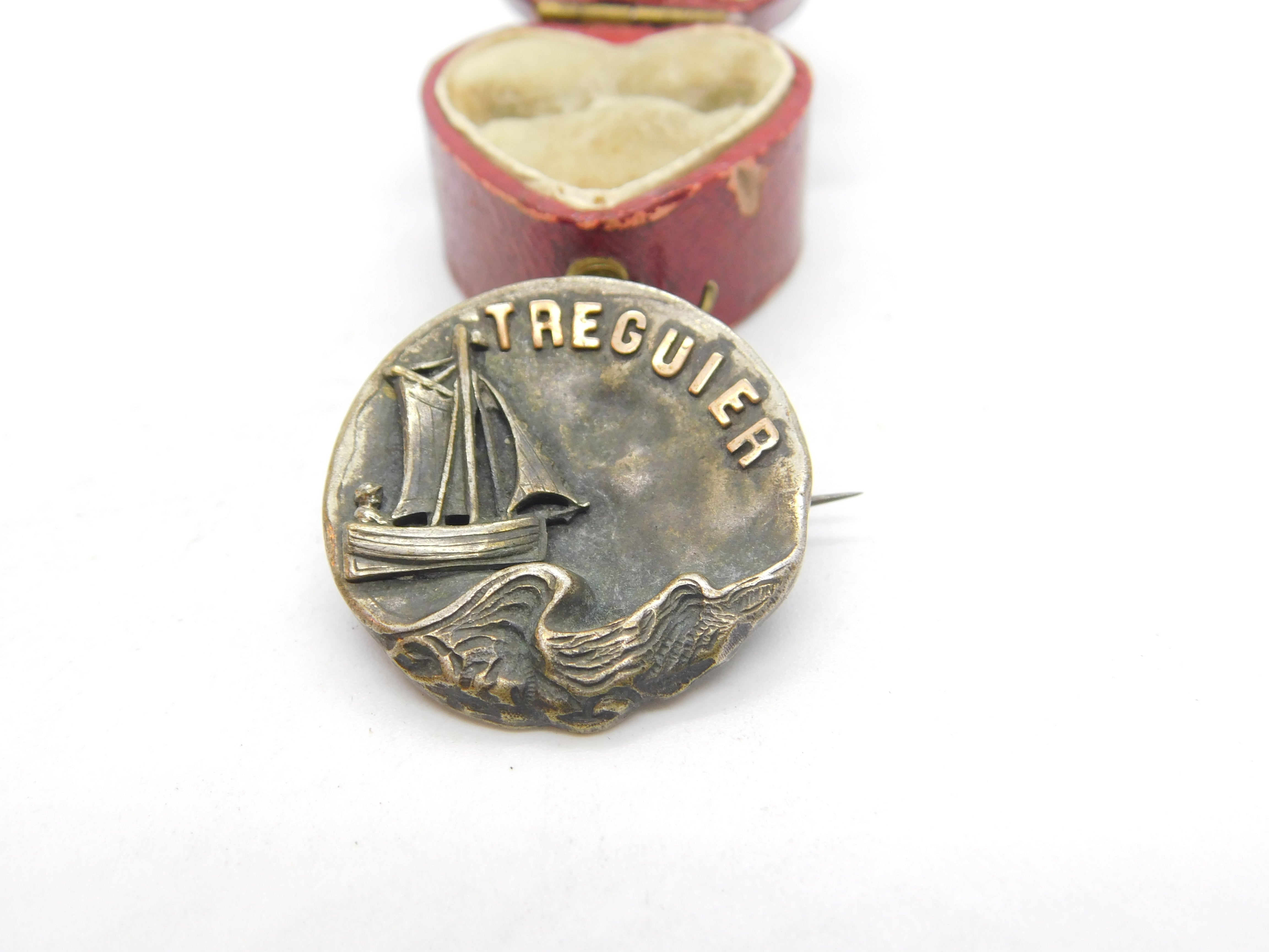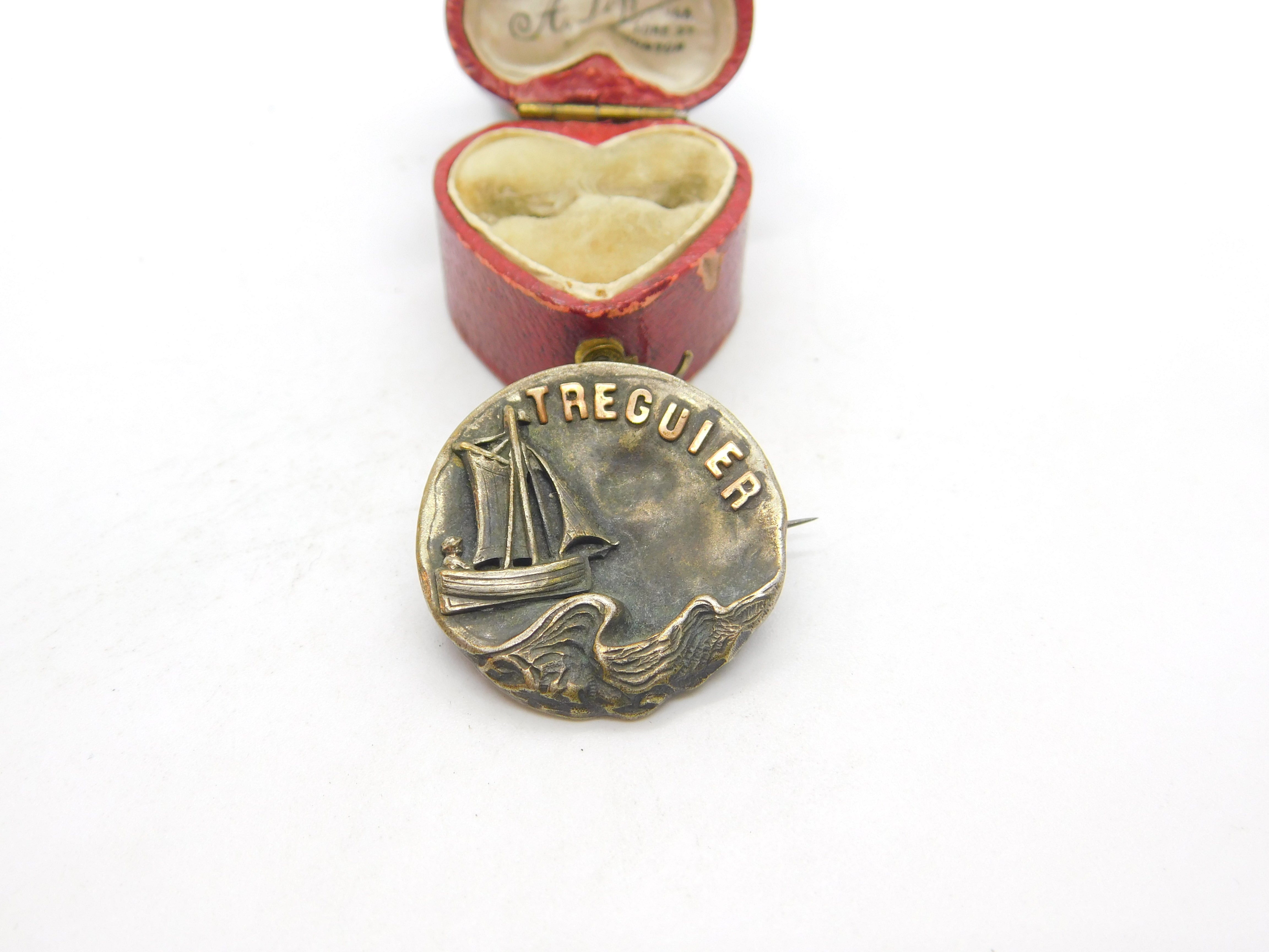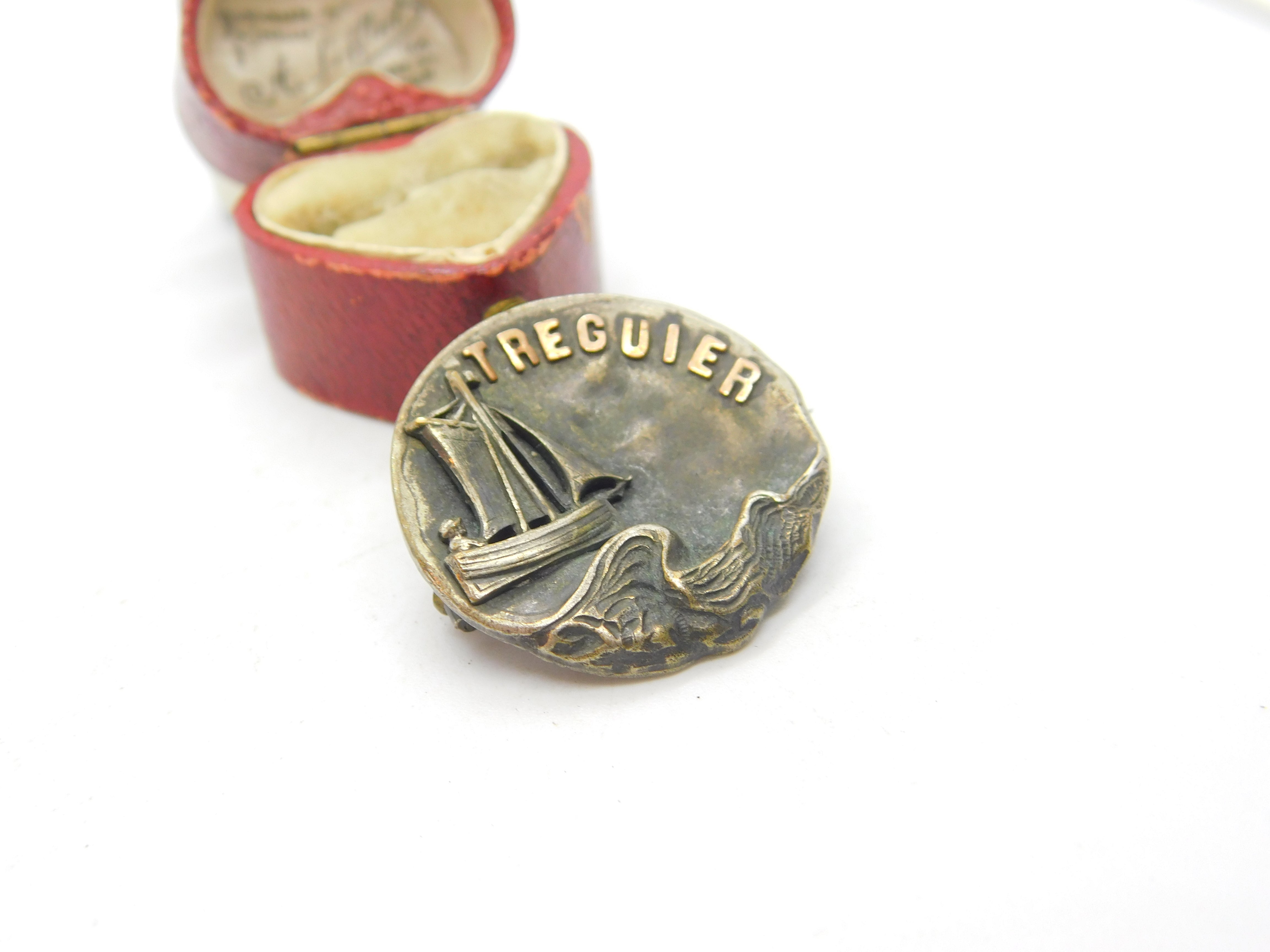 Victorian Rose Gold on Sterling Silver Treguier Souvenir Brooch Antique c1900
