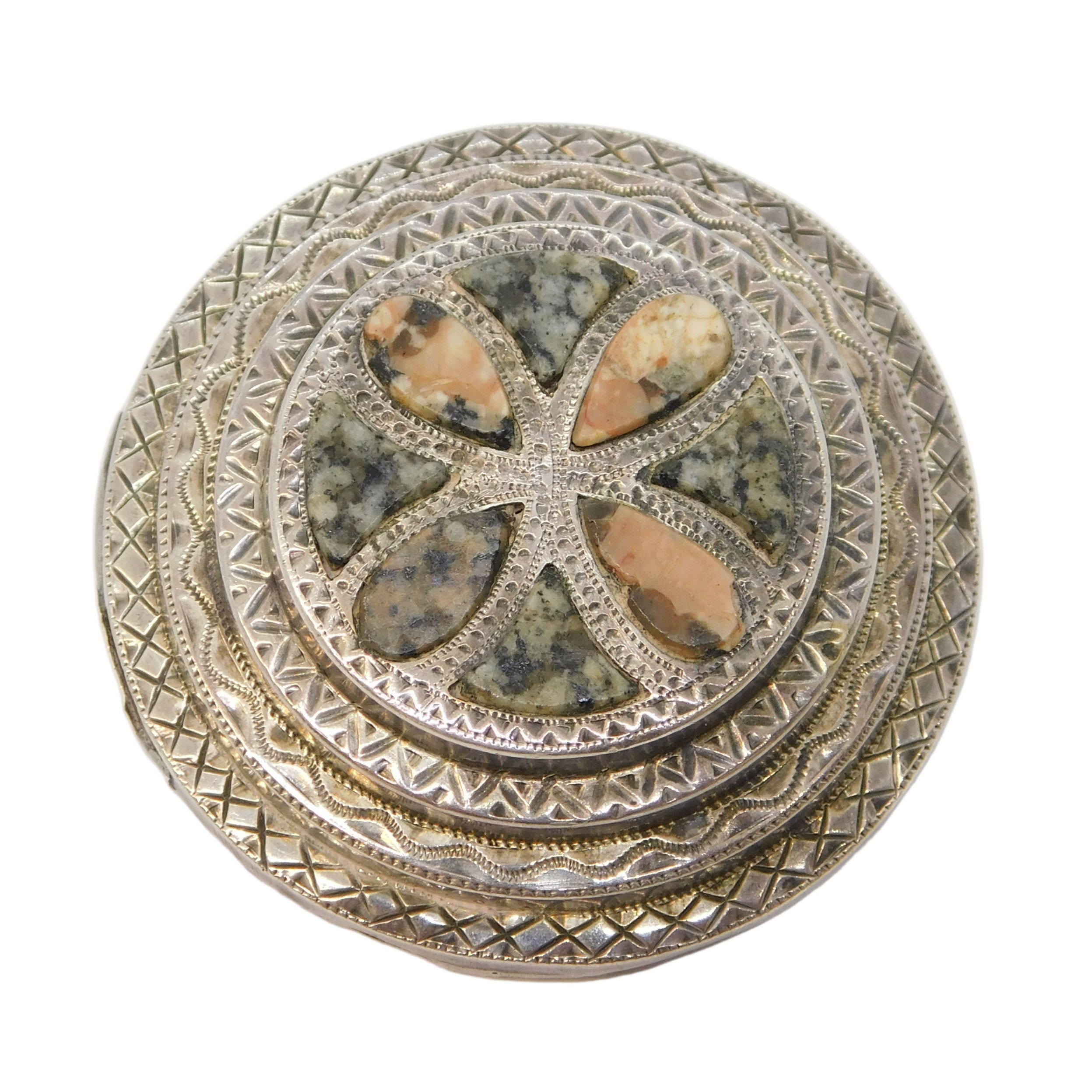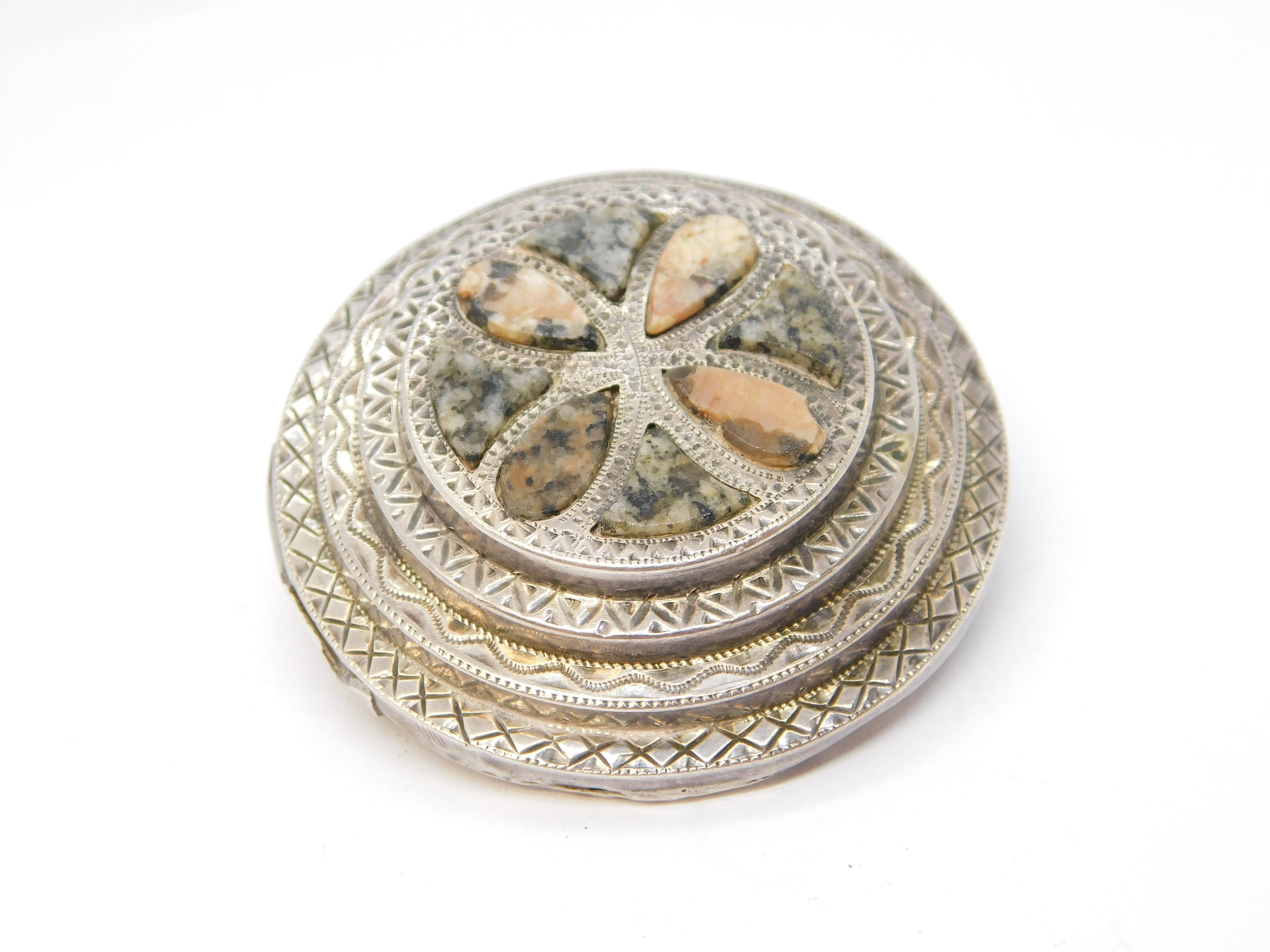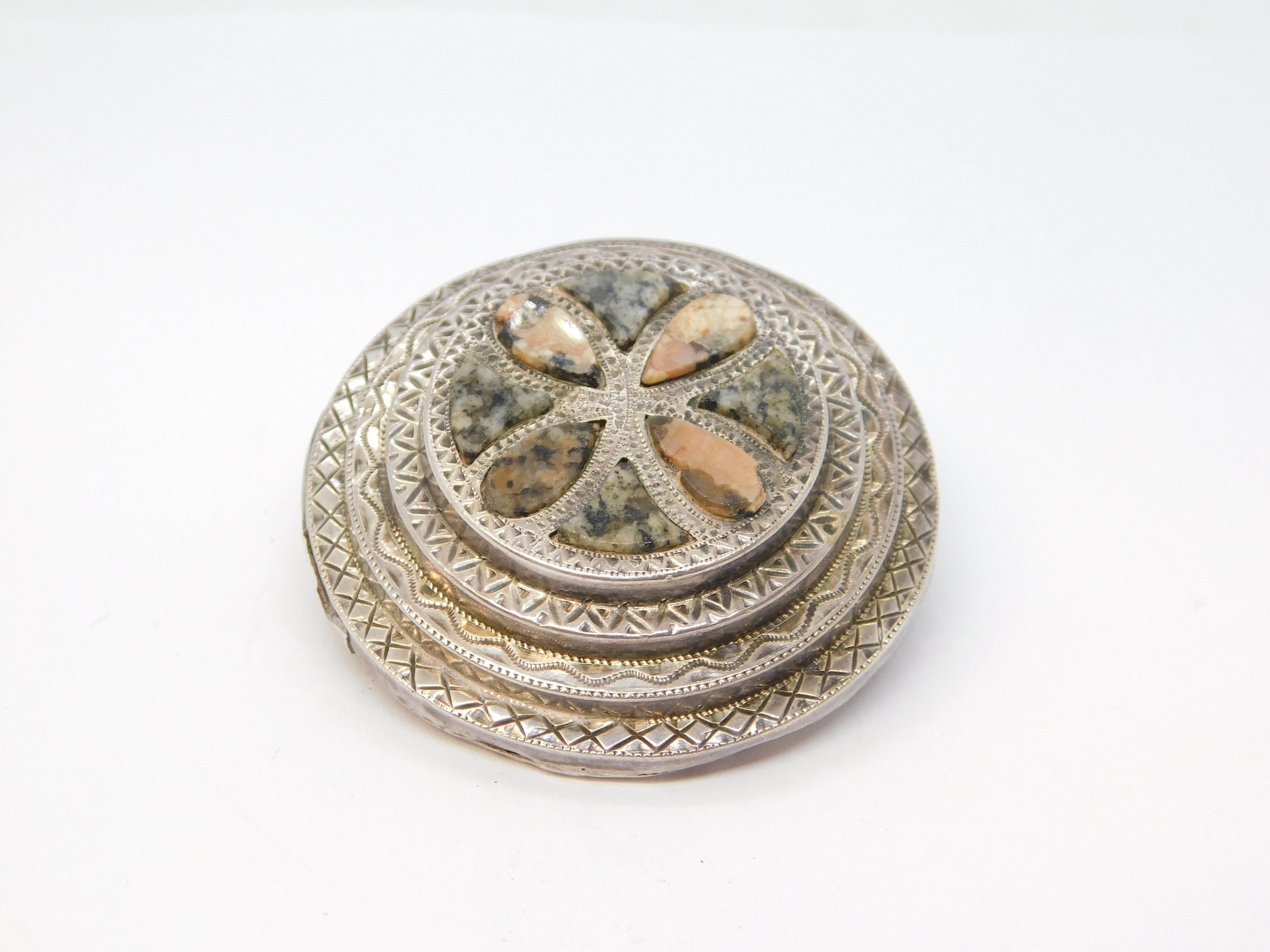 Victorian Scottish Sterling Silver, Agate, Granite Kilt Brooch Pin Antique c1860